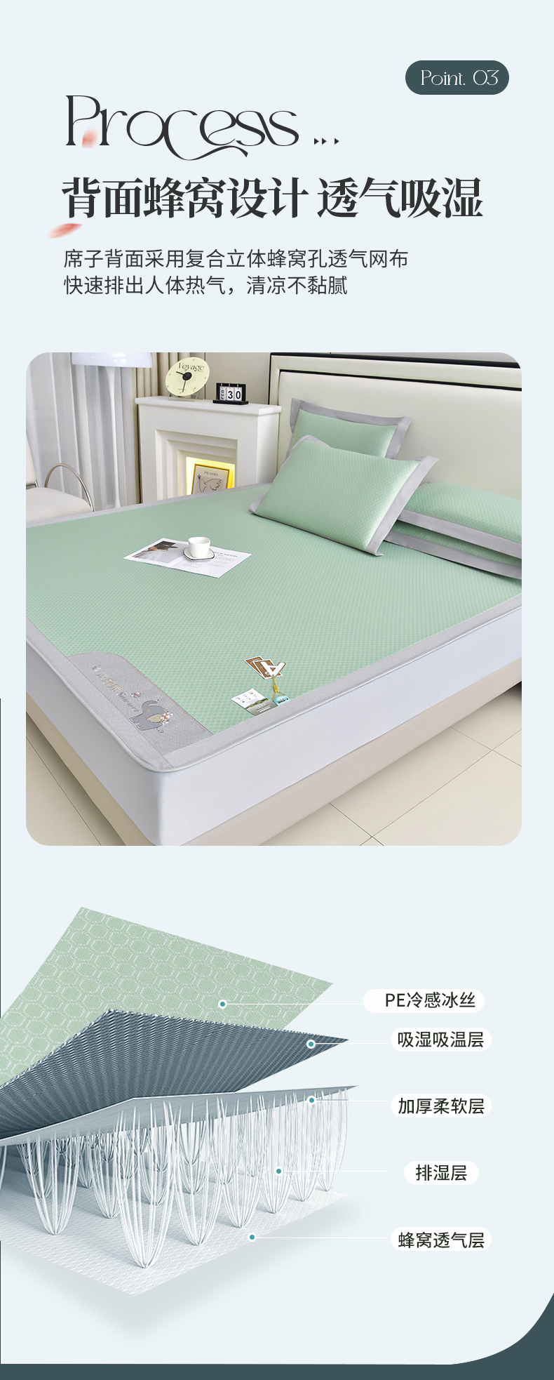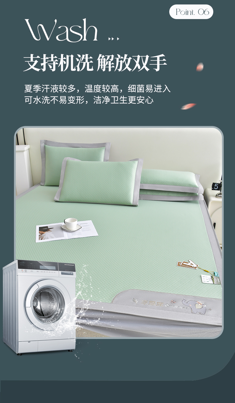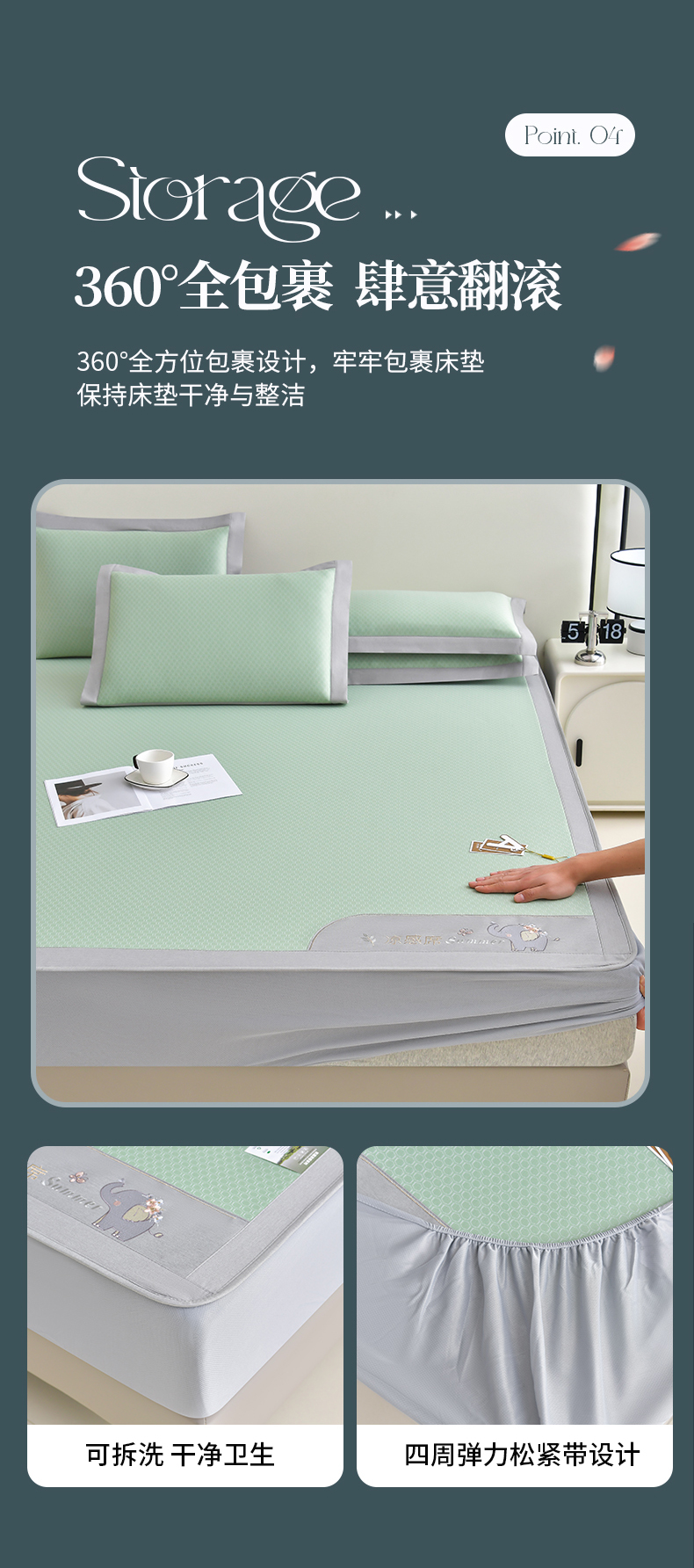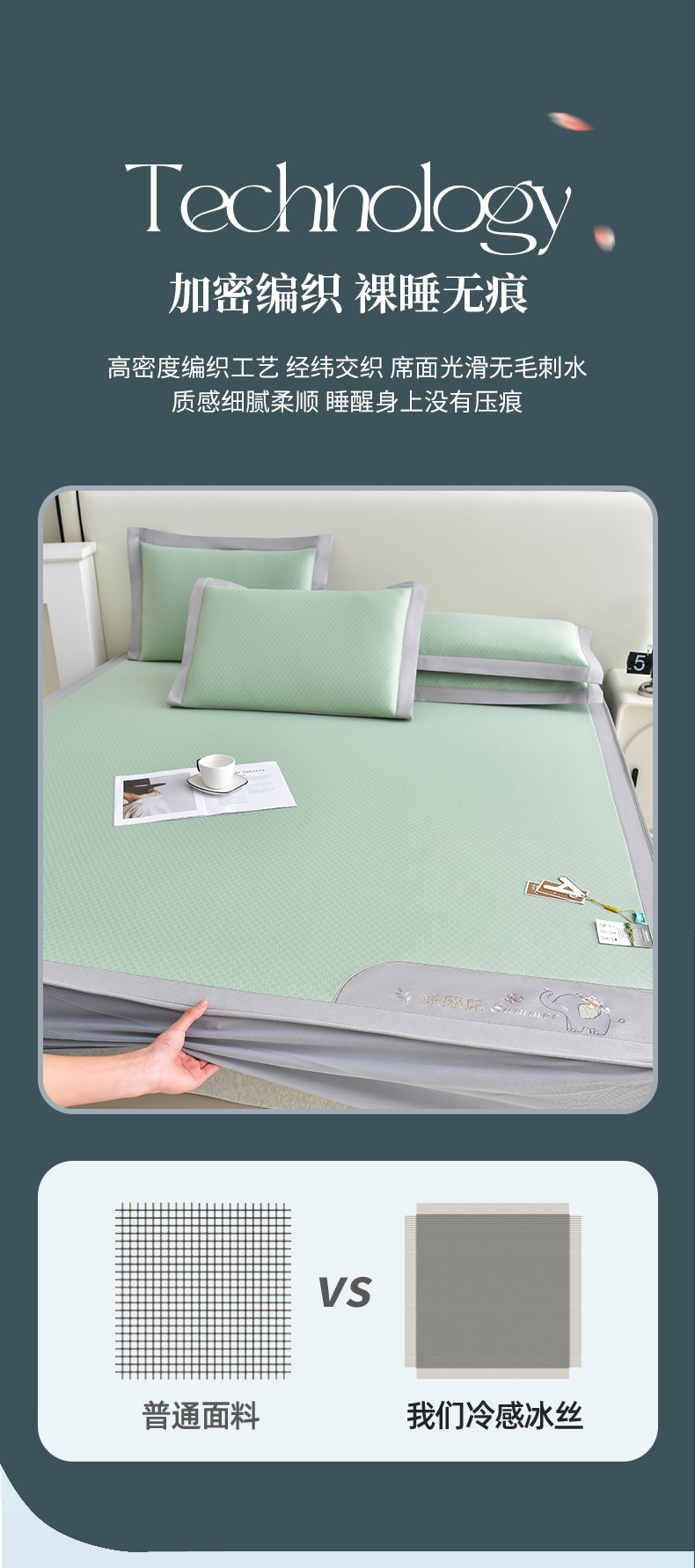 商品名称:小牛席业 2026新款小冰块大象凉感冰丝席(床笠款)凉席竹席藤席冰藤席乳胶席豆豆席 绿色