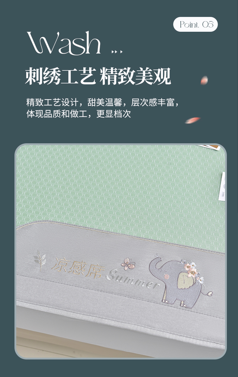 (总)小牛席业 2026新款小冰块大象凉感冰丝席凉席竹席藤席冰藤席乳胶席豆豆席,粉色,香槟,灰色,绿色,蓝色
