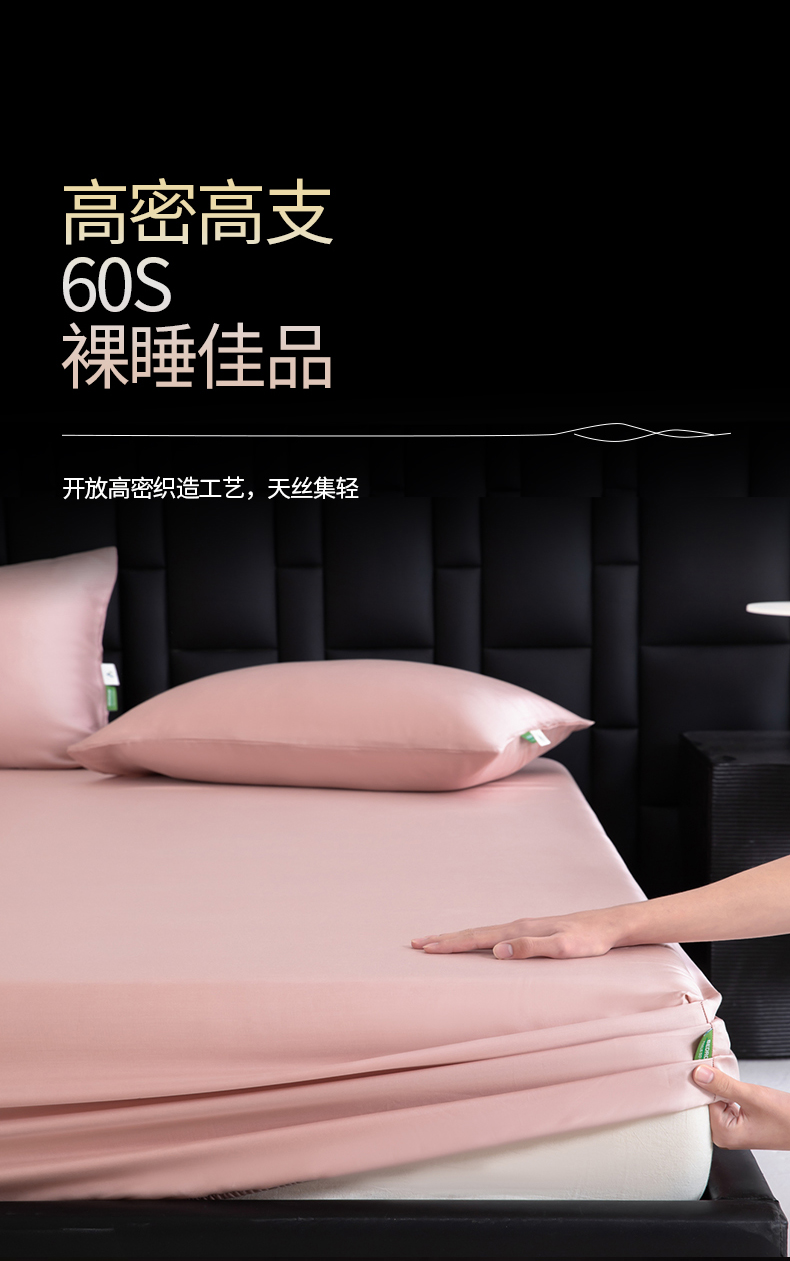 眠博士 2026新款60S天丝莱赛尔纯色床笠-场景一 60S天丝床笠-藕粉