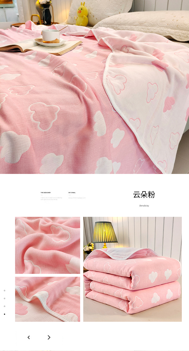 商品名称:静缘分 2026新款全棉纯棉6层纱布毛巾被纯棉六层纱布毯 云朵粉