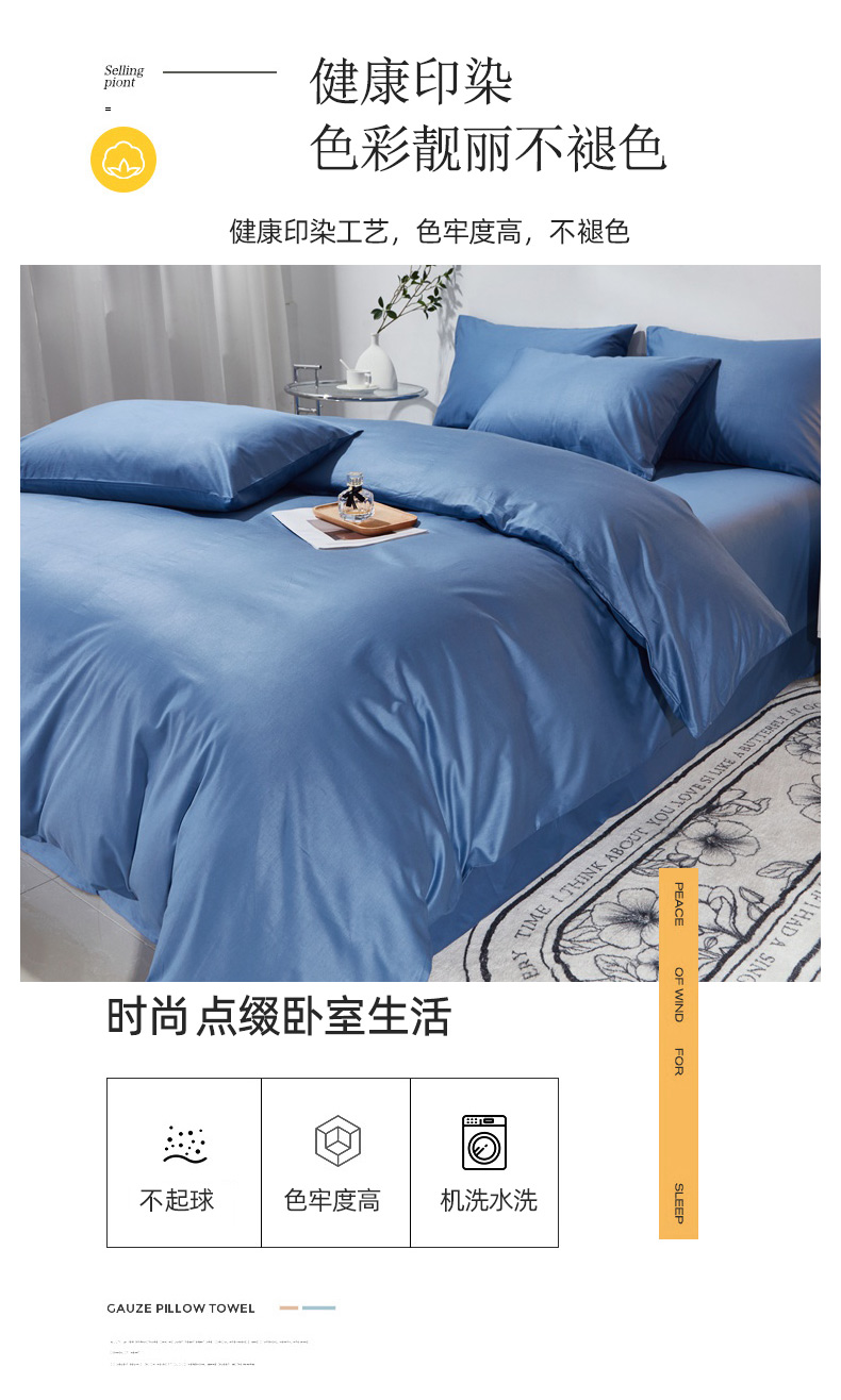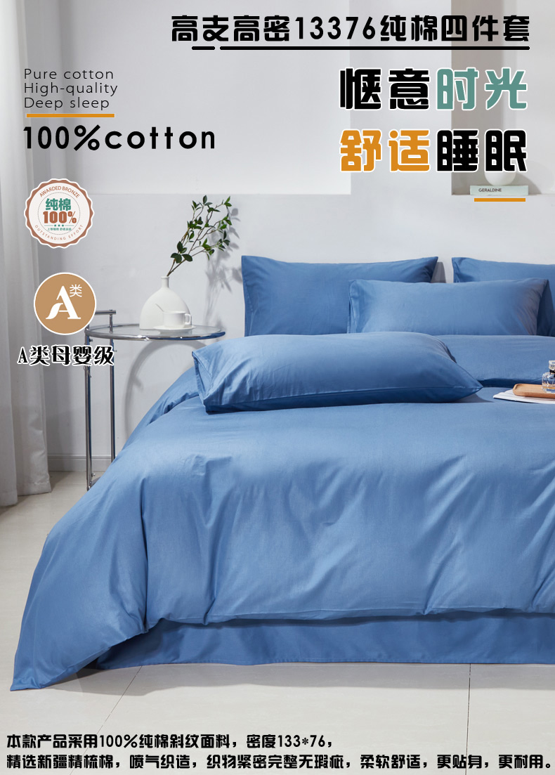 当前位置: 91家纺网 > 商品网购 > 床品套件 > 四件套 > 全棉普通四件套 > 晶缦家纺 2026新款喷气A类全棉13376纯棉斜纹纯色多规格四件套 沐朗-牛仔蓝