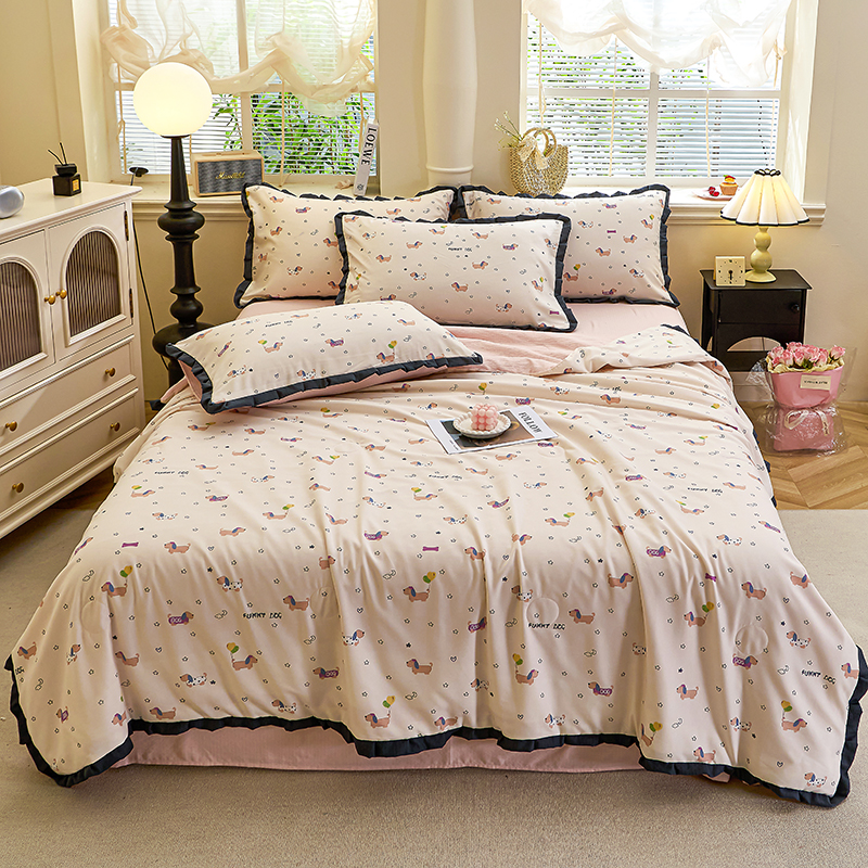 仟网汇 2026新款木棉皱皱纱赫本风夏被单夏被枕套 狗狗乐园