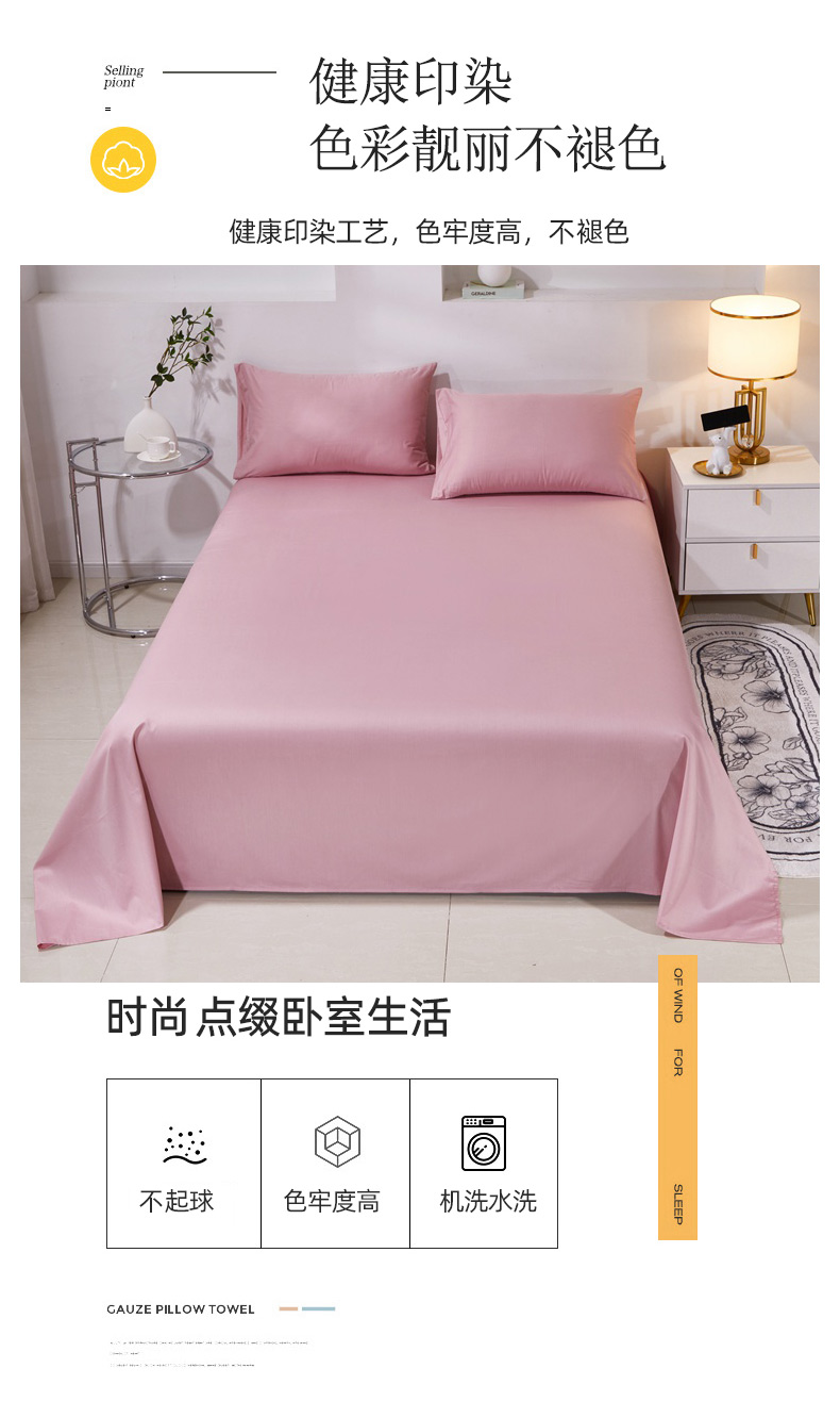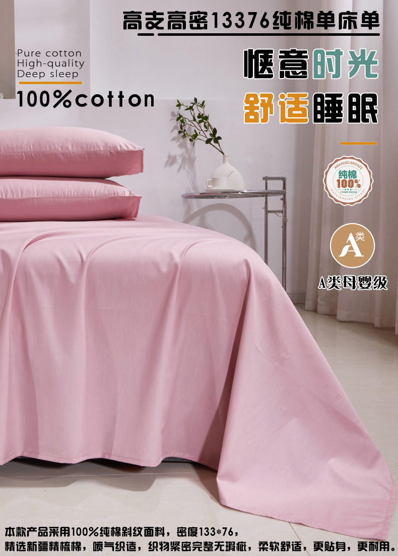 晶缦家纺 2026新款喷气A类全棉13376纯棉斜纹纯色单床单单品床单床单单件 沐朗-脏脏粉