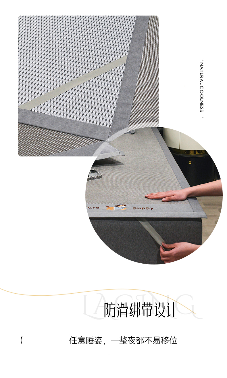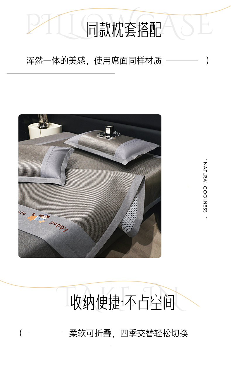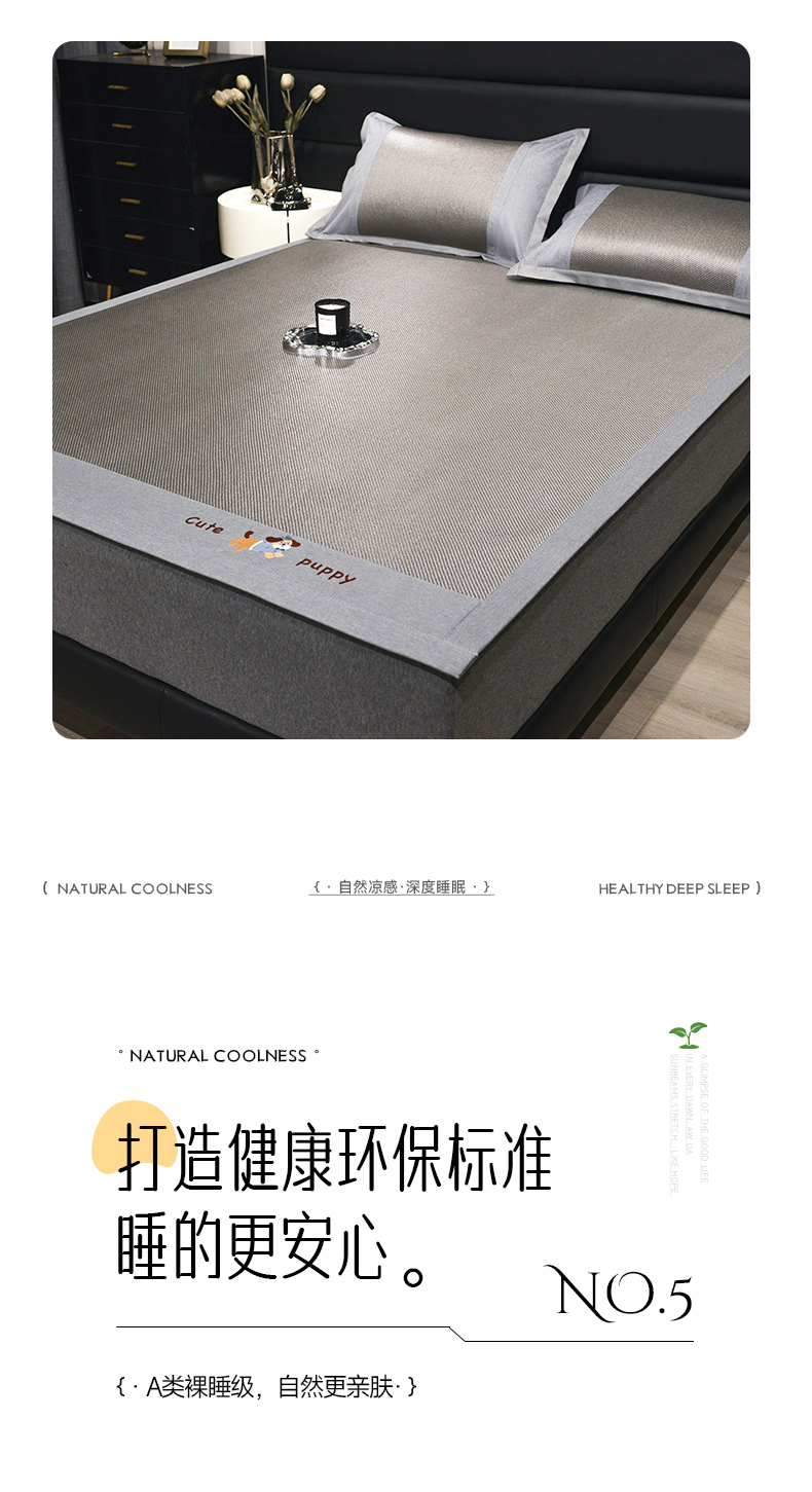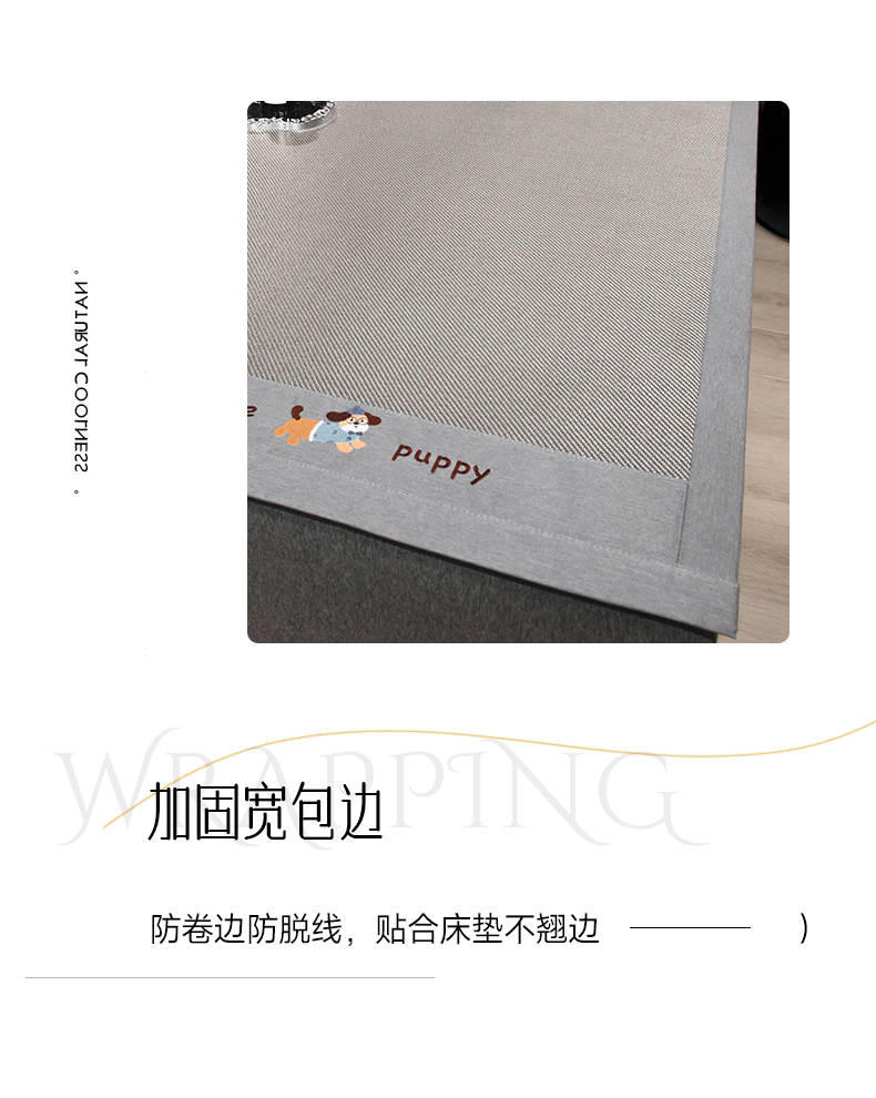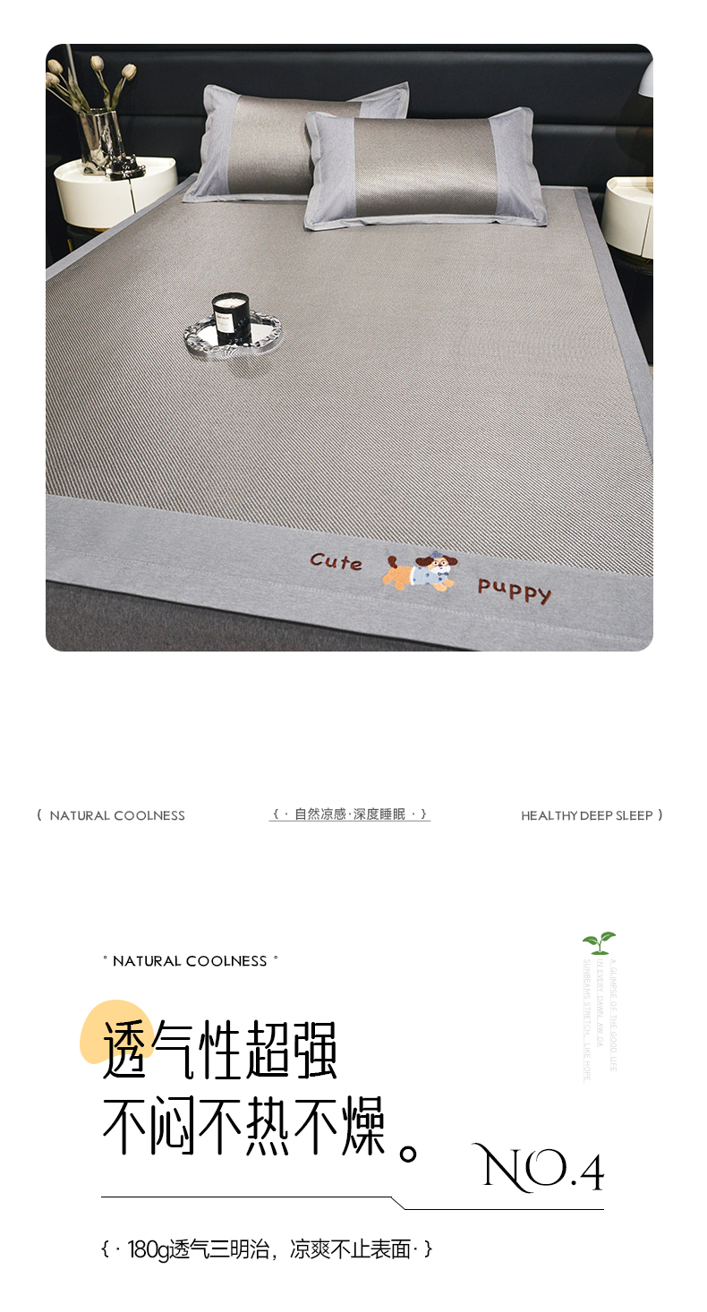 商品名称:倾慕家纺 2026新款A类刺绣冰藤席--床席款 刺绣小狗灰色床席款