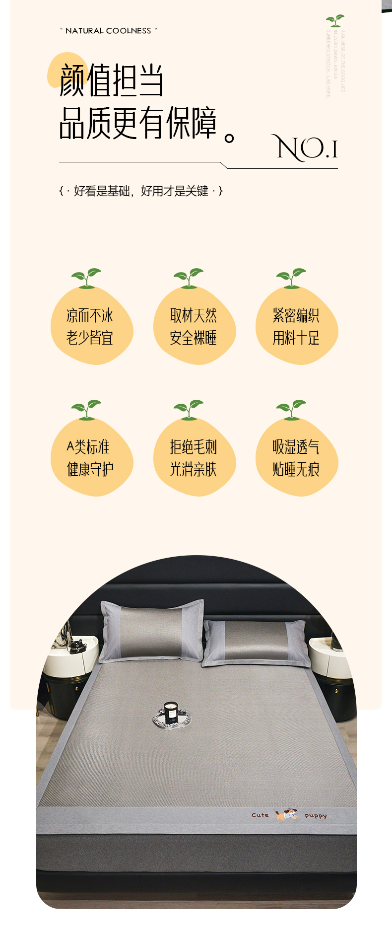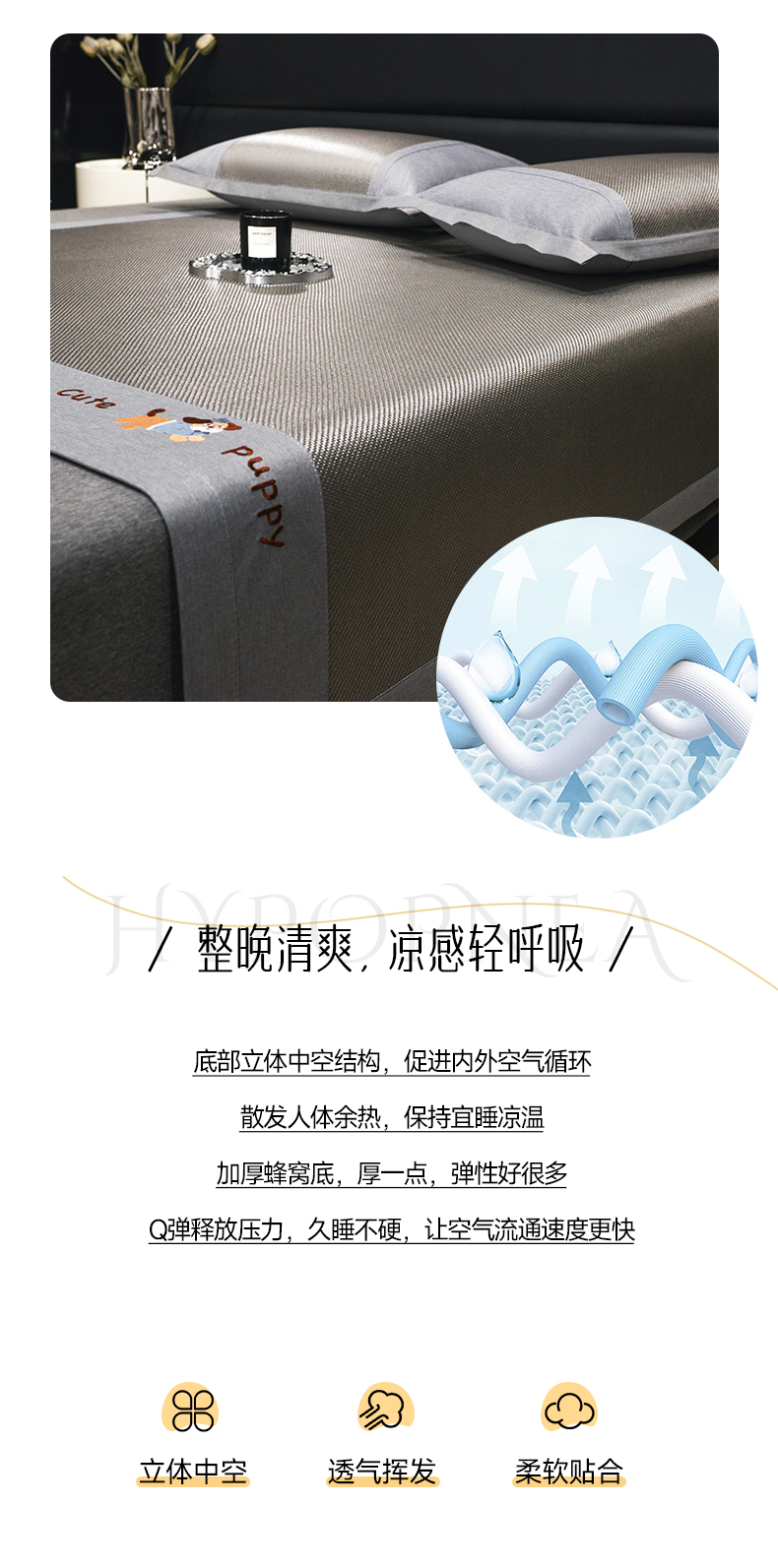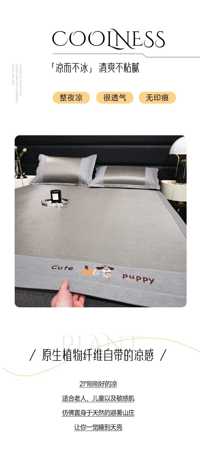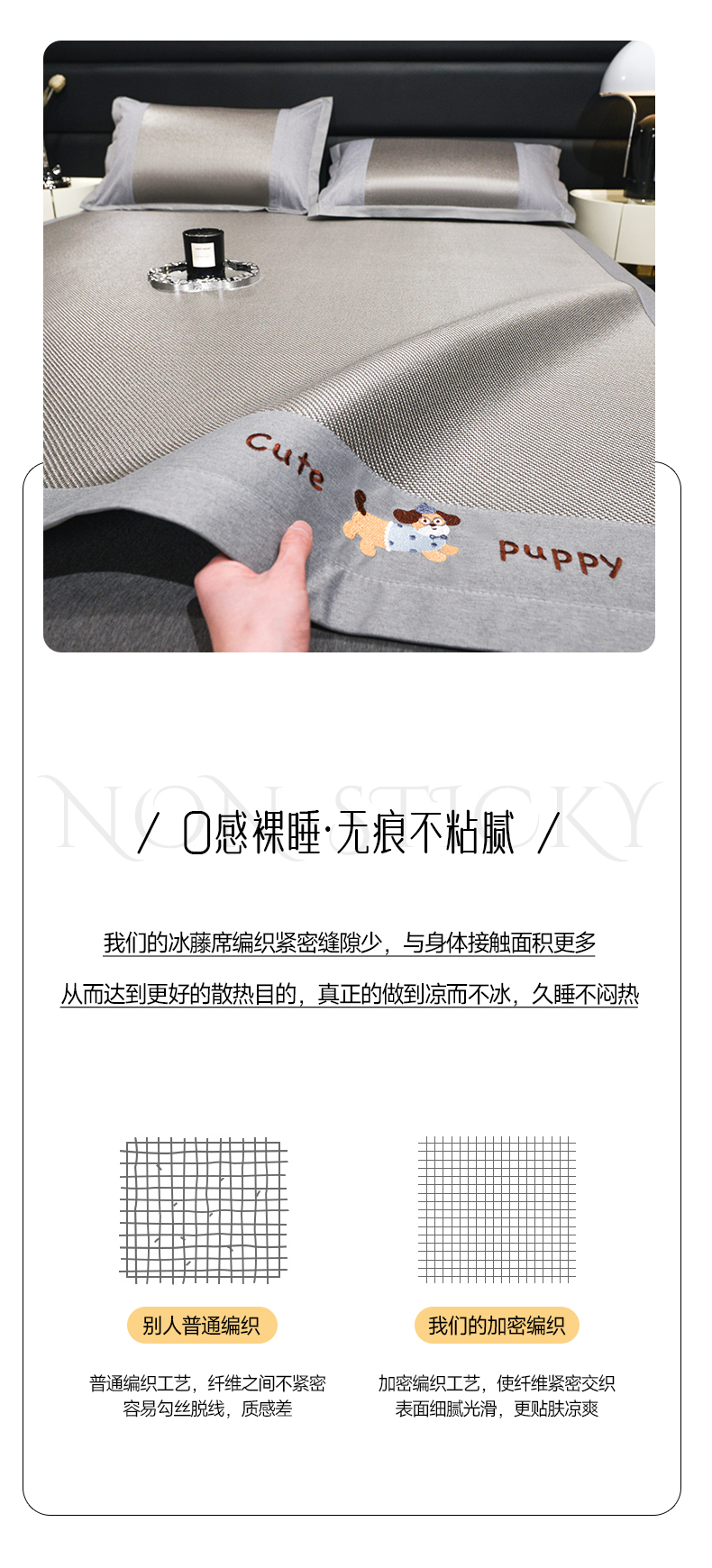 商品名称:倾慕家纺 2026新款A类刺绣冰藤席--床席款 刺绣小狗灰色床席款