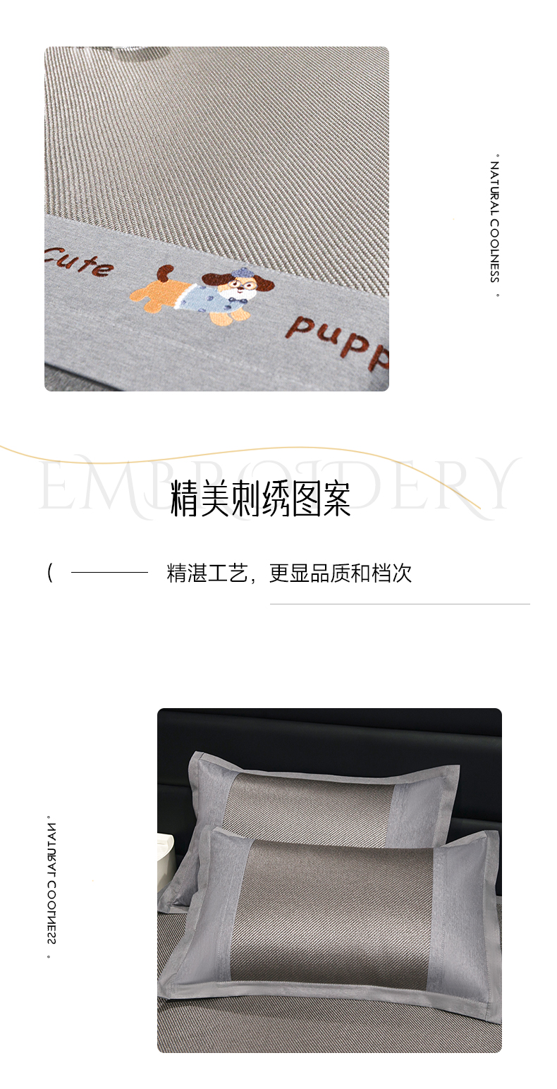 倾慕家纺 2026新款A类刺绣冰藤席--床席款 刺绣小狗灰色床席款