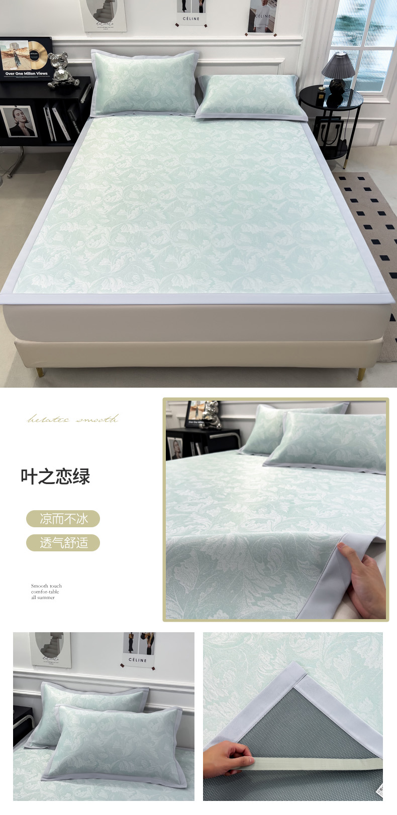 商品名称:倾慕 2026新款提花凉感凉席床席款三件套系列 叶之恋绿床席款