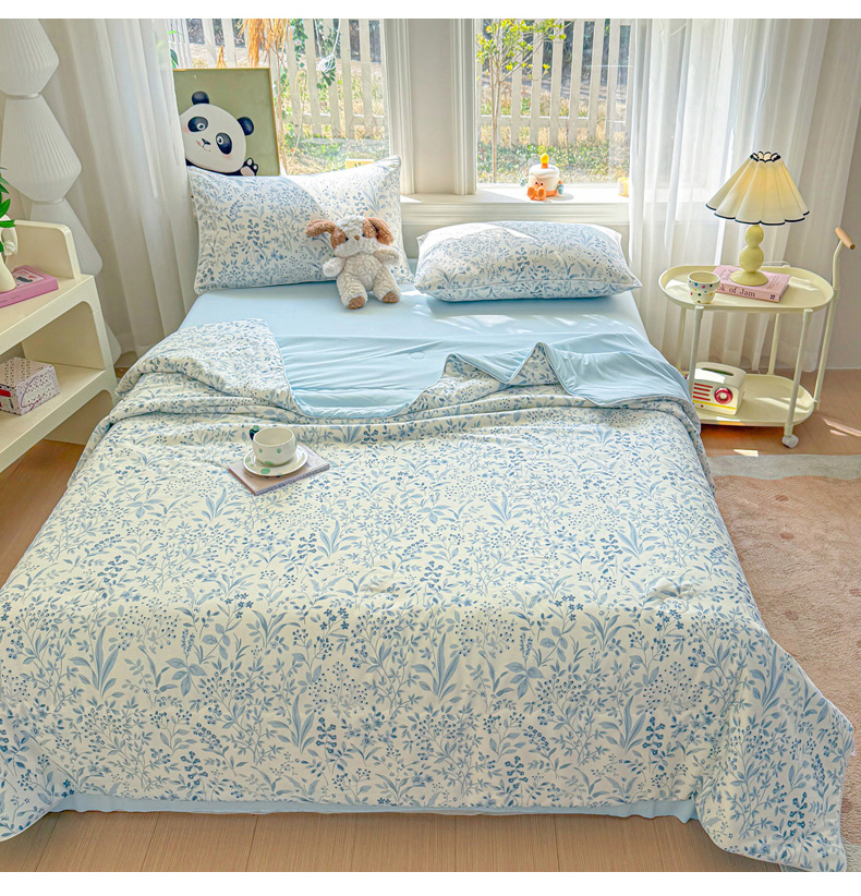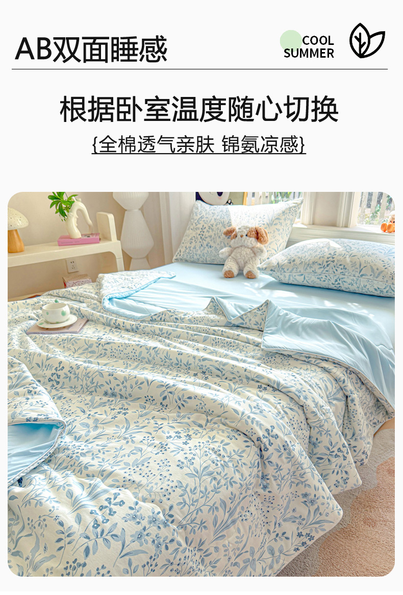 万盛家纺 2026新款全棉锦氨凉感夏被夏凉被空调被 蓝沫