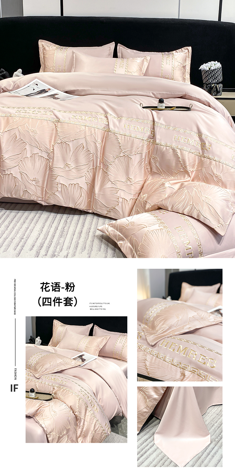 子曰 2026新款浮雕水洗真丝四件套 花语-粉
