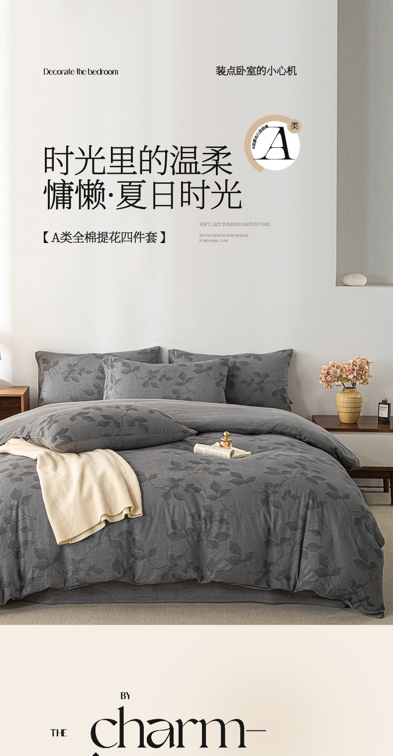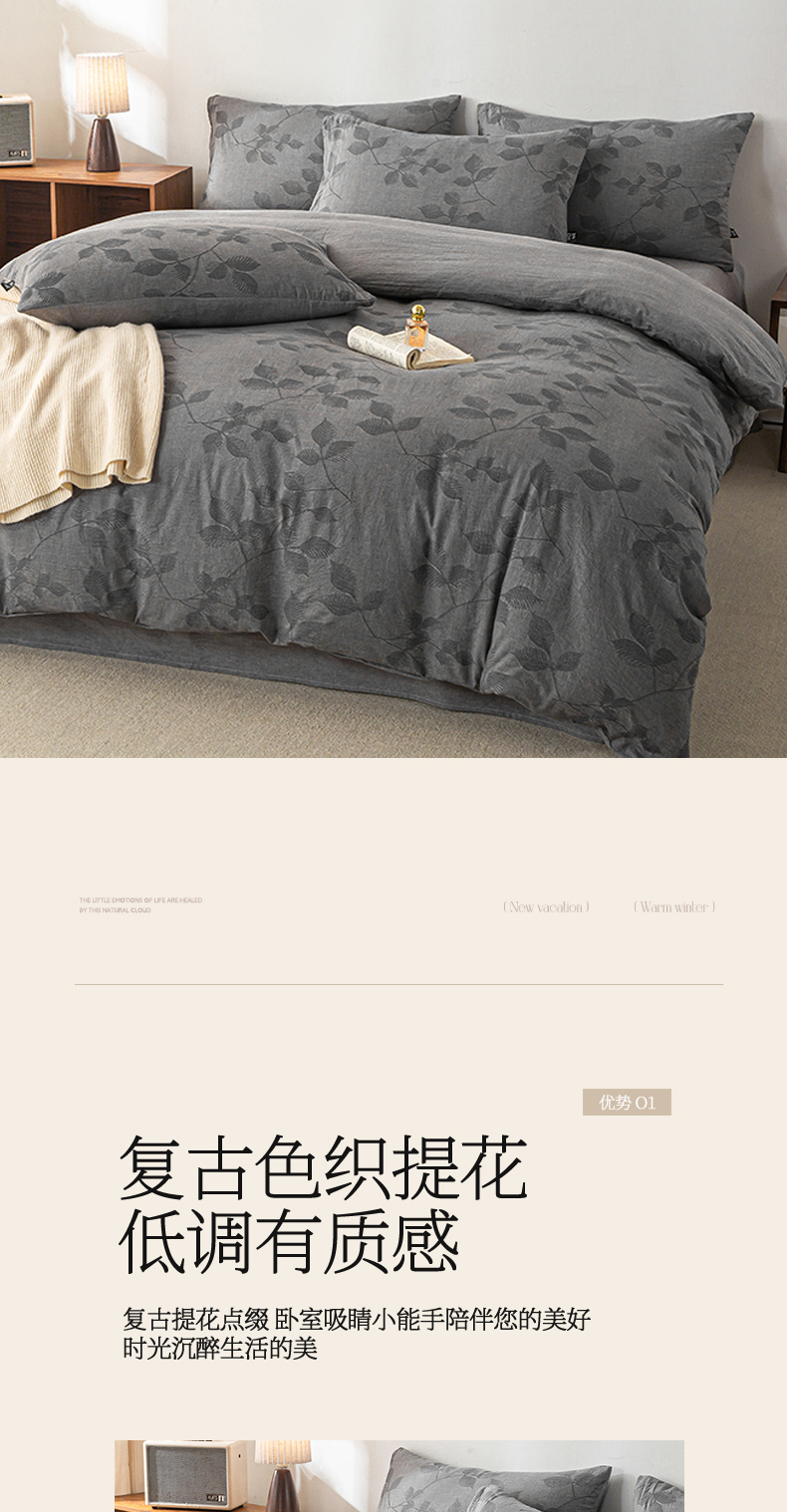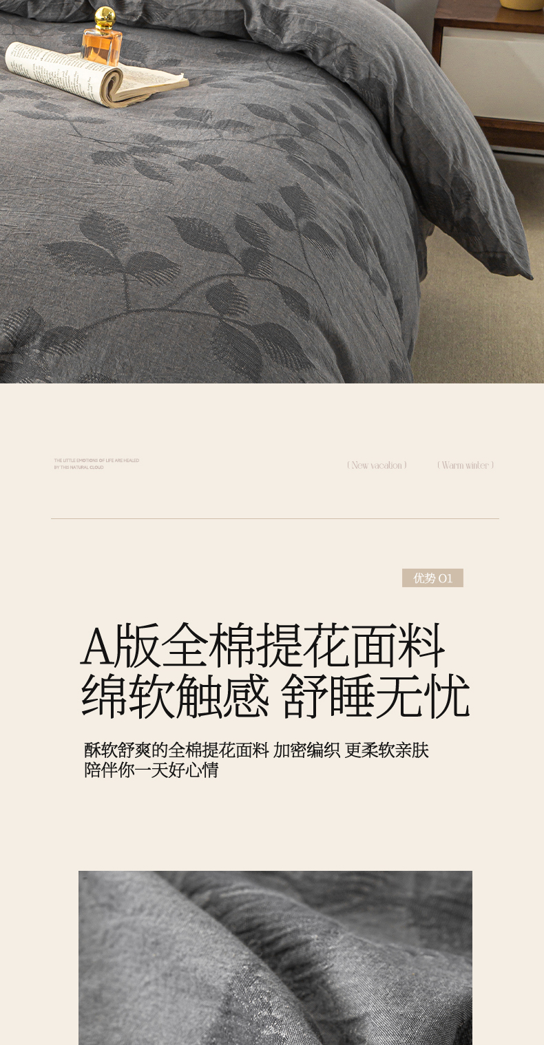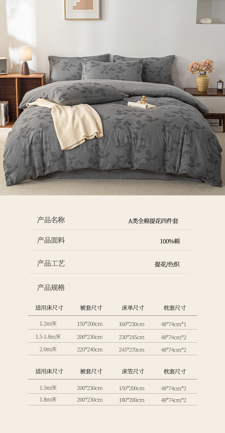 当前位置: 91家纺网 > 商品网购 > 床品套件 > 四件套 > 全棉普通四件套 > 恋人优选 2026新款樱花叶全棉纯棉提花四件套 樱花叶-灰