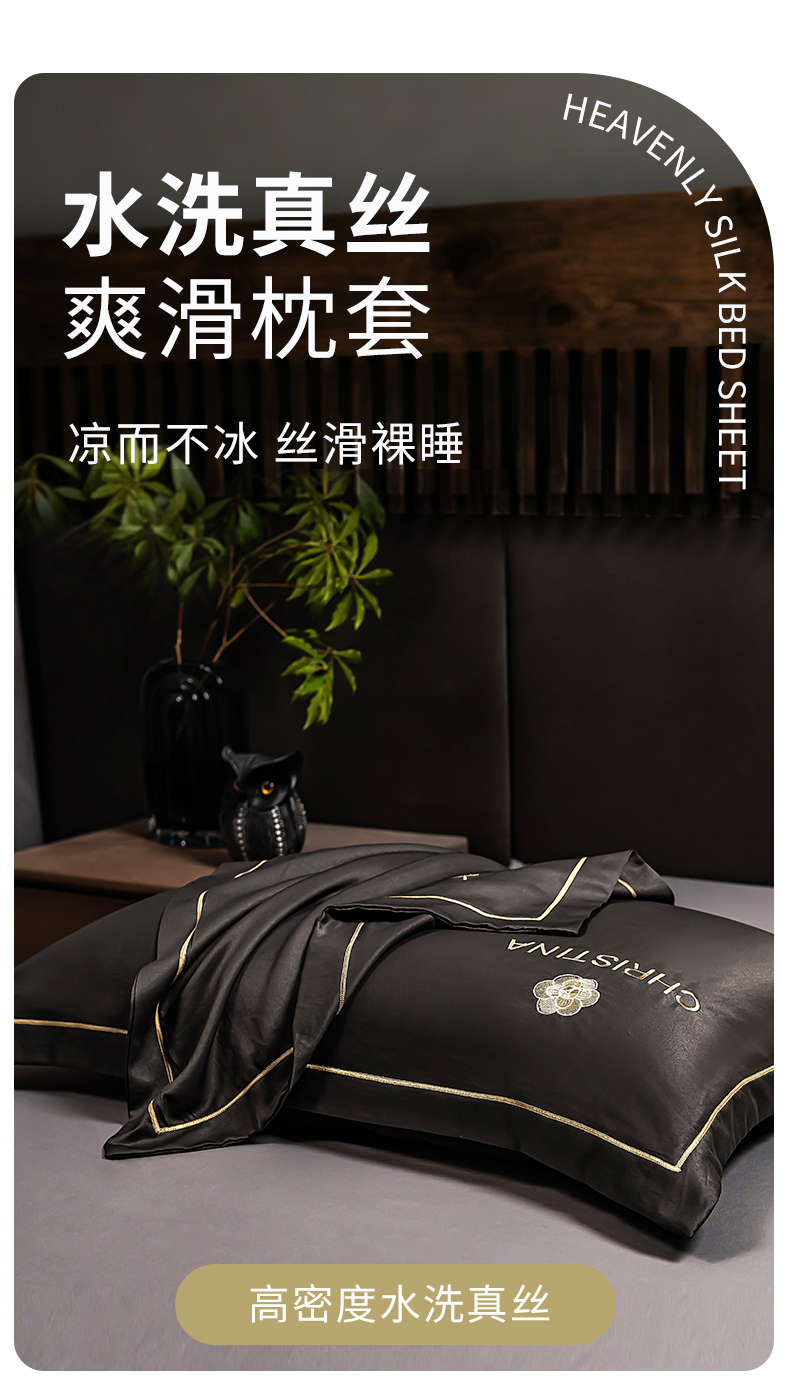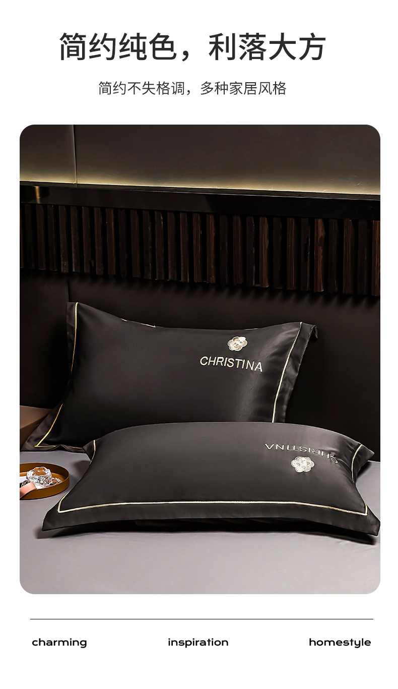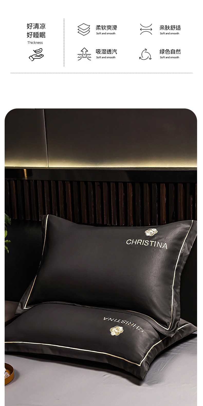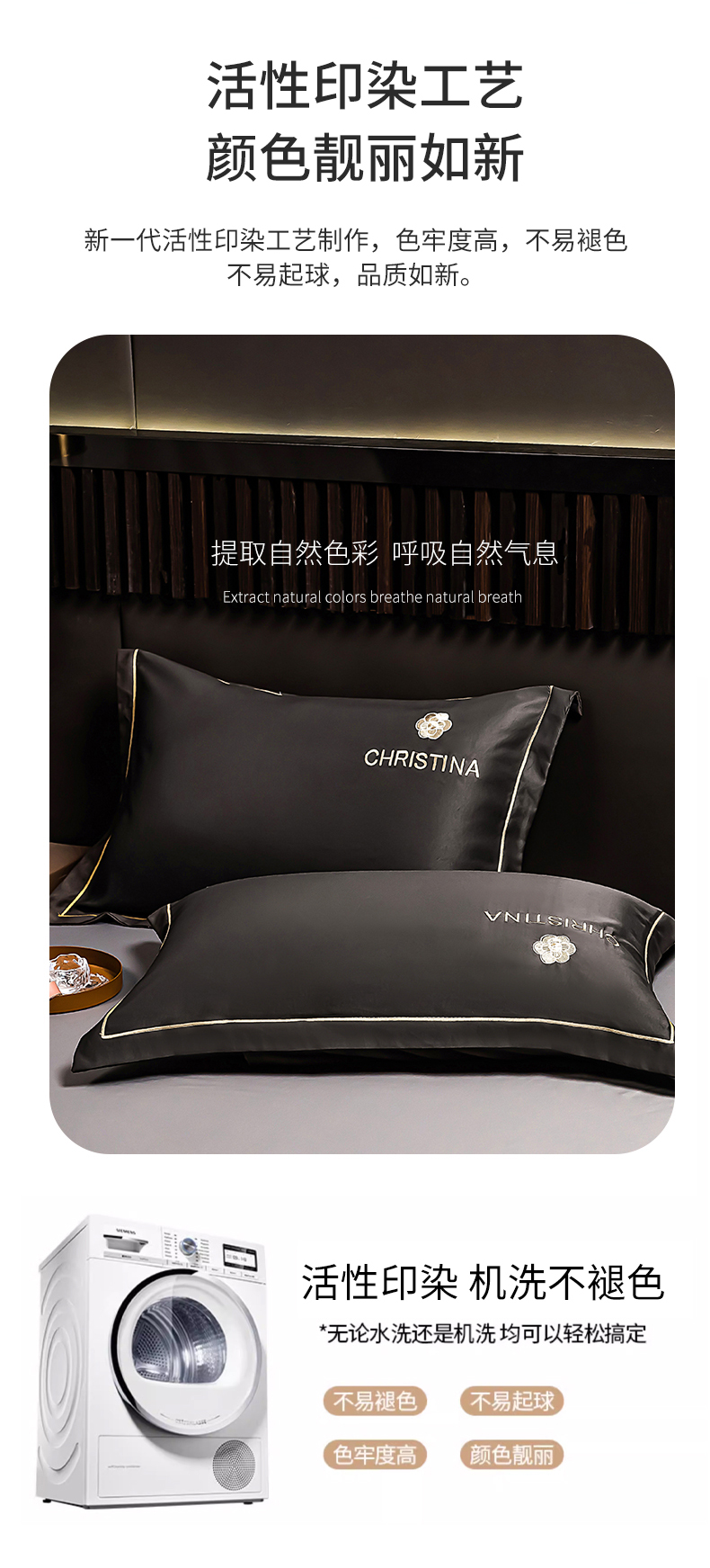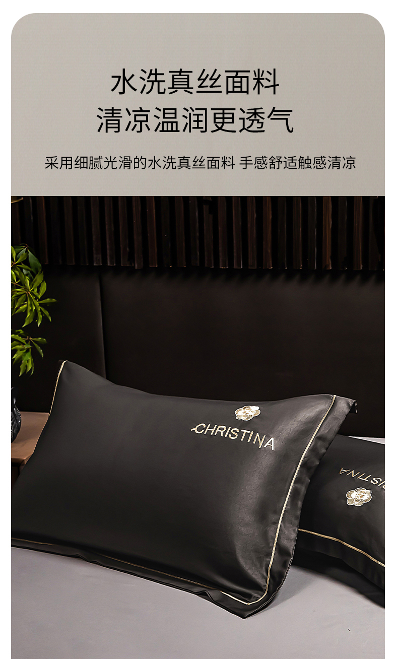 商品名称:丽美人家纺 2026新款凉感水洗真丝枕套-山茶花系列 山茶花-深空灰