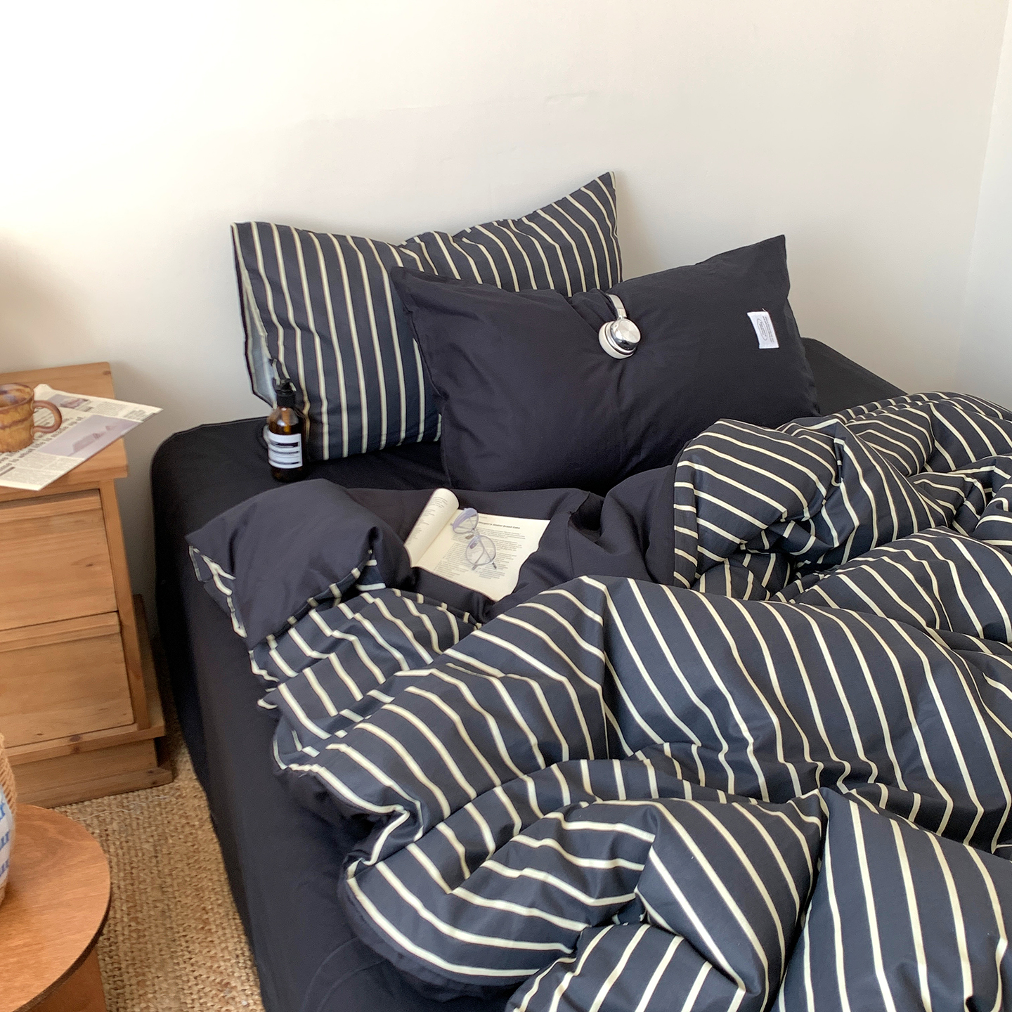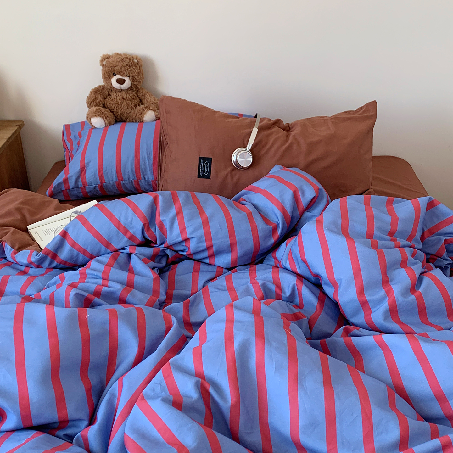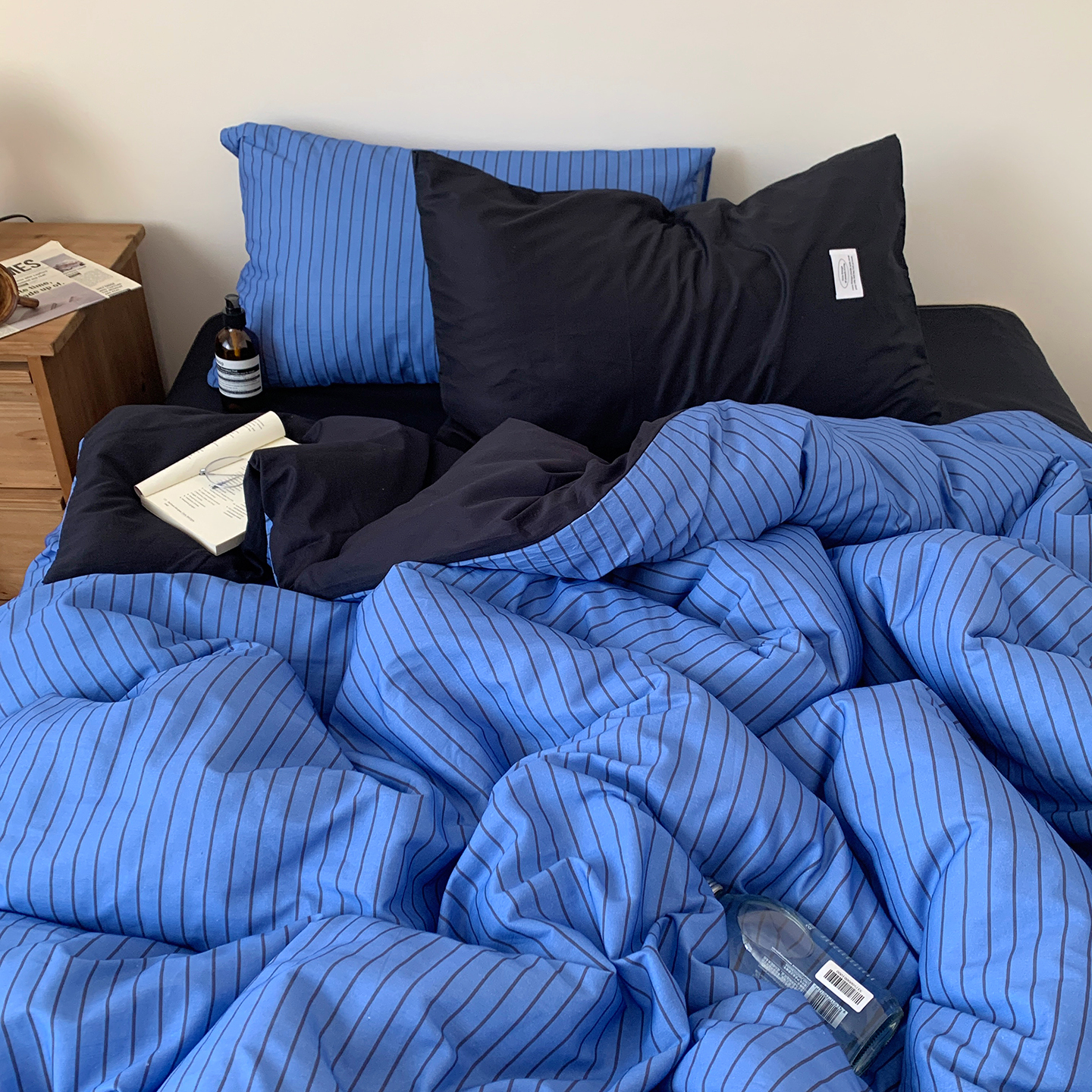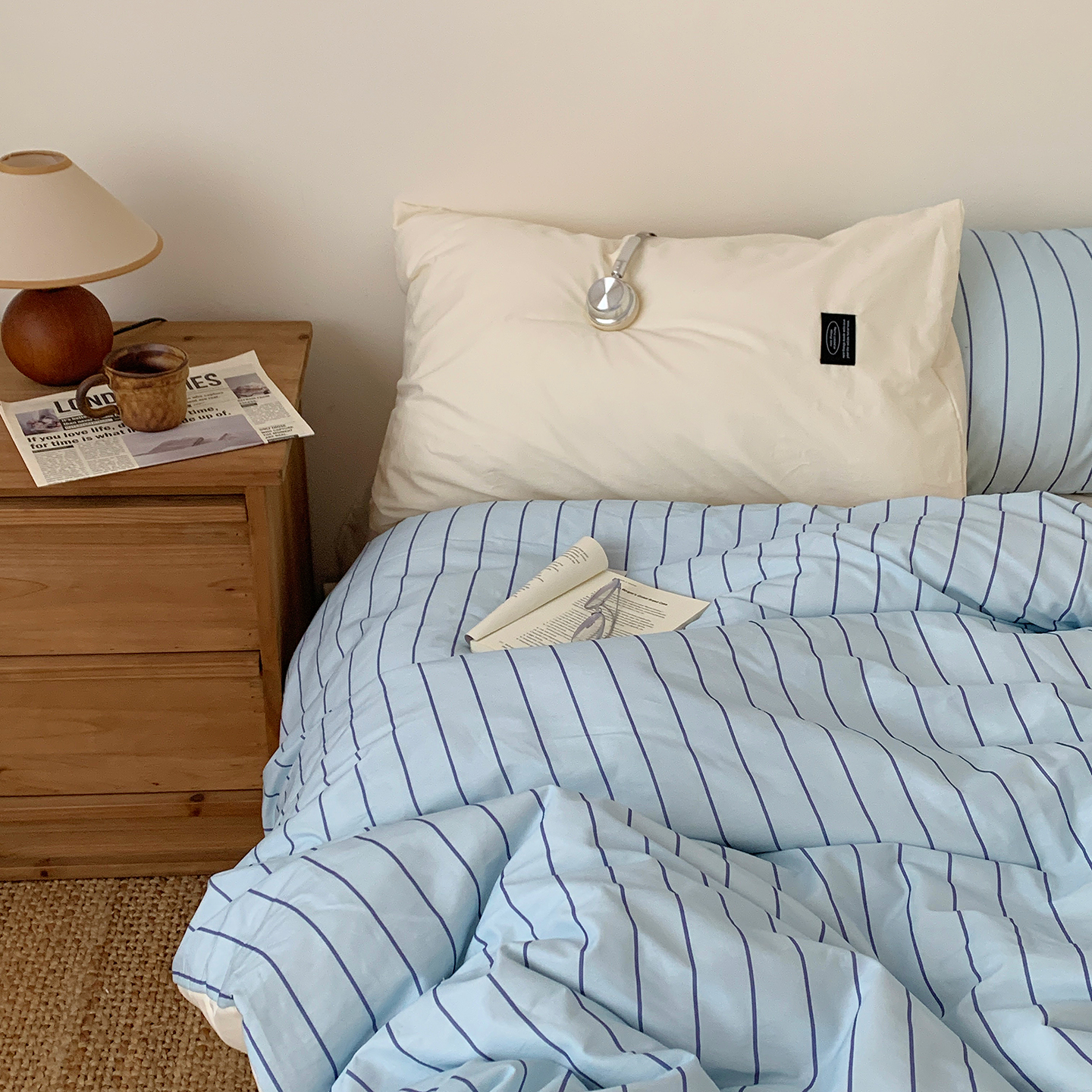 (总)桃喜 2026春夏全棉新品色织水洗棉条纹博主ins风四件套学生三件套(会员-5),薄荷芋泥,粉荔奶灰,海盐奶盖,红茶拿铁,蓝调可可,夜的留白