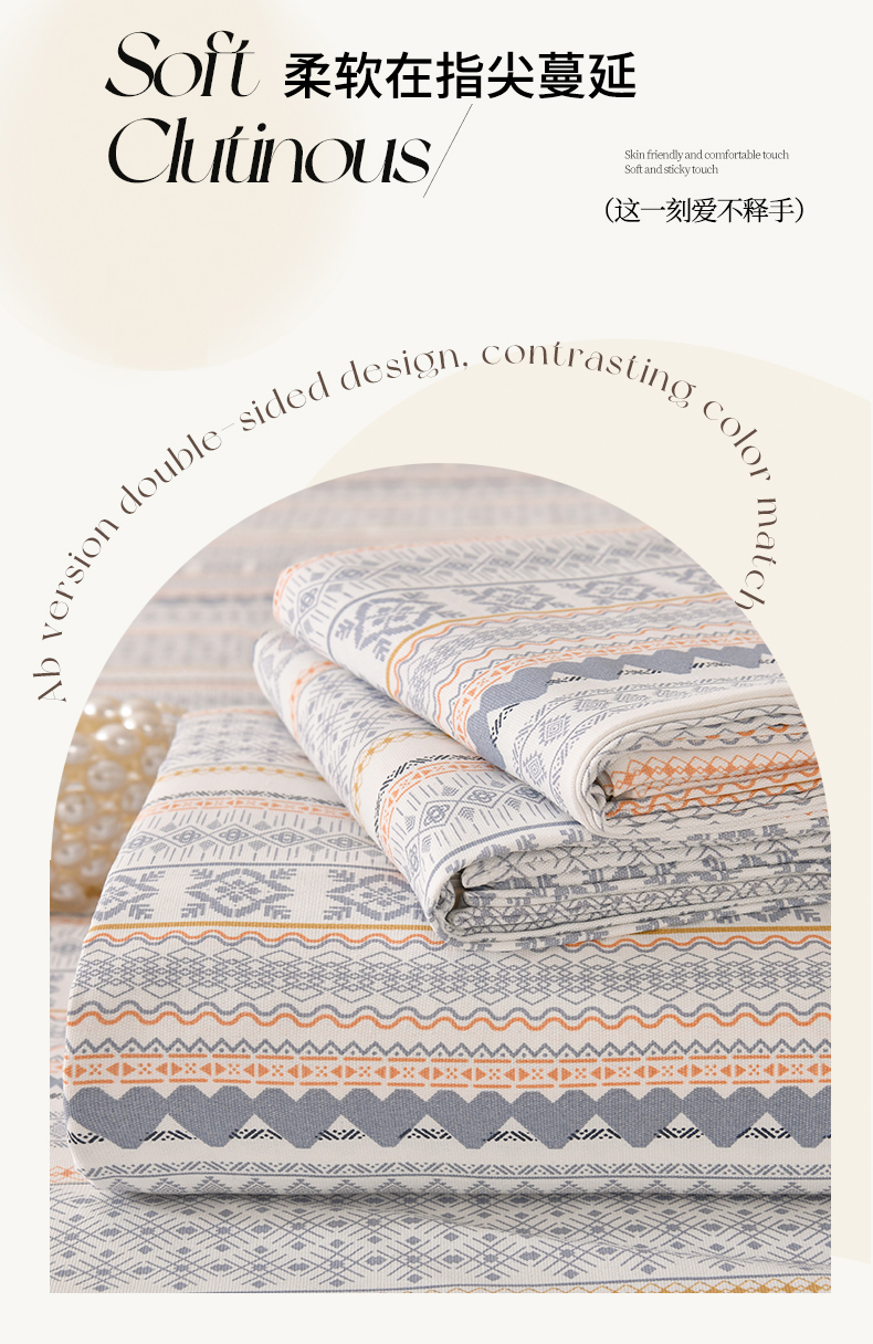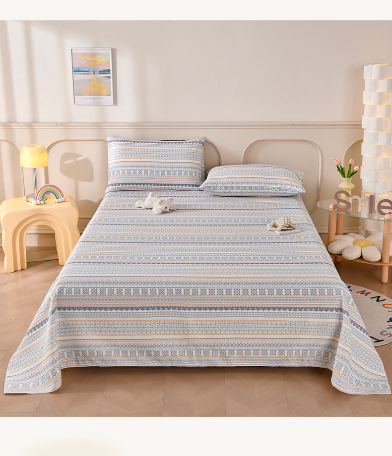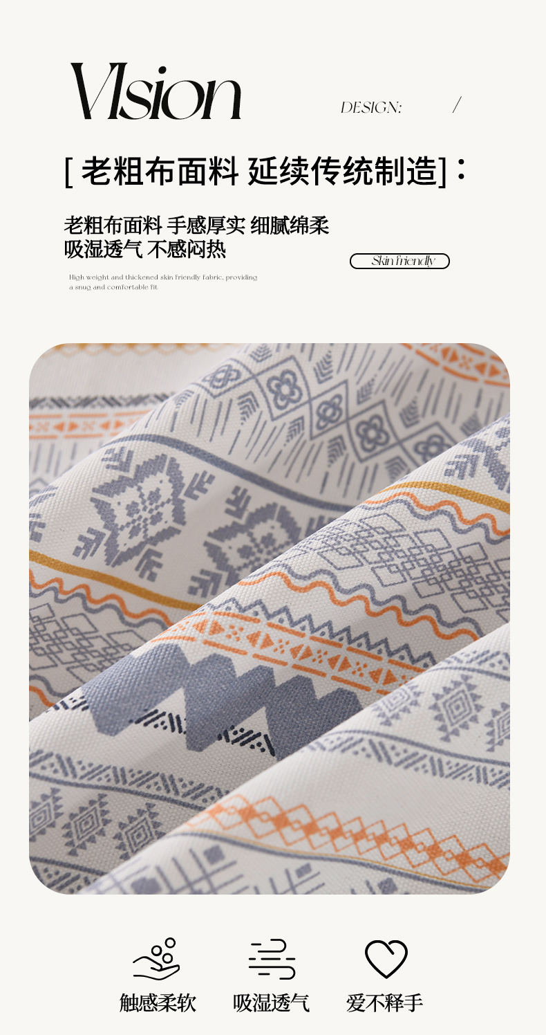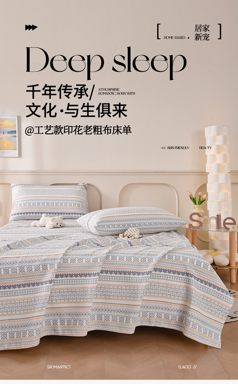 • 91家纺网 家纺一手货源 找家纺 悠米悠家 2026新款工艺款印花老粗布床单单品床单床单单件凉席席子 波西米亚几何条