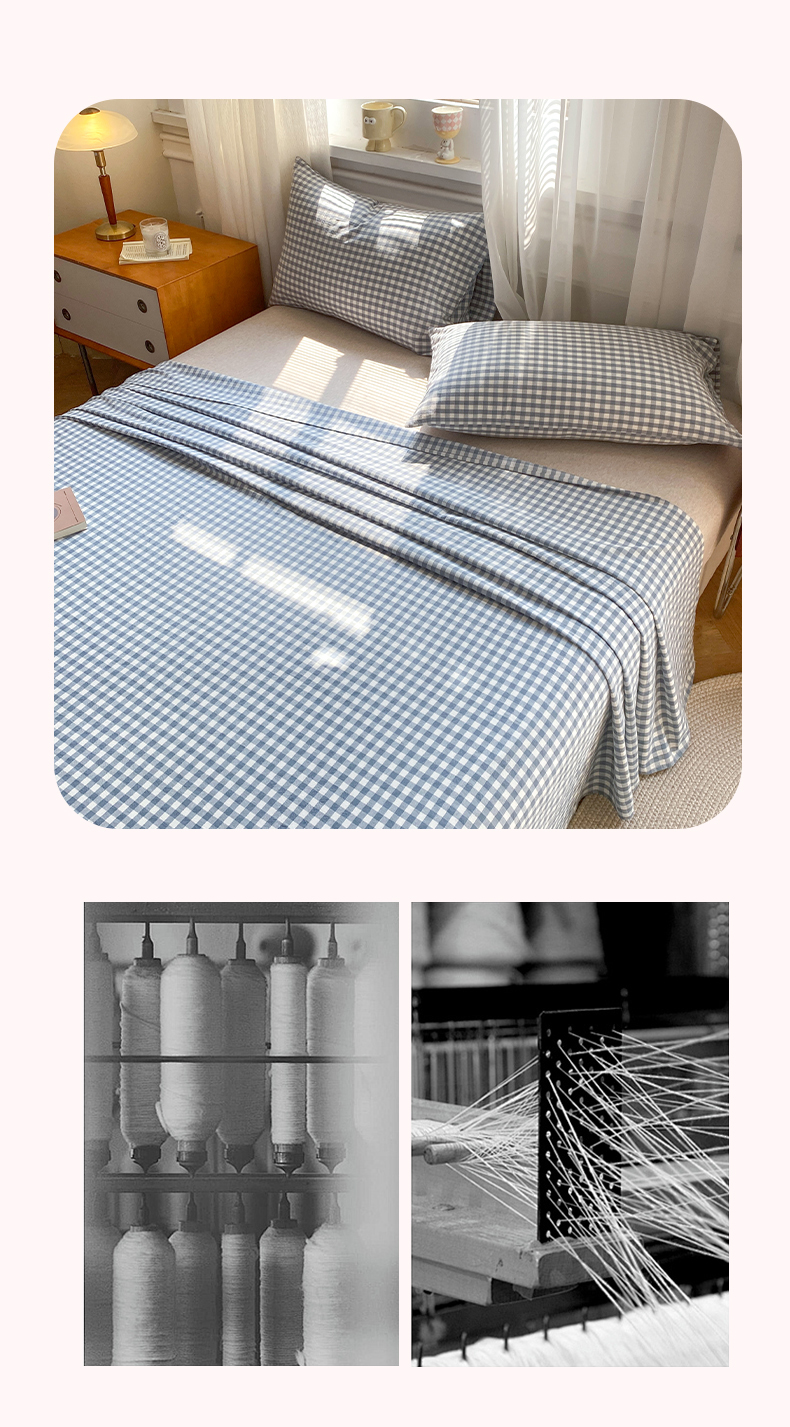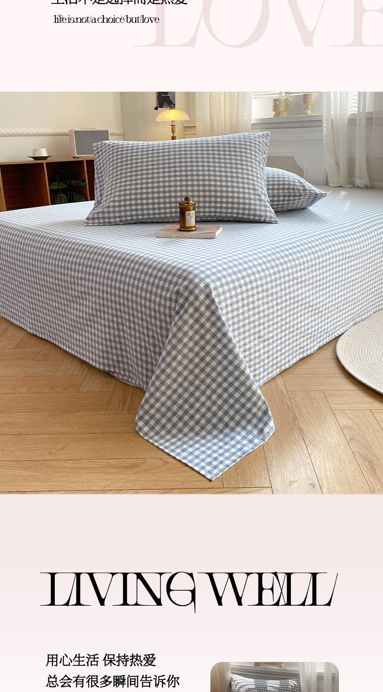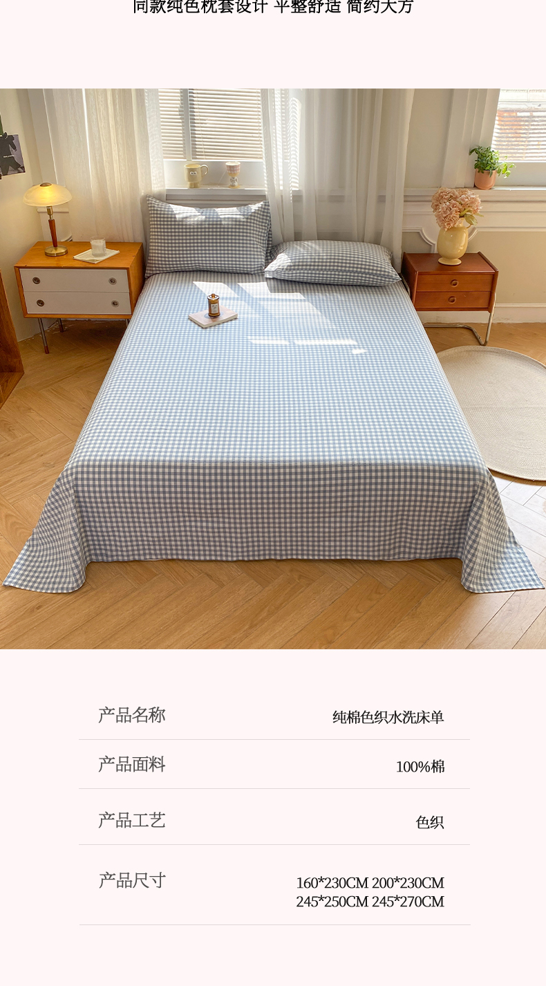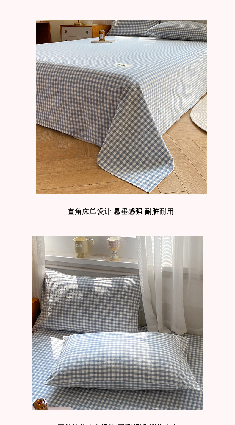 • 91家纺网 家纺一手货源 找家纺 恋人优选 2026新款全棉纯棉色织床单单床单床单单件 浅蓝小格