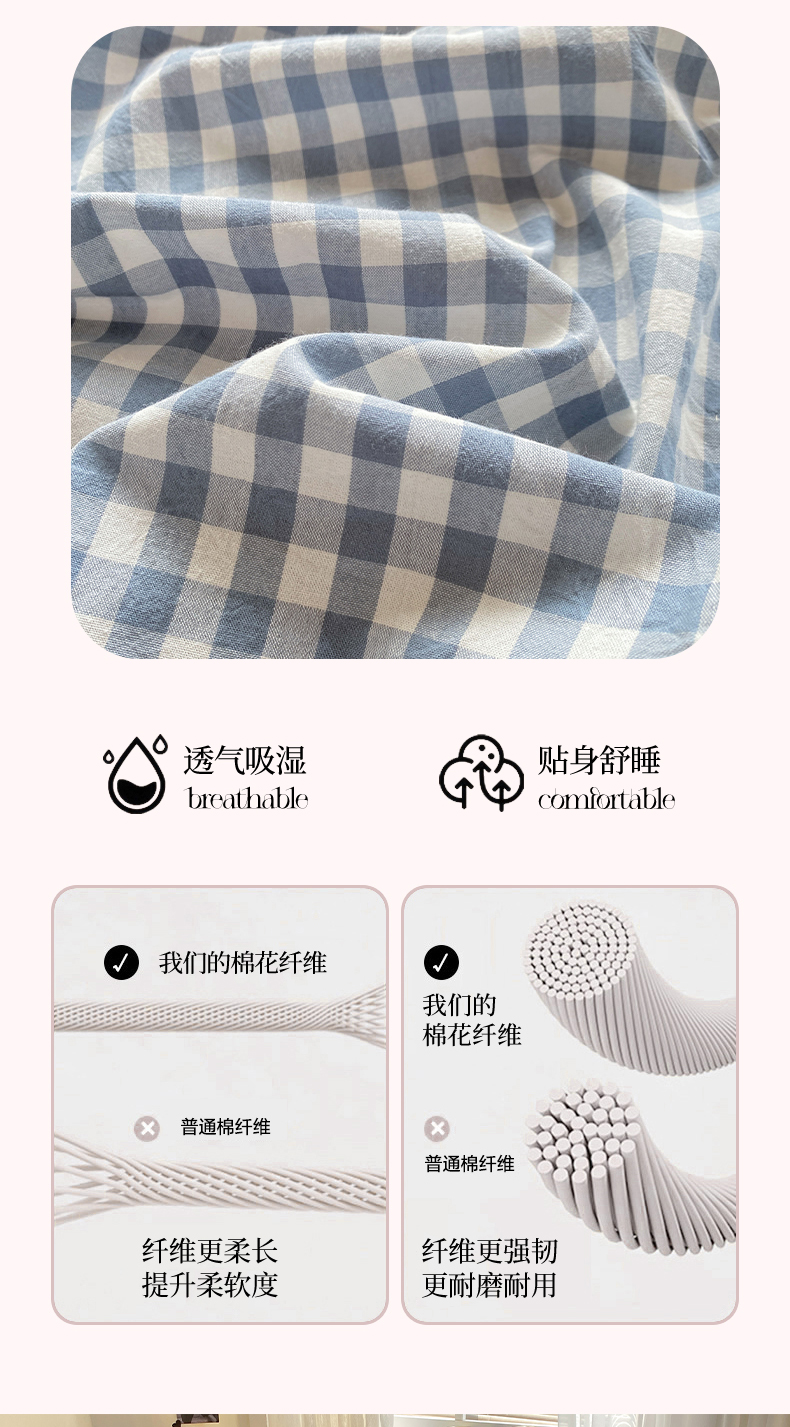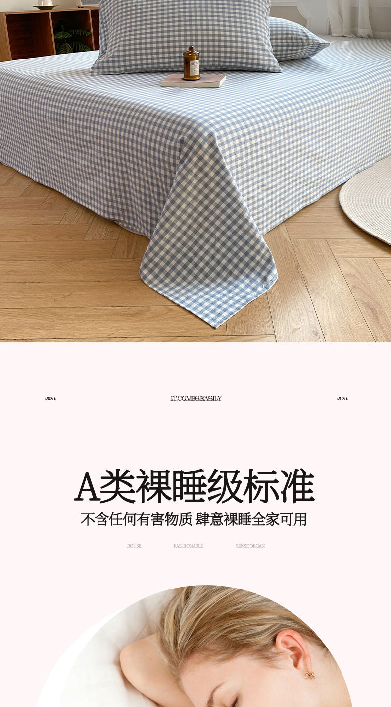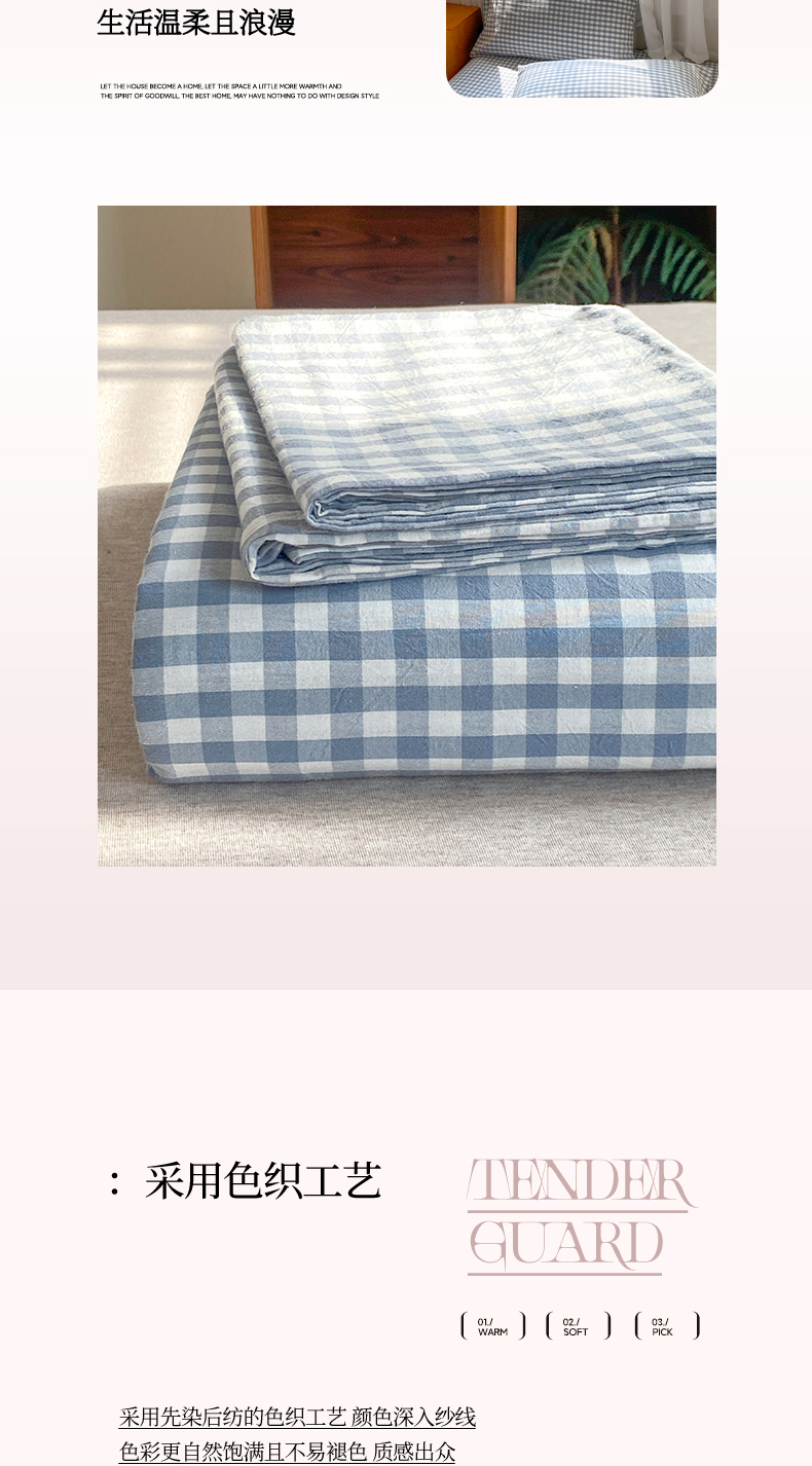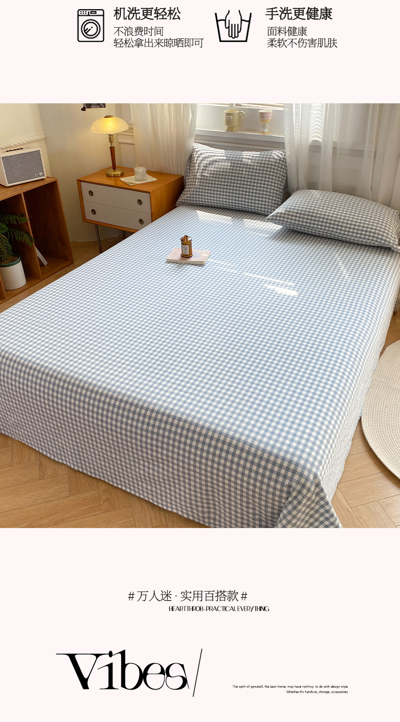 • 91家纺网 家纺一手货源 找家纺 恋人优选 2026新款全棉纯棉色织床单单床单床单单件 浅蓝小格