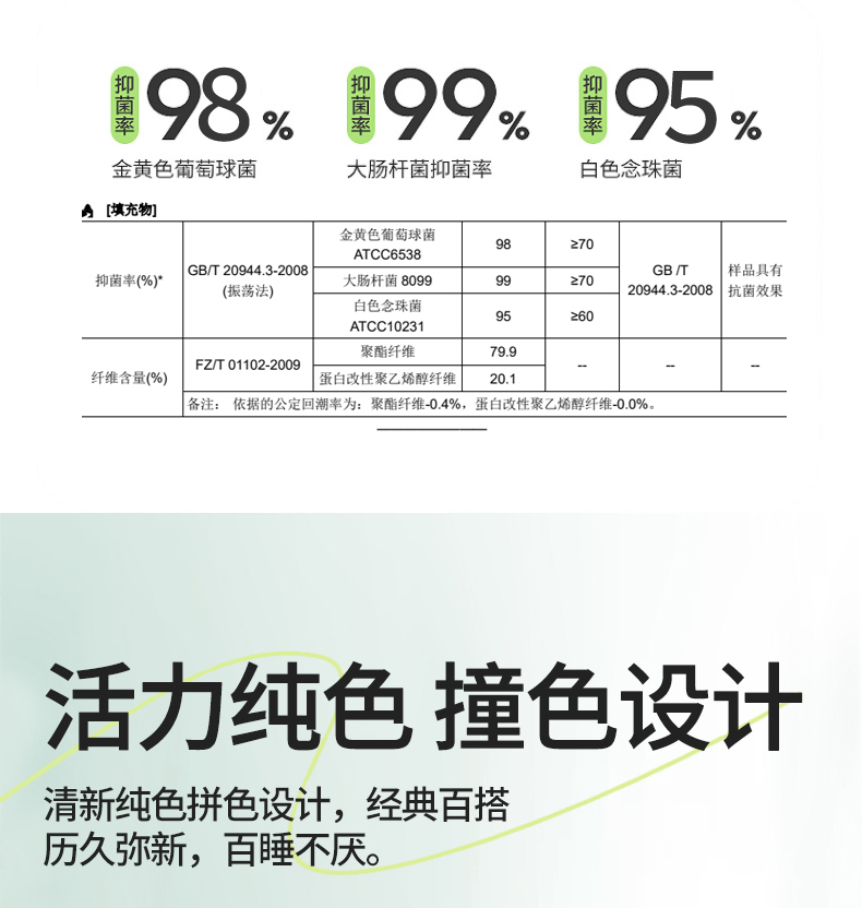 填充纤维种类: 大豆蛋白改性聚酯纤维