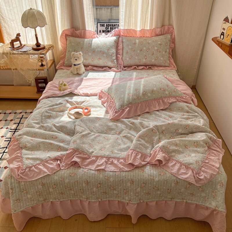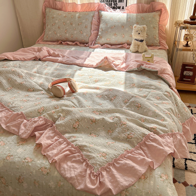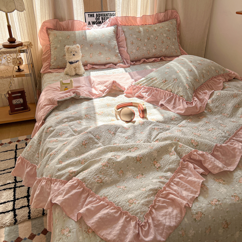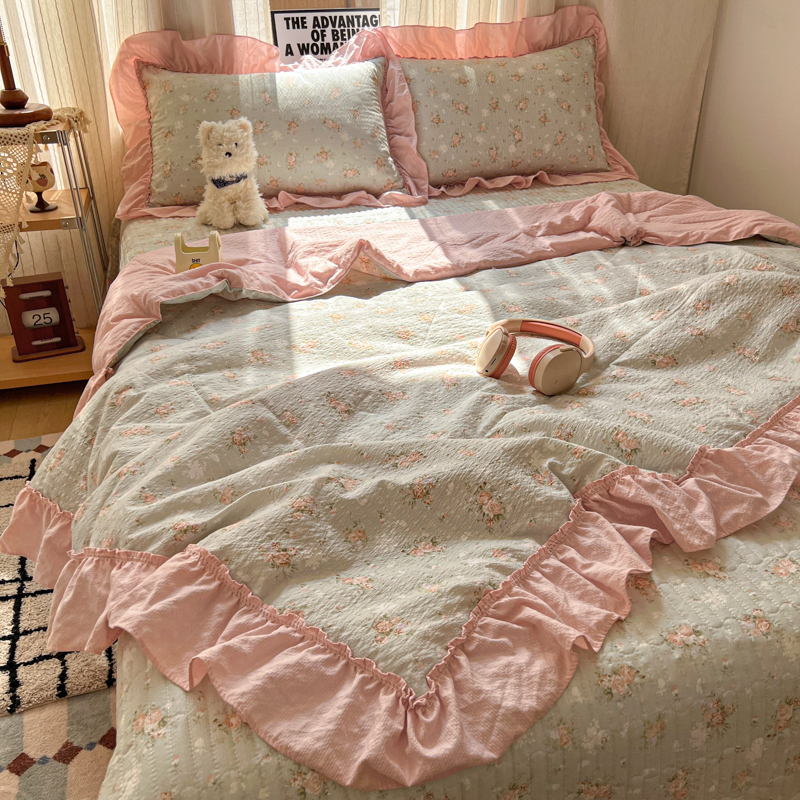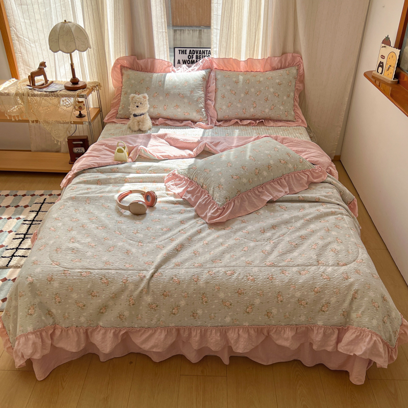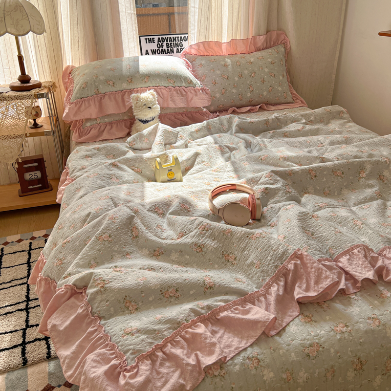 欧尚 2026新款床盖款花边夏被四件套 绿蔷薇
