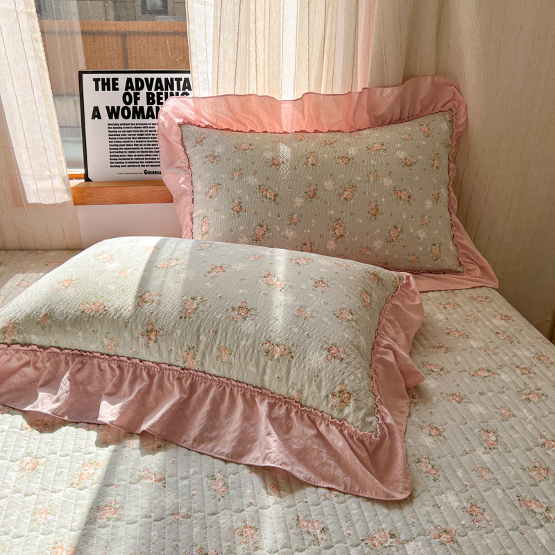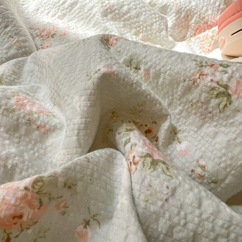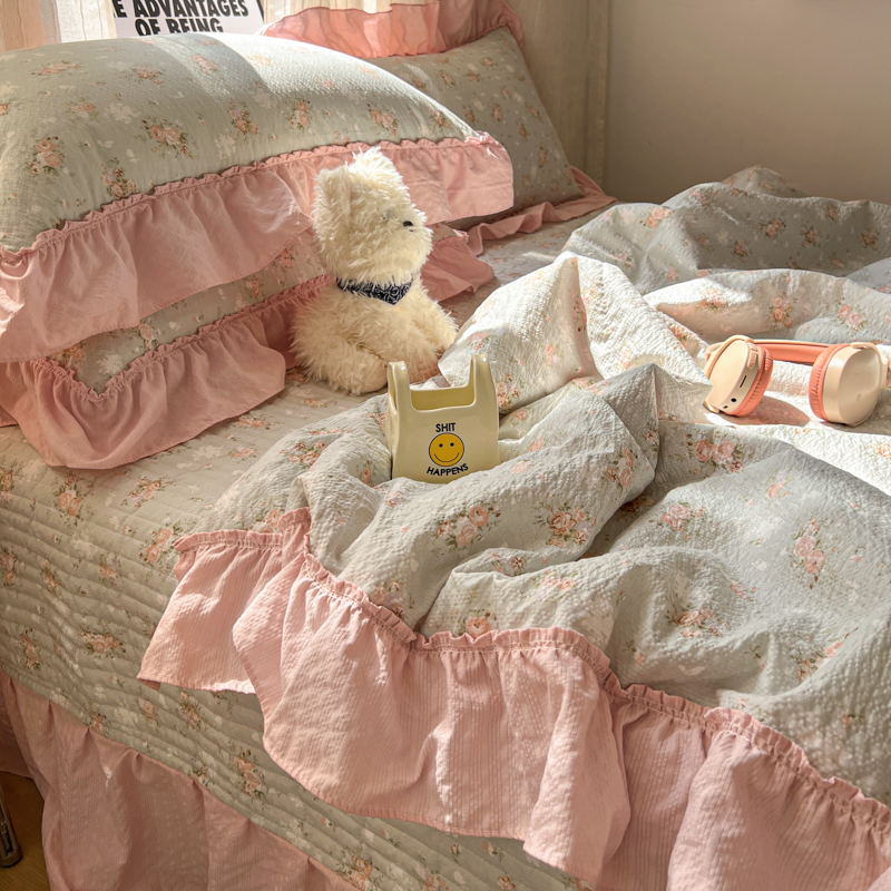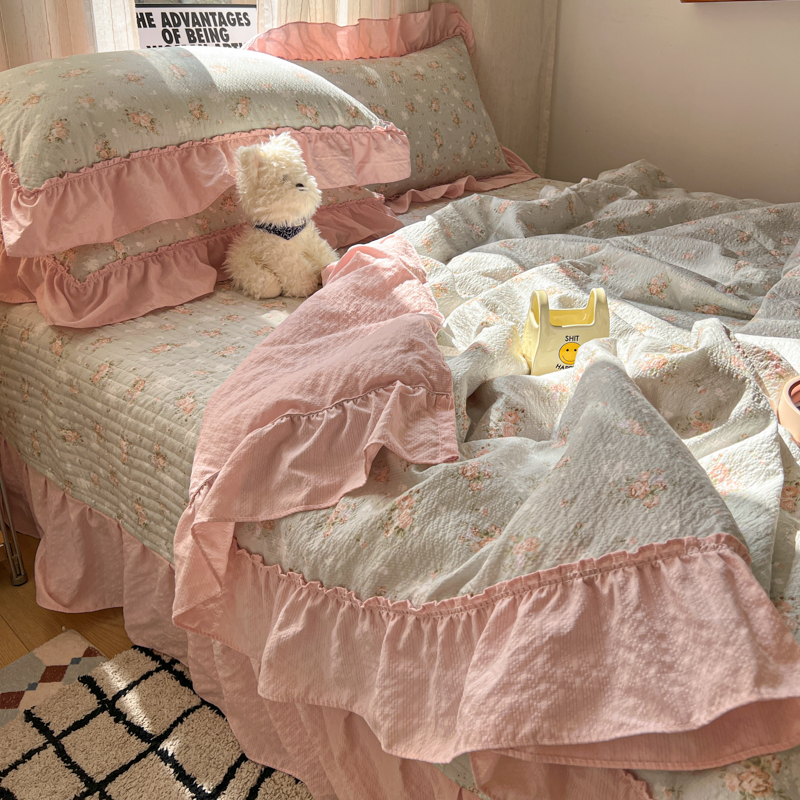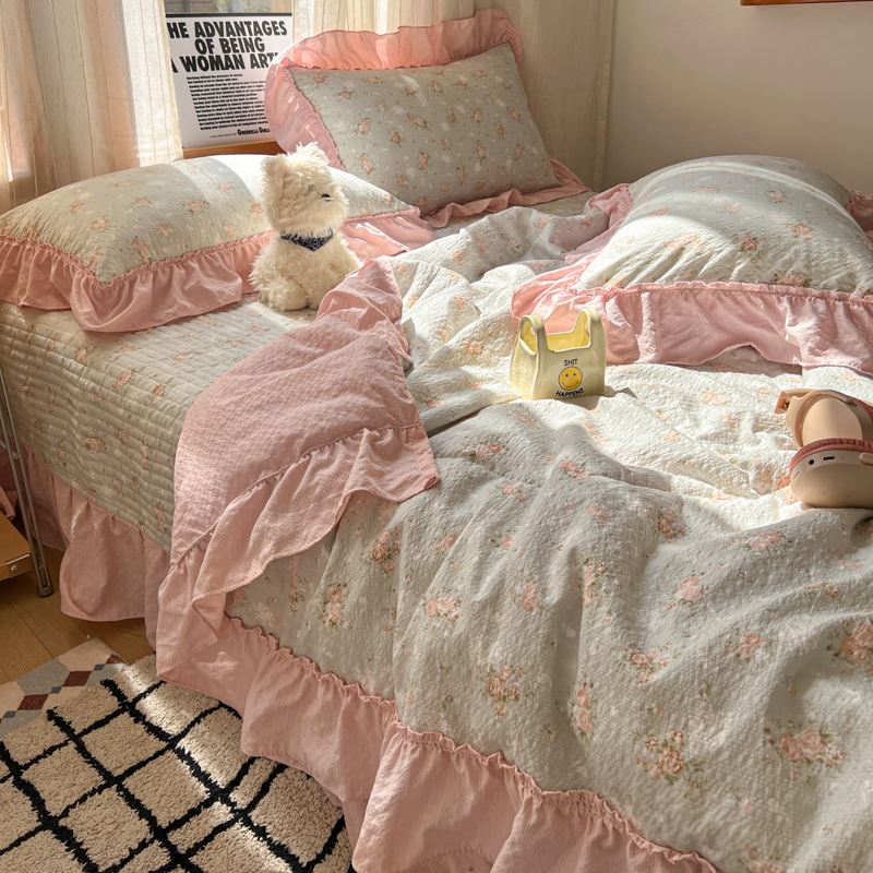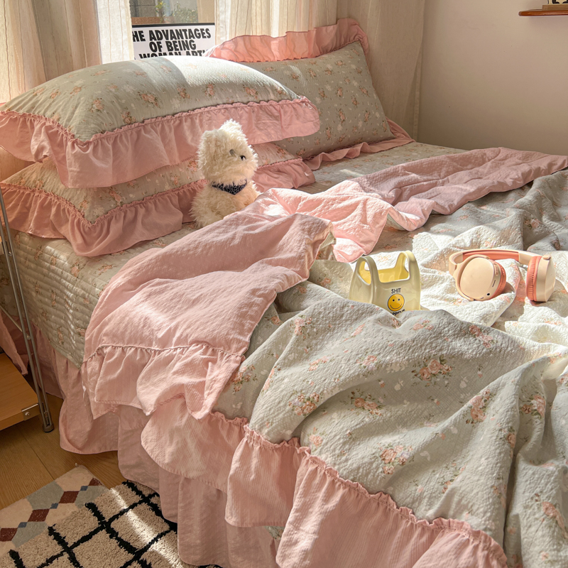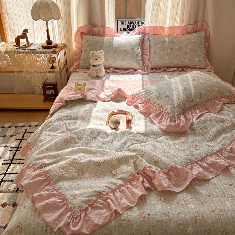 欧尚 2026新款床盖款花边夏被四件套 绿蔷薇