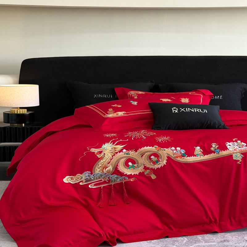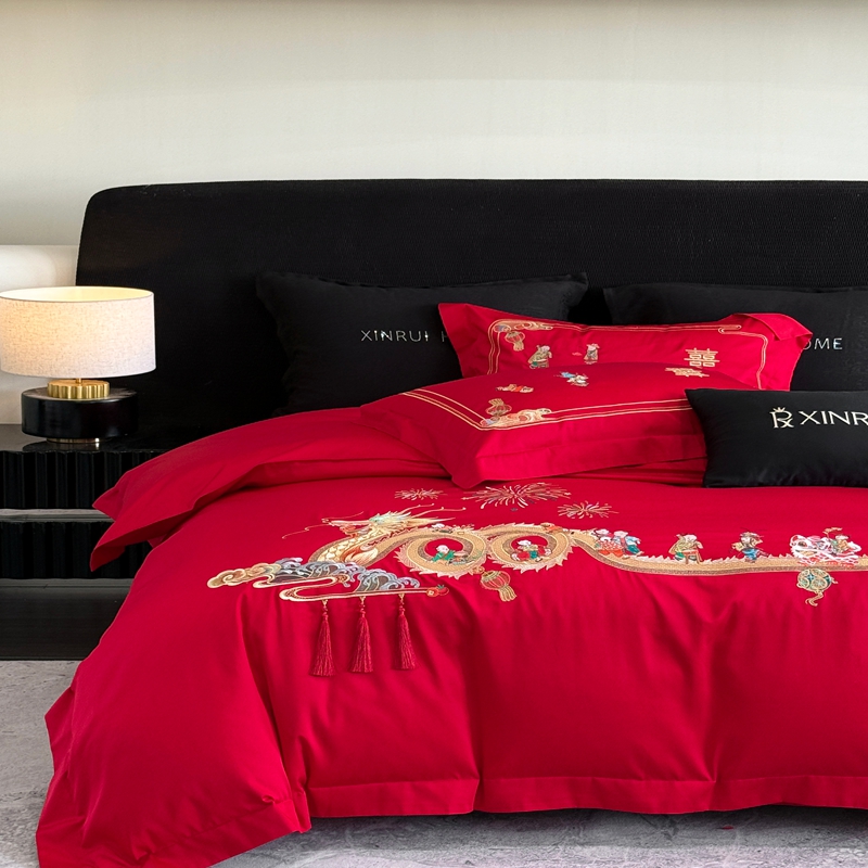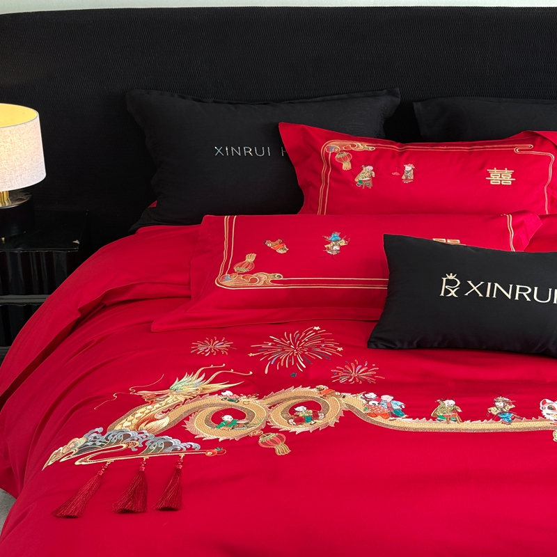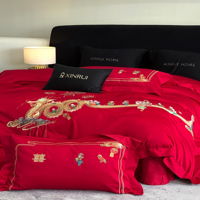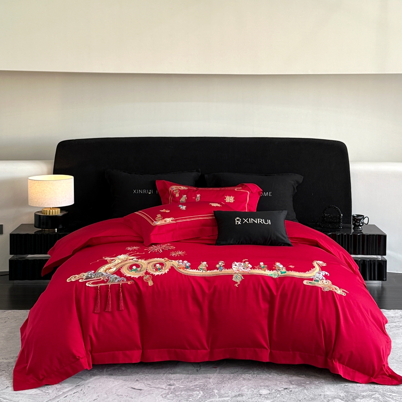 商品名称:(总)蕾诺家纺 2026新款100支高定婚庆系列四件套-百子戏园