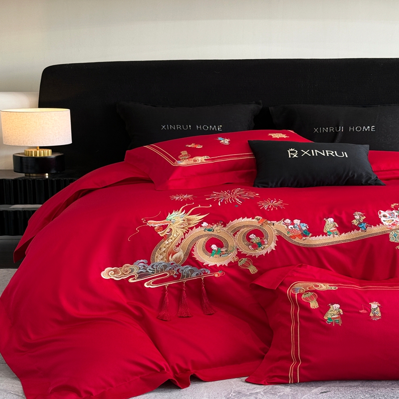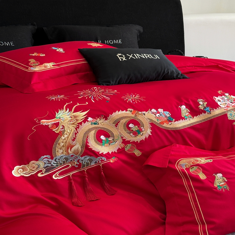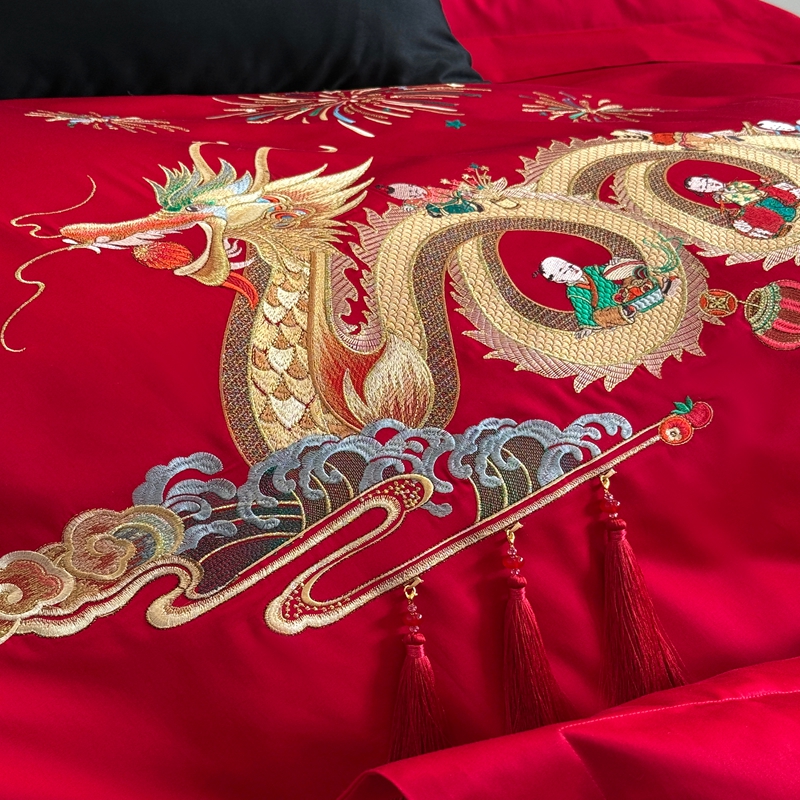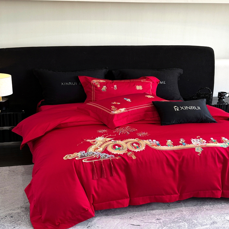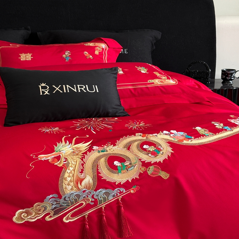 商品名称:(总)蕾诺家纺 2026新款100支高定婚庆系列四件套-百子戏园