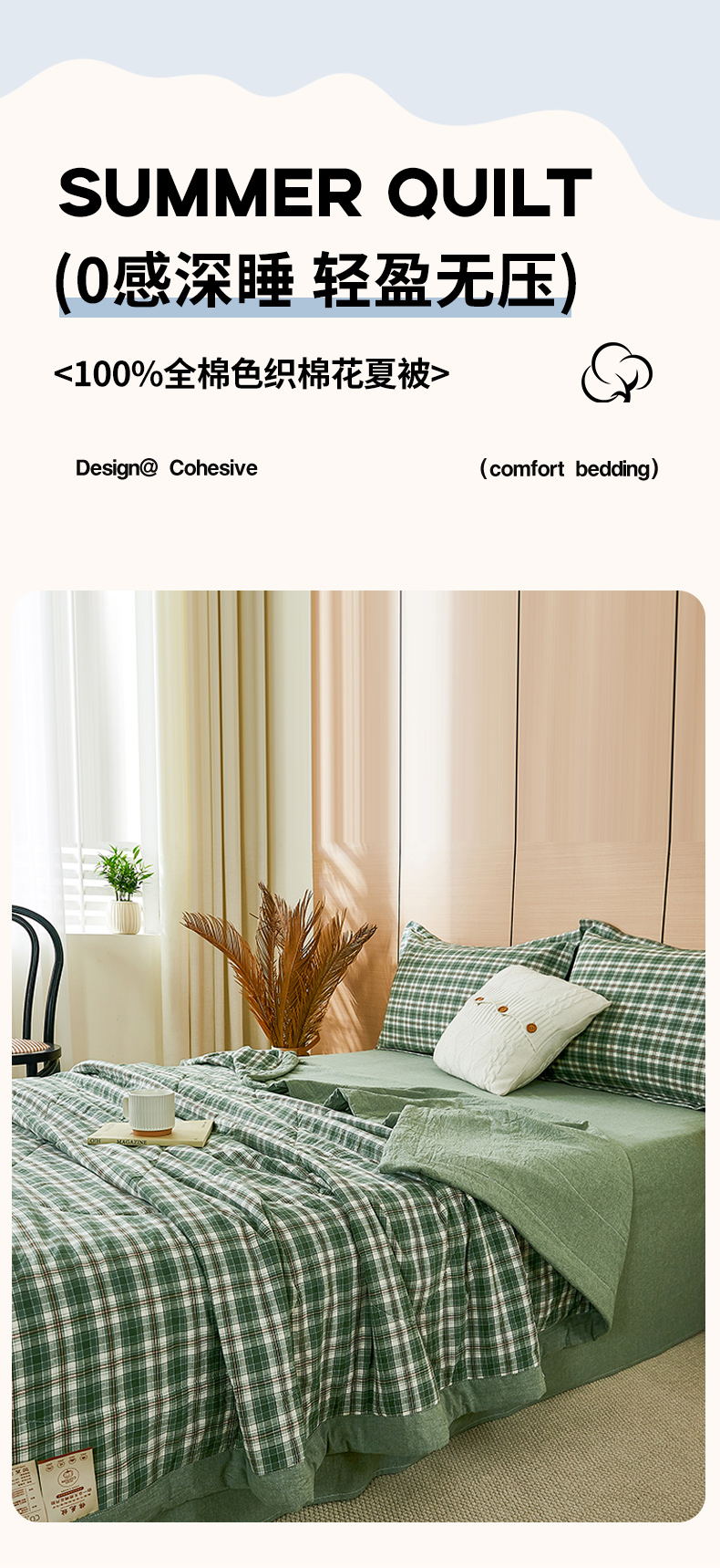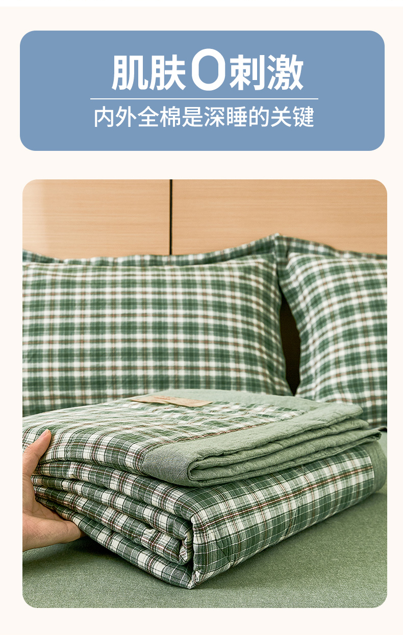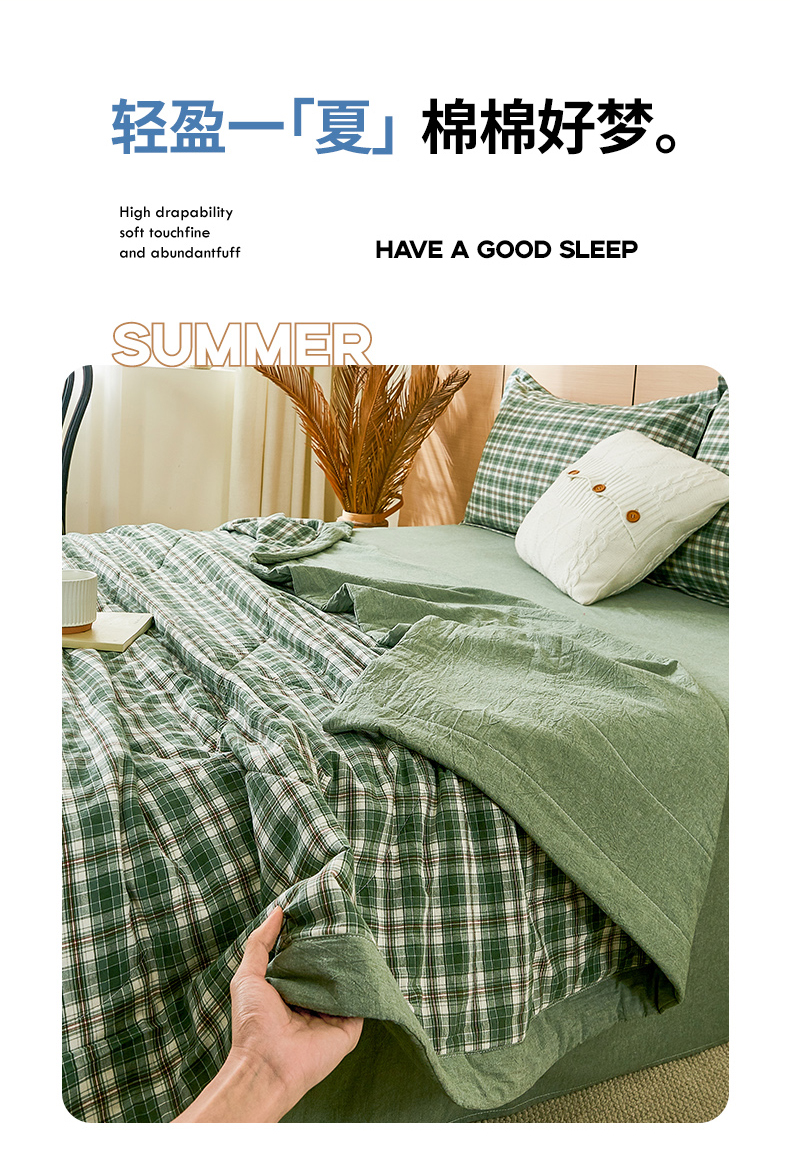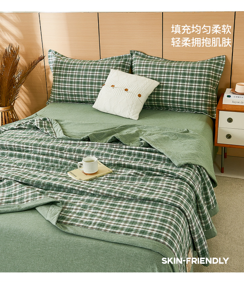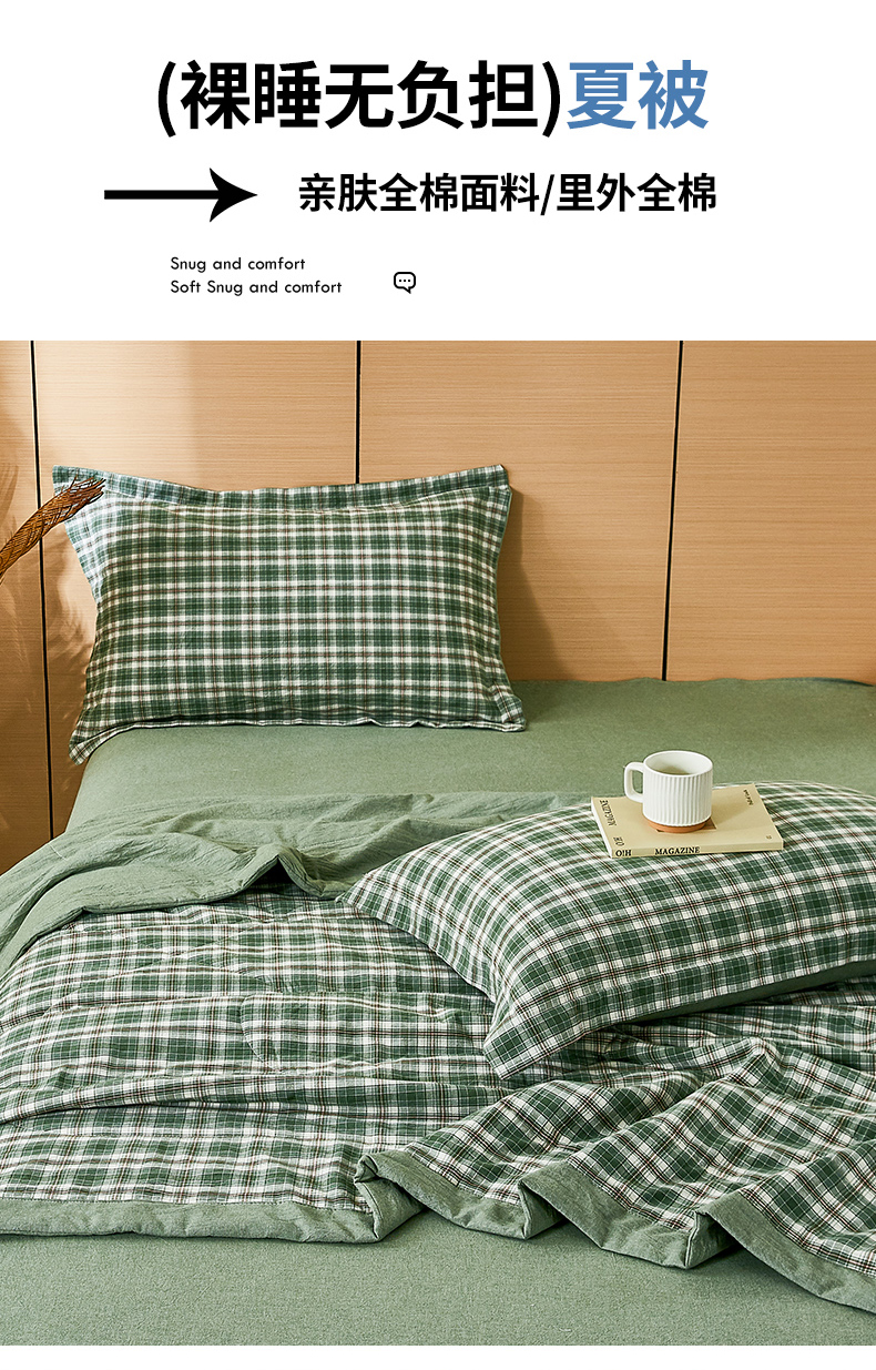 81号家纺 2026新款全棉纯棉色织棉花夏被夏凉被空调被 绿小格