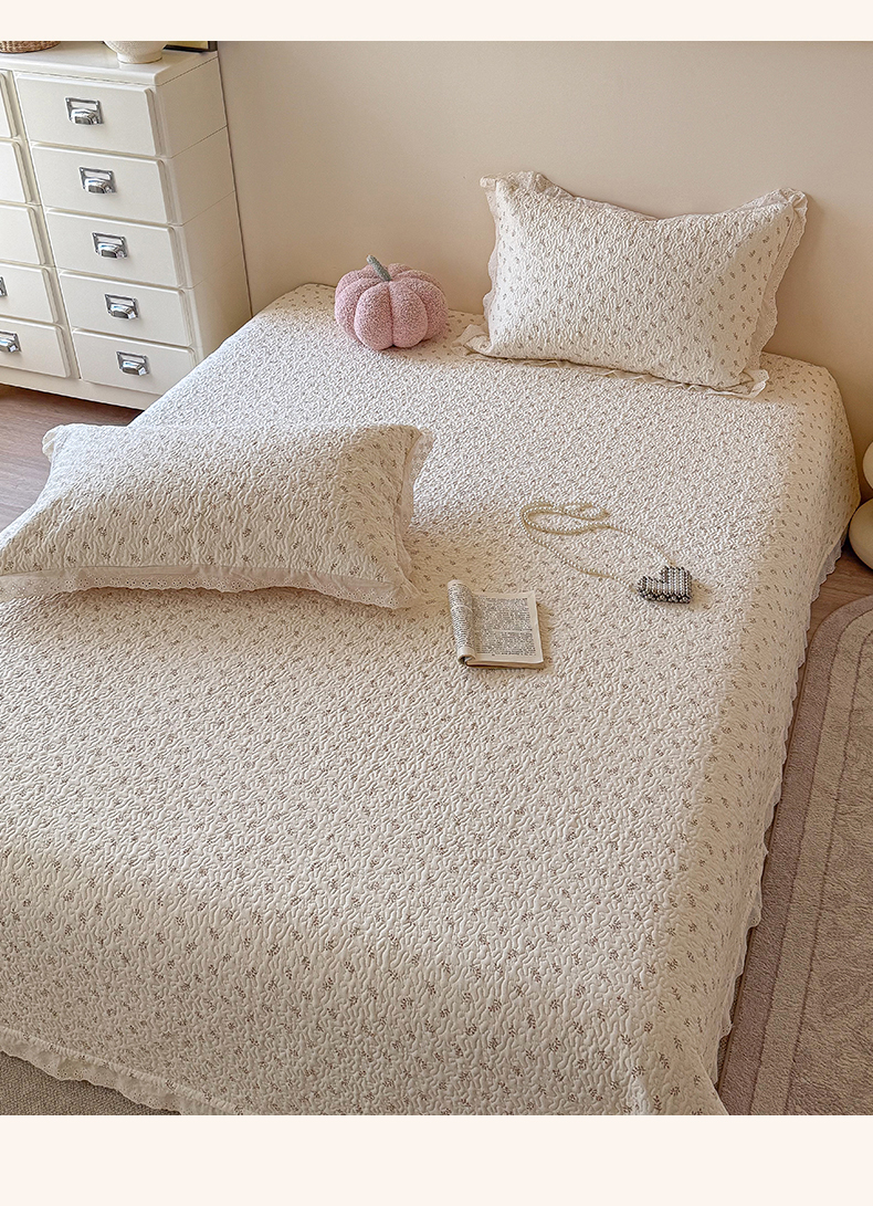 商品名称:(总)乐野家居 2026新款支持定制法式花边纯棉榻榻米三件套全棉有氧双层纱床盖三件套四季通用