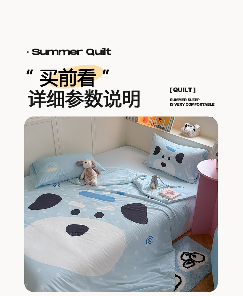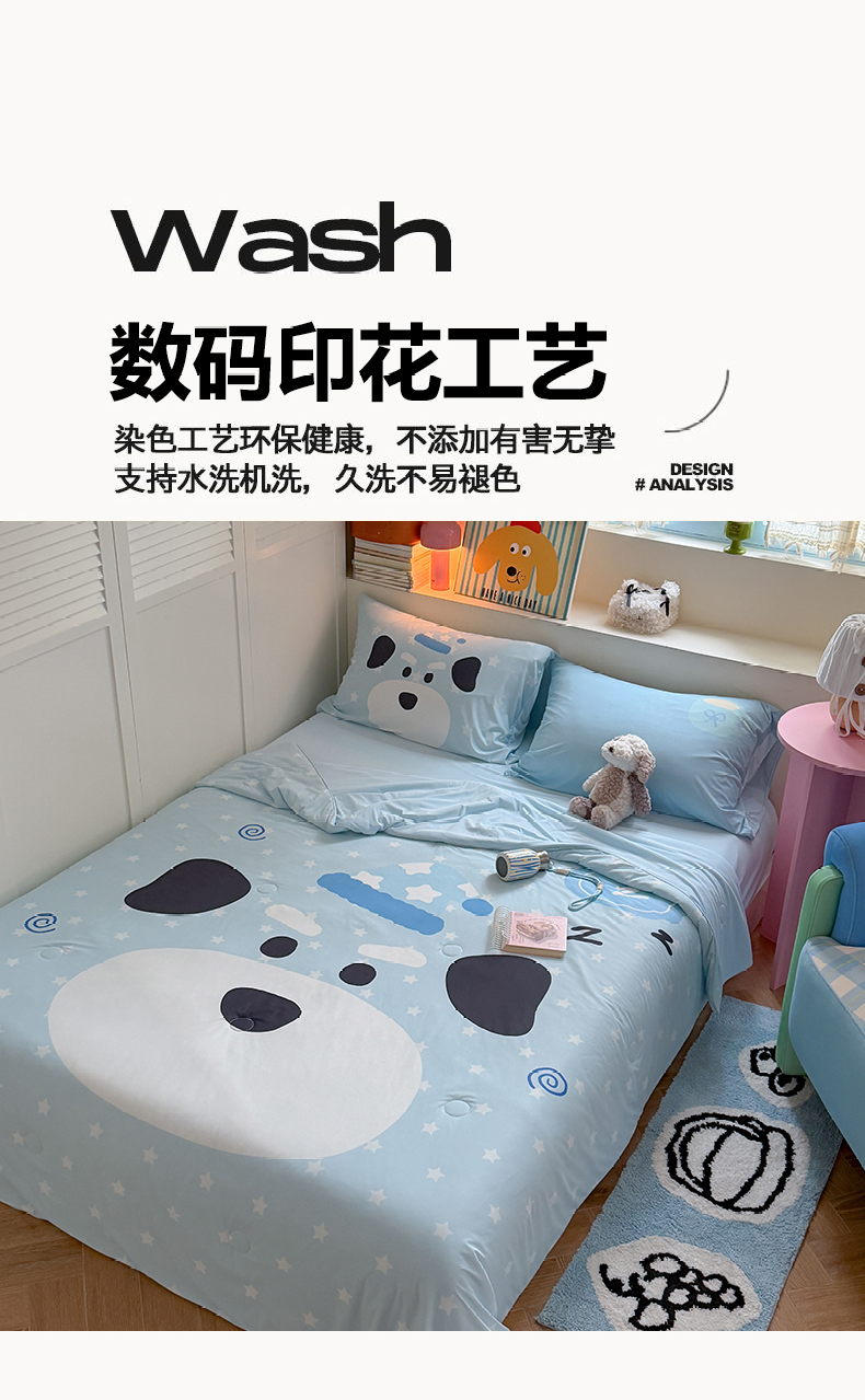 当前位置: 91家纺网 > 商品网购 > 床品套件 > 四件套 > 夏被四件套 > TT.one 塔塔家居 2026新款A类凉感大版数码印花夏被夏凉被空调被四件套 卷卷狗