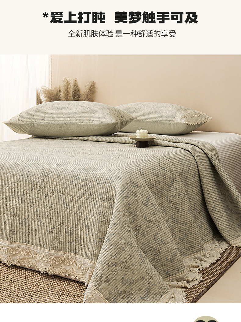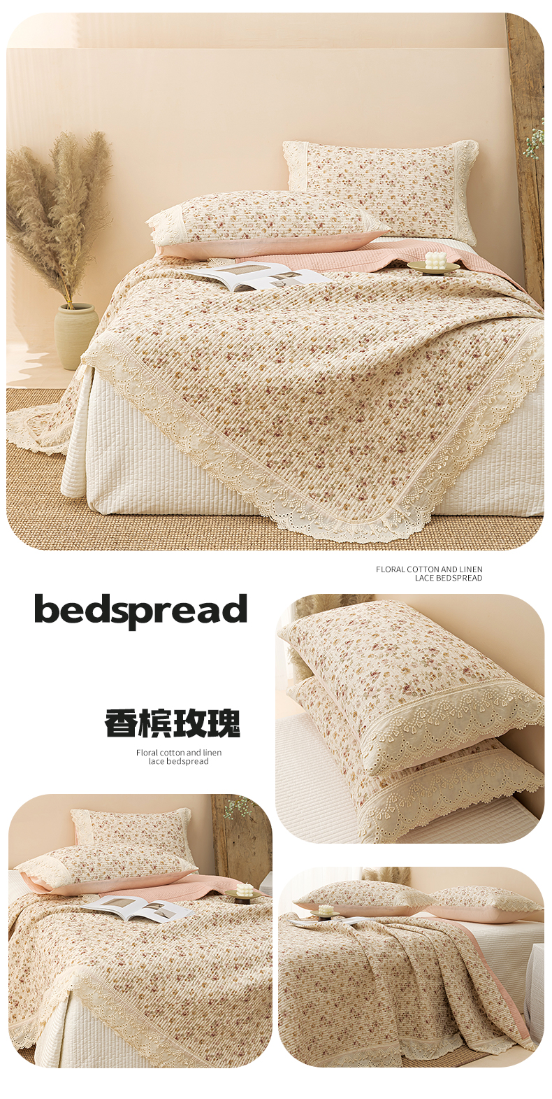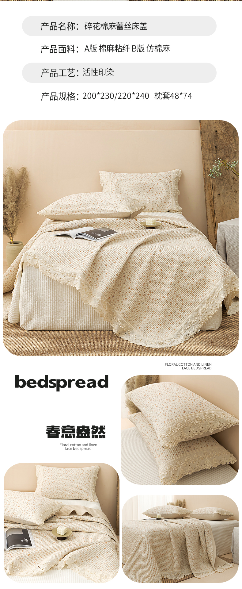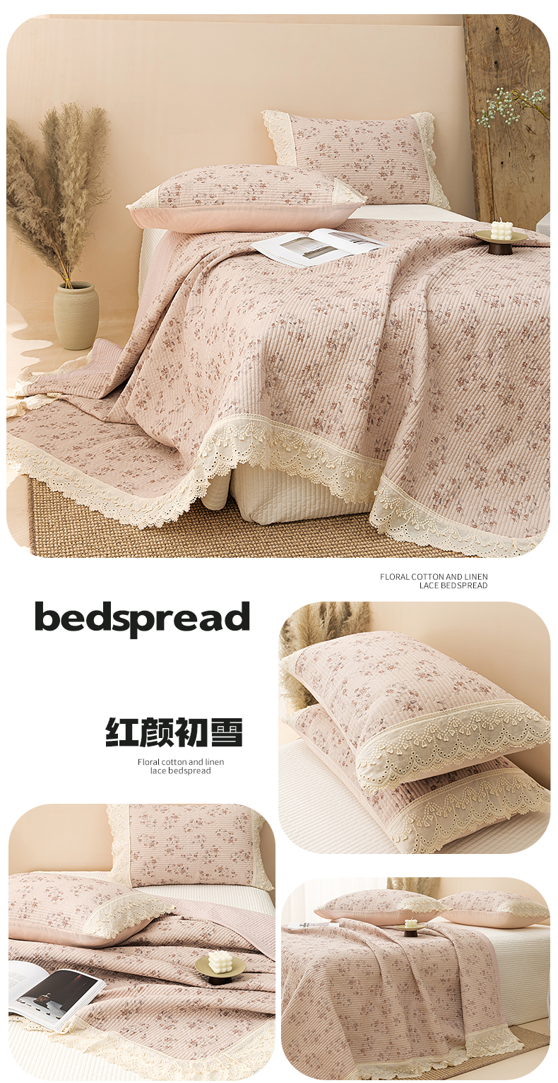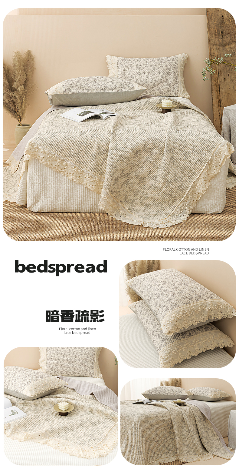 (总)恩和家纺 2026新款棉麻蕾丝碎花床盖