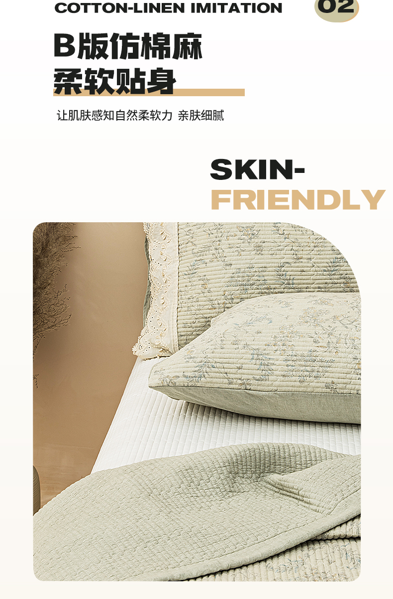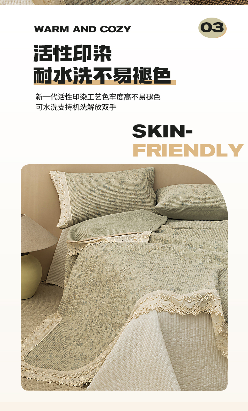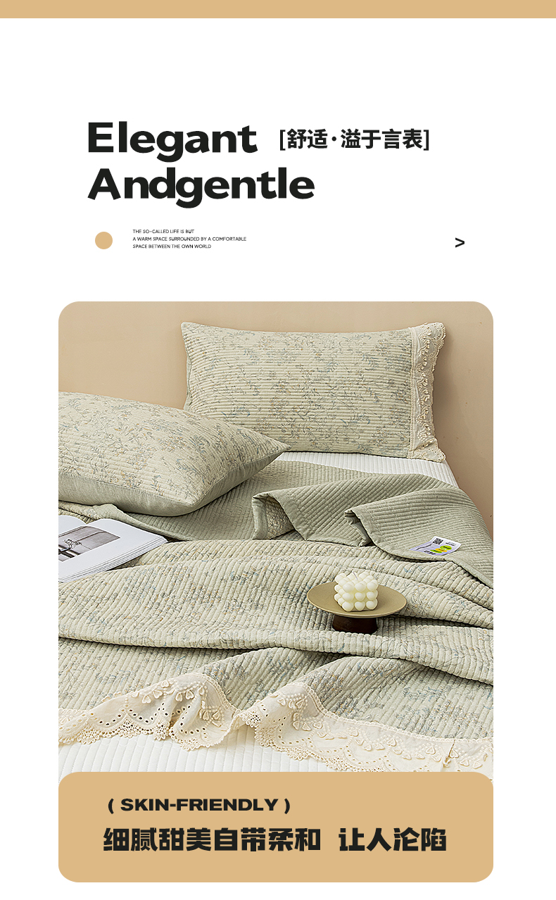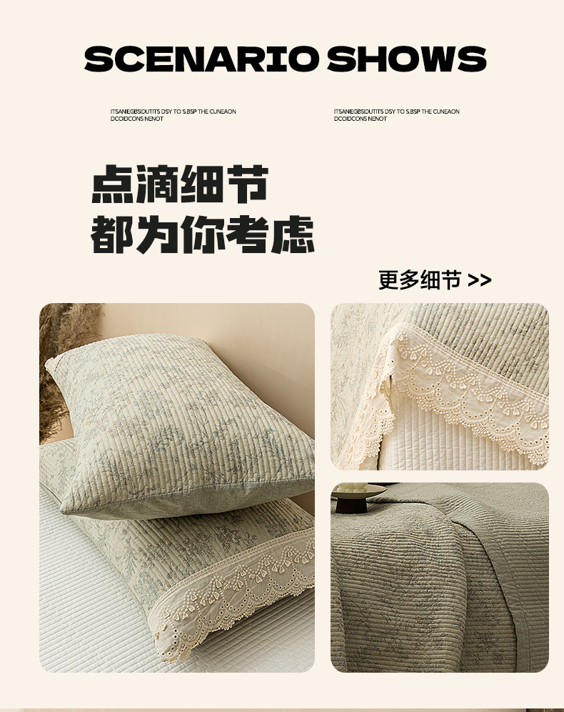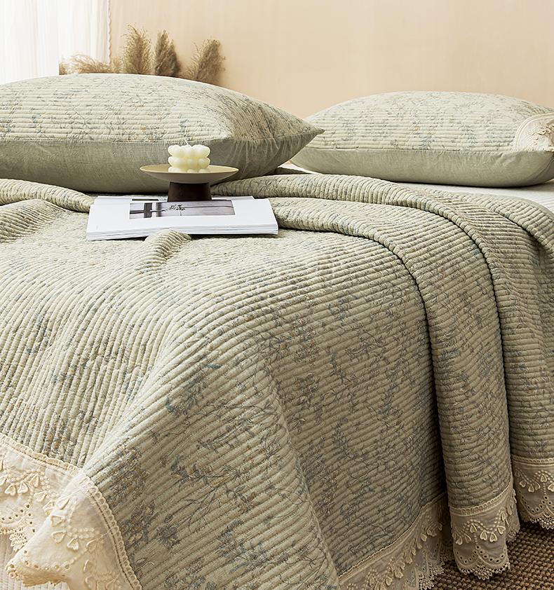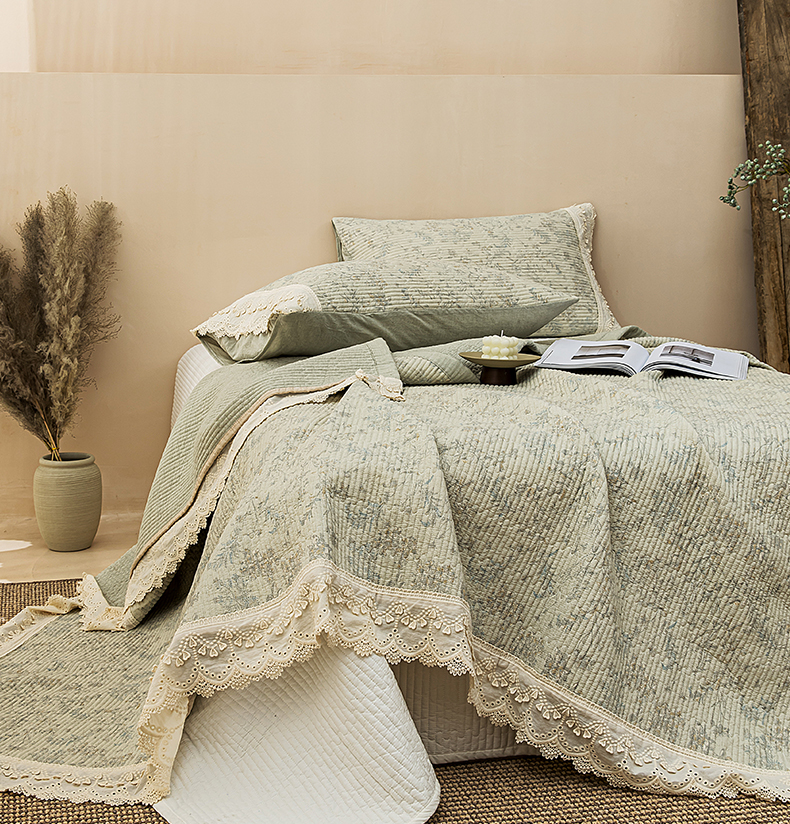 (总)恩和家纺 2026新款棉麻蕾丝碎花床盖
