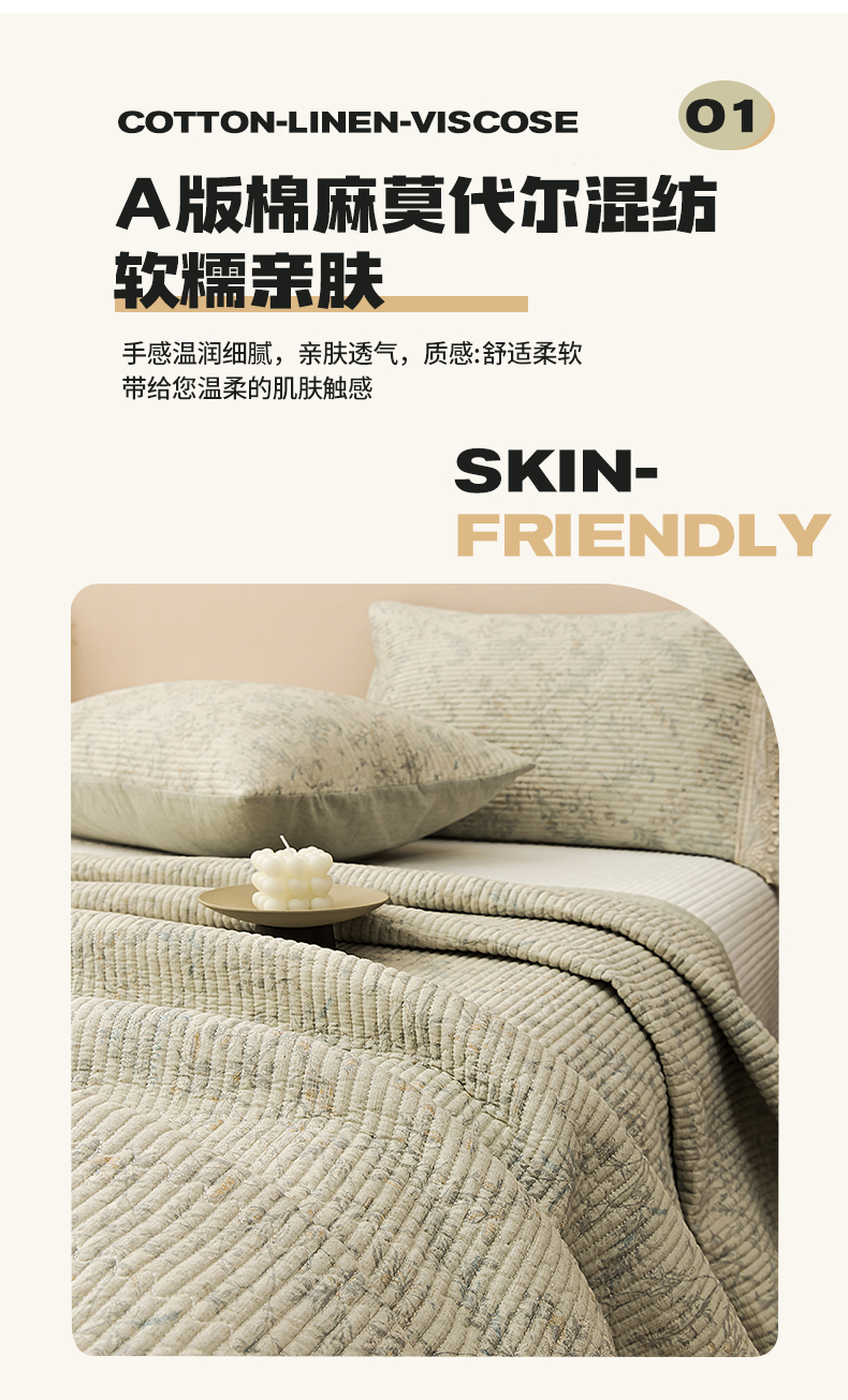 • 91家纺网 家纺一手货源 找家纺 (总)恩和家纺 2026新款跨境专供米粒纹美式夹棉床罩,原木白,豆沙粉,咖色,卡其棕,松烟灰