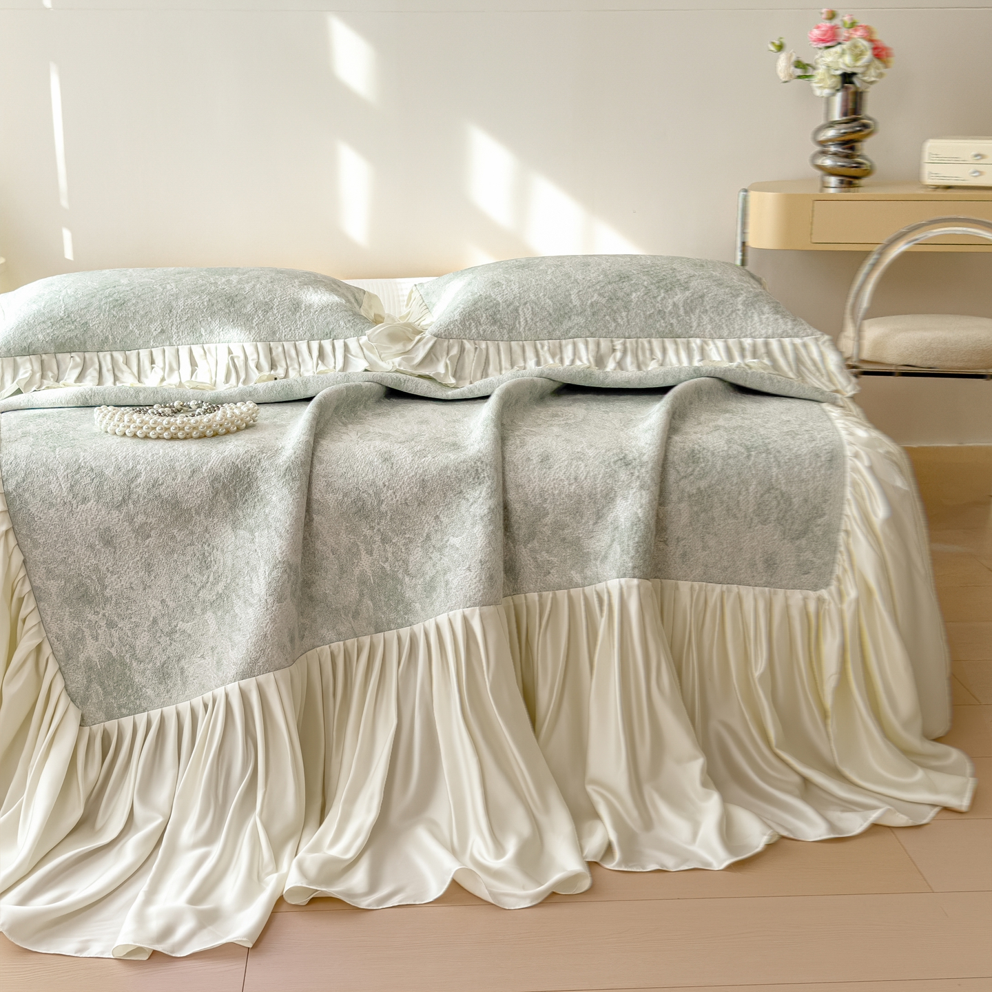(总)孩子王家纺 2026新款夏季凉感公主风冰豆豆花边凉席床裙款凉感值过0.21三件套可机洗冰丝空,豆豆物语-芭蕾粉,豆豆物语-流连紫,豆豆物语-奶白,豆豆物语-奶咖,豆豆物语-天空蓝,豆豆物语-微微蓝,豆豆物语-飘飘-绿