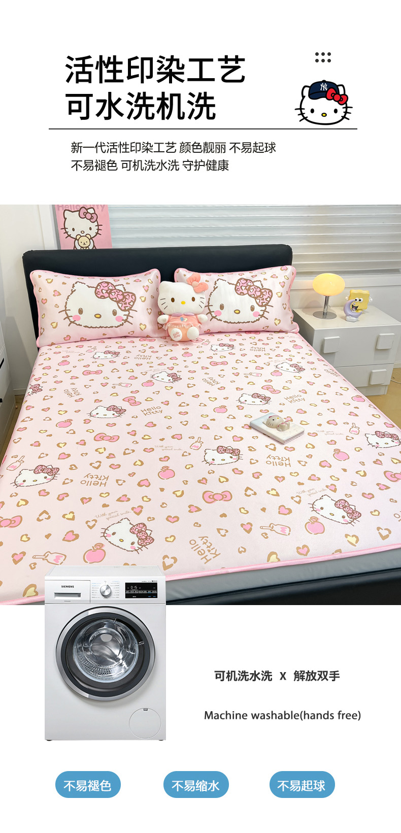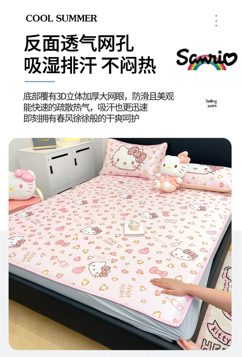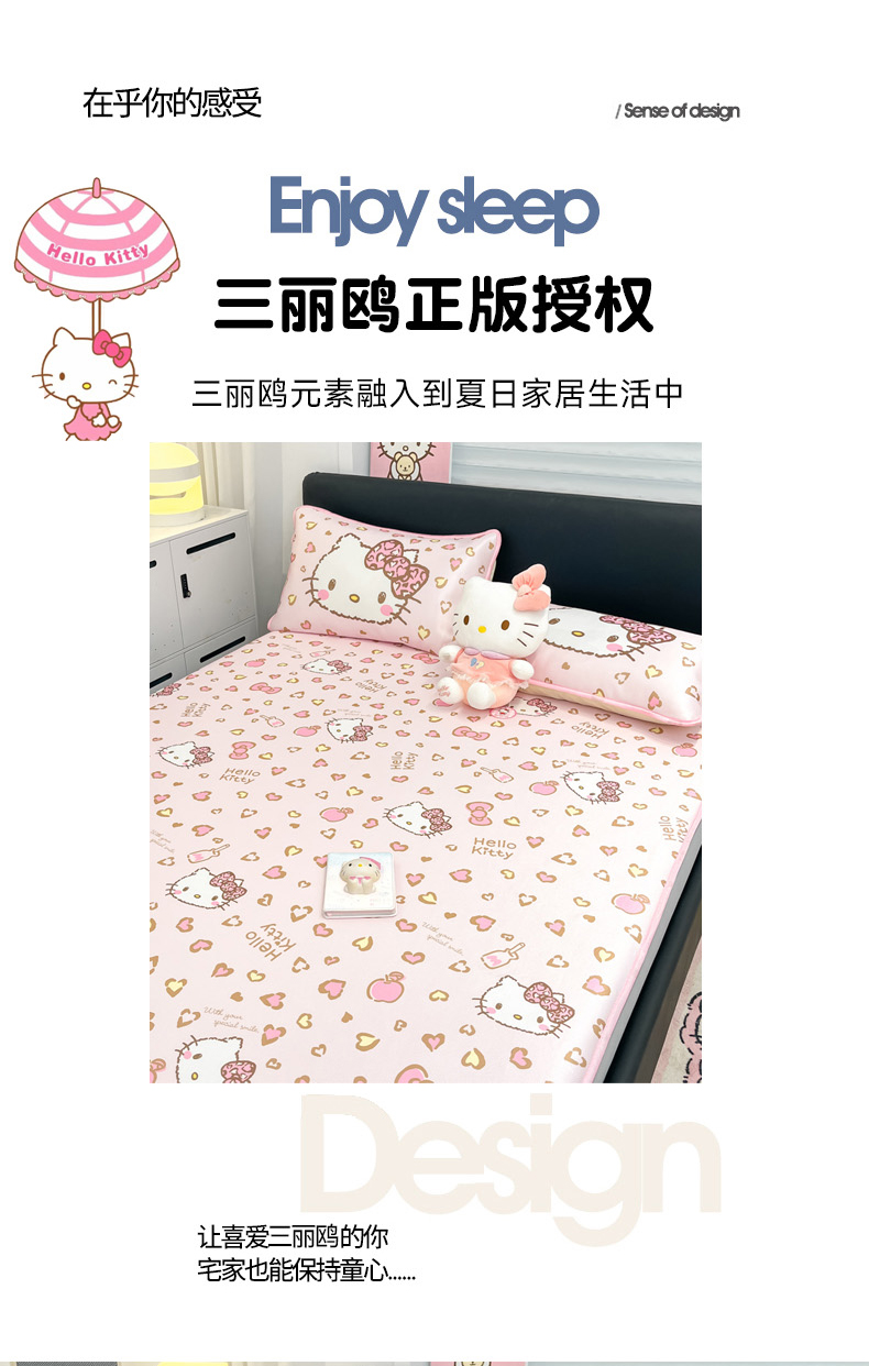 当前位置: 91家纺网 > 商品网购 > 床上用品 > 凉席 > 凉席套件 > 暮思家居 2026新款三丽鸥正版授权数码印花A类可机洗1200D冰丝凉席三件套床笠款系列 床笠款-凯蒂乐园