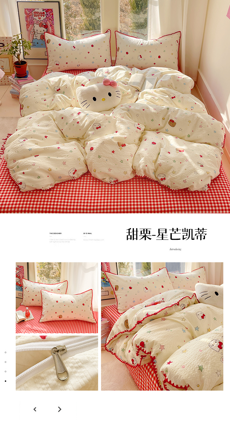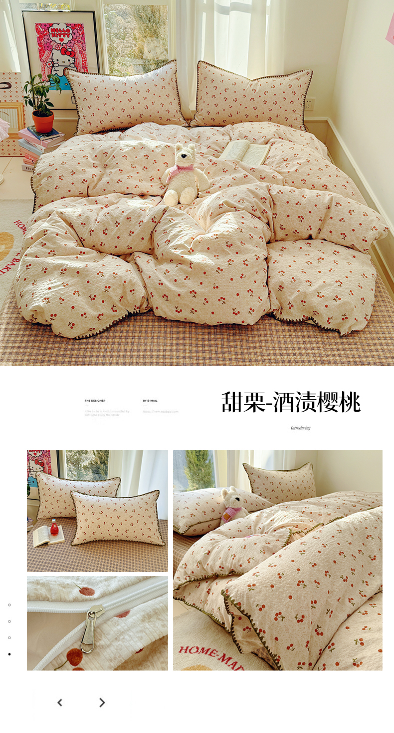 当前位置: 91家纺网 > 商品网购 > 床品套件 > 四件套 > 其它四件套 > 玉海棠家纺 2026新款高品质A类泡芙纱甜栗贝壳边套件系列-小红书推荐(110g) 甜栗-木马小花团