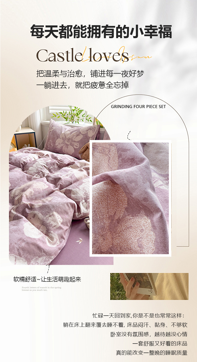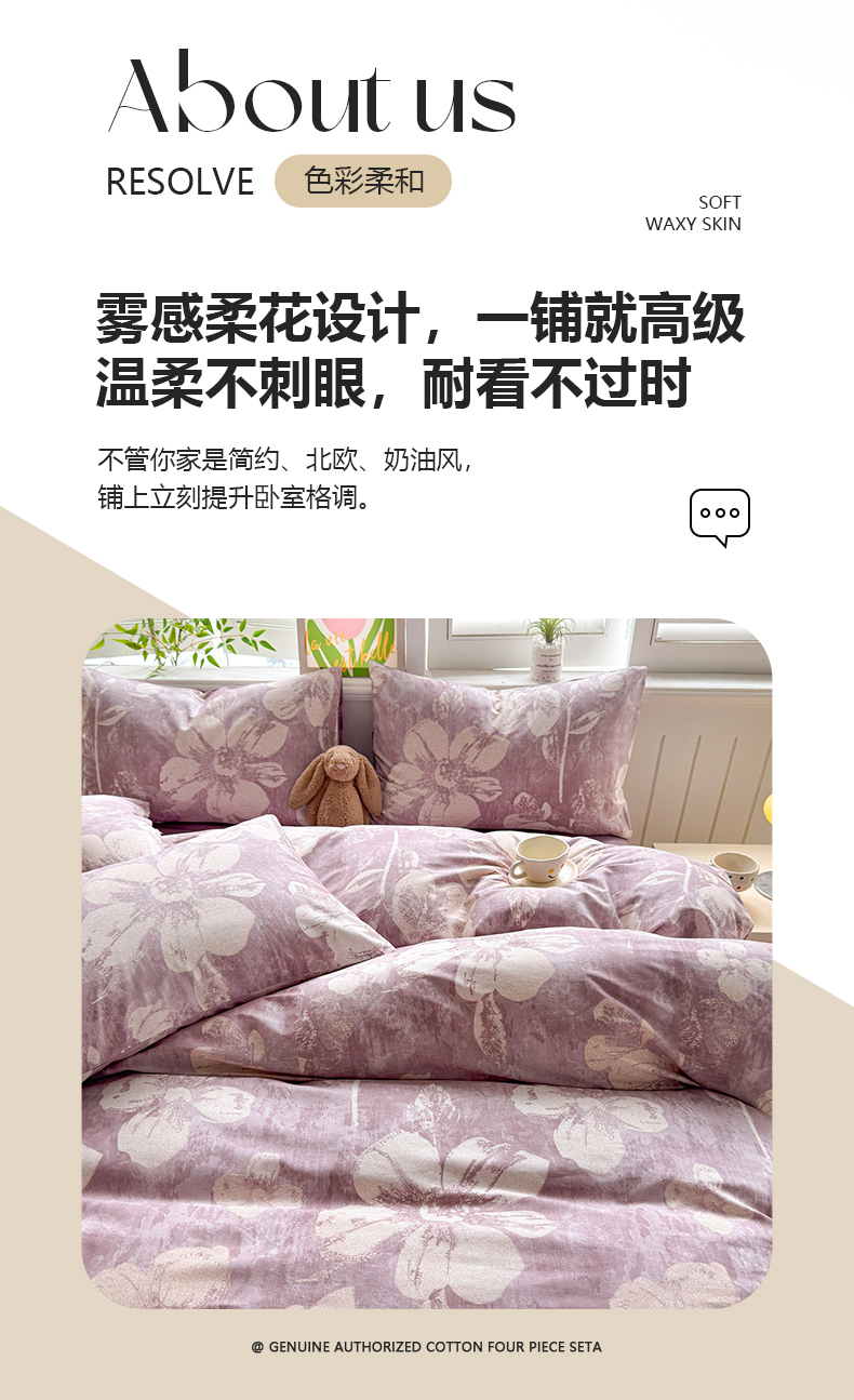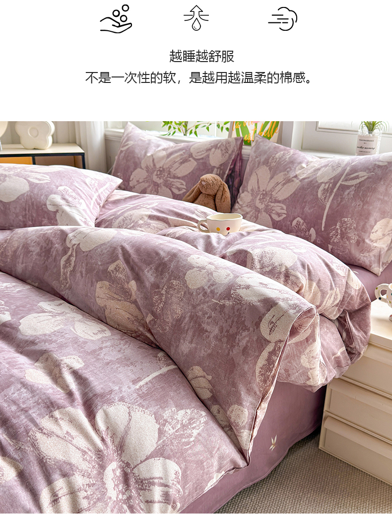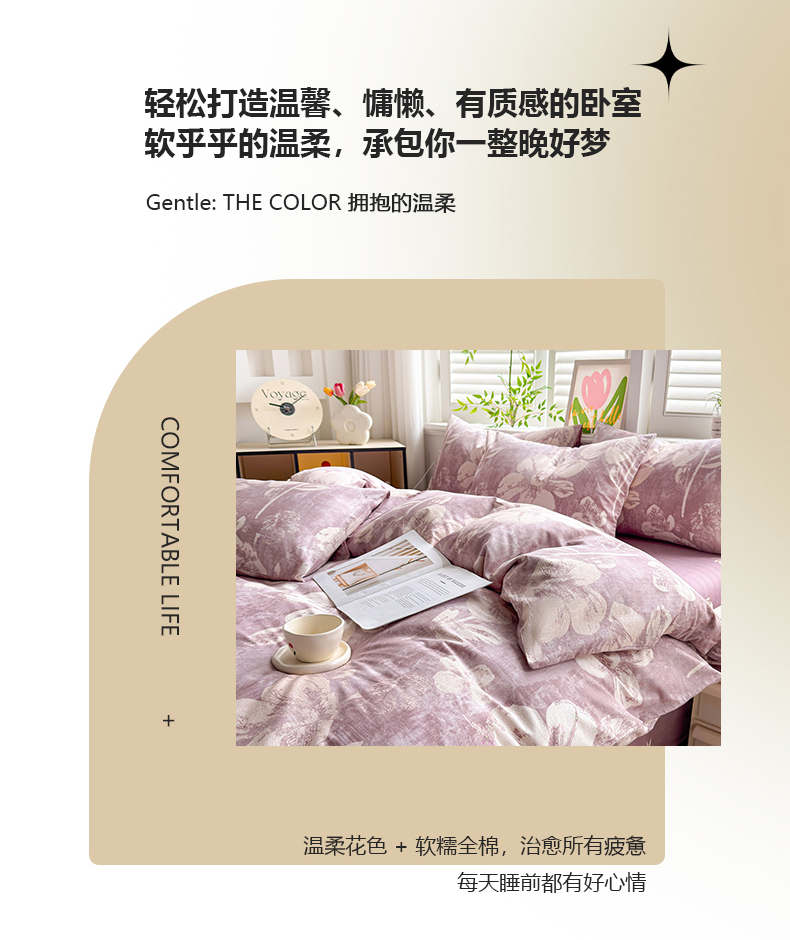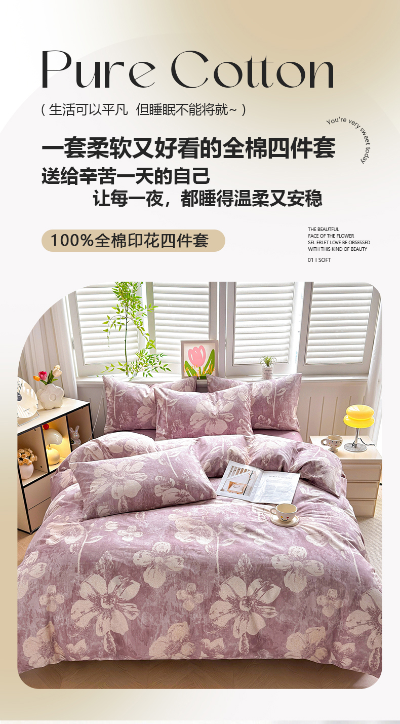 • 91家纺网 家纺一手货源 找家纺 黛妮雅 2026新款AB版全棉印花单被套床单枕套 送买家秀 柔雾花语