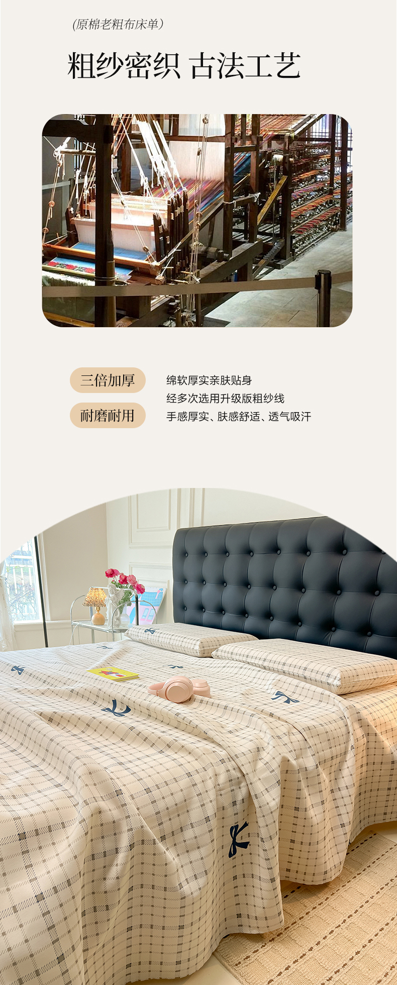 • 91家纺网 家纺一手货源 找家纺 韩巢家纺 2026新款老粗布床单凉席席子床单单件 格韵【老粗布】