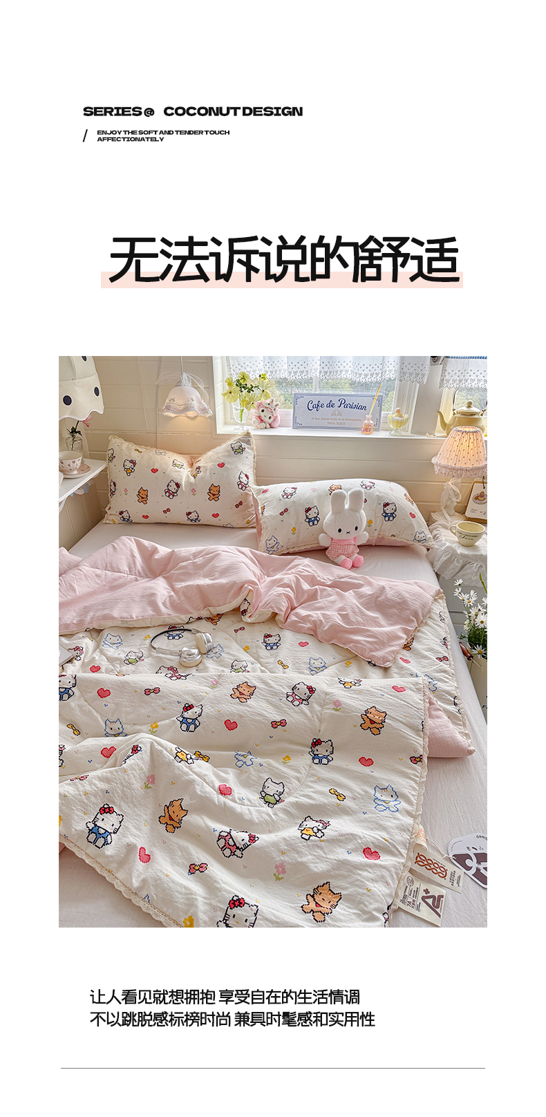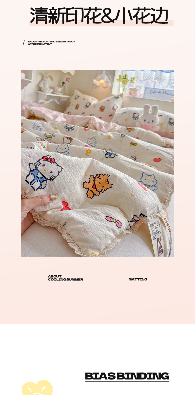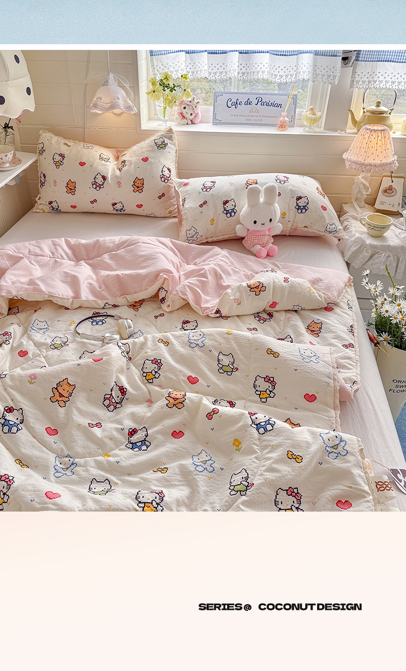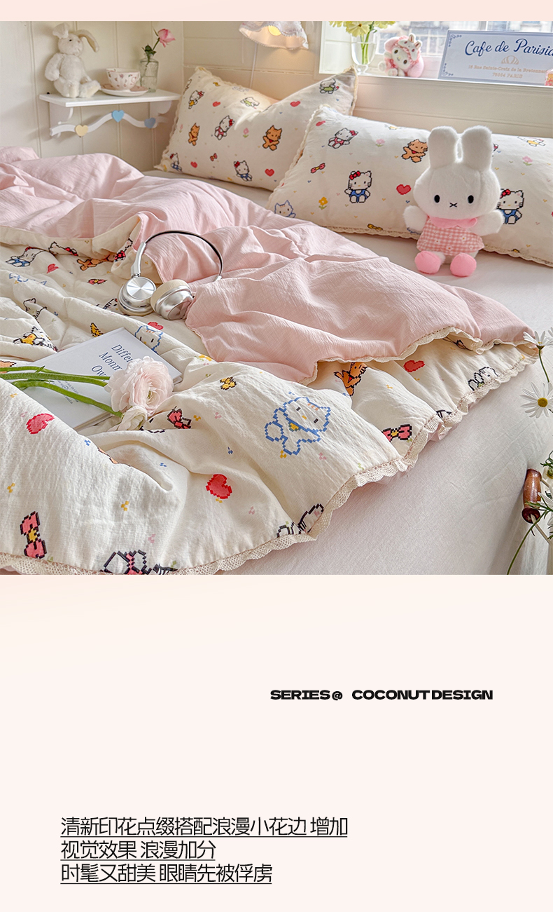 (总)优承佳生活馆 2026年新款卡通小清新风格高克重超柔软糯泡芙双层纱面料三件套四件套单被套系列,hello粉凯蒂,芭比兔,春日木马,花间兔语,咖色凯蒂,满满,萌萌狗,女孩日常,千禧马,浅陌,甜猫派对,甜心,甜心草莓兔,童趣星空,星星kt,紫蔷薇