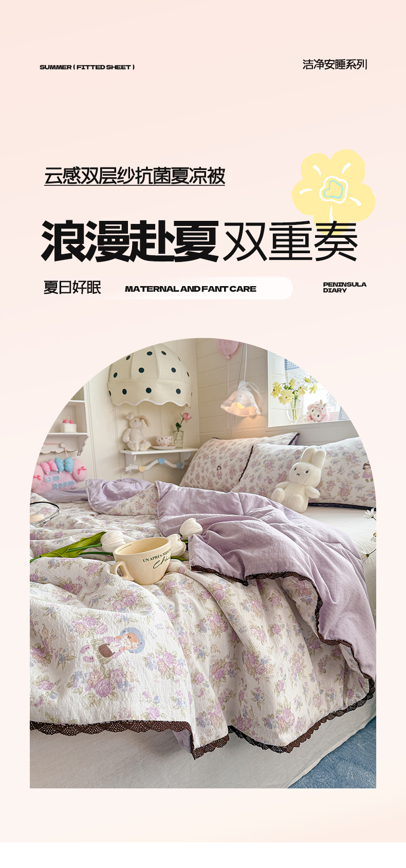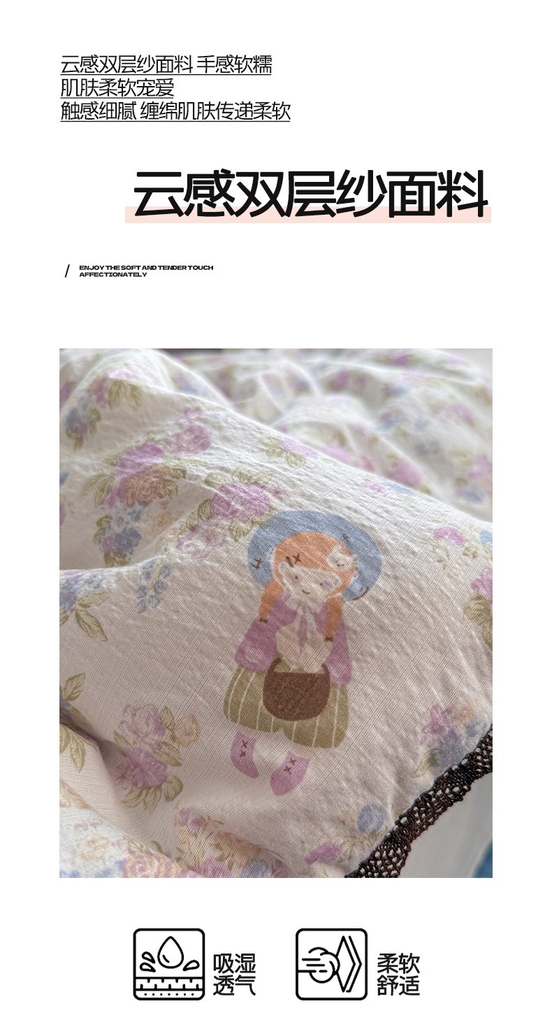 优承佳生活馆 2026新款云感双层纱抗菌夏被夏凉被空调被 甜心宝贝