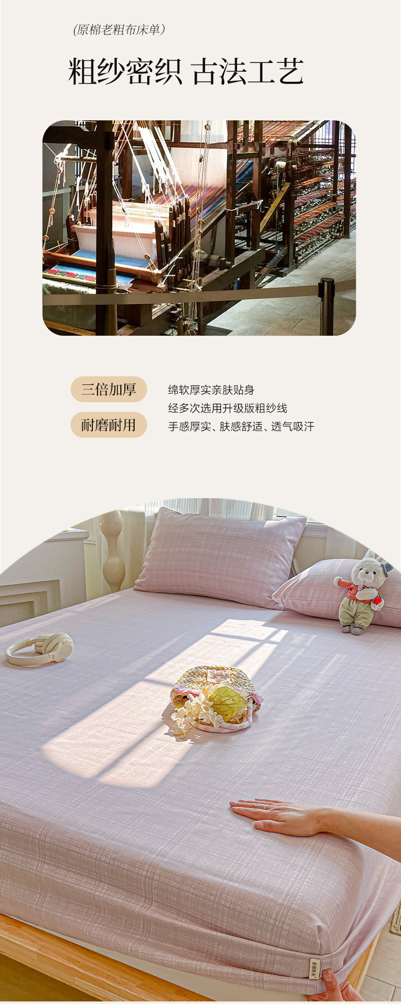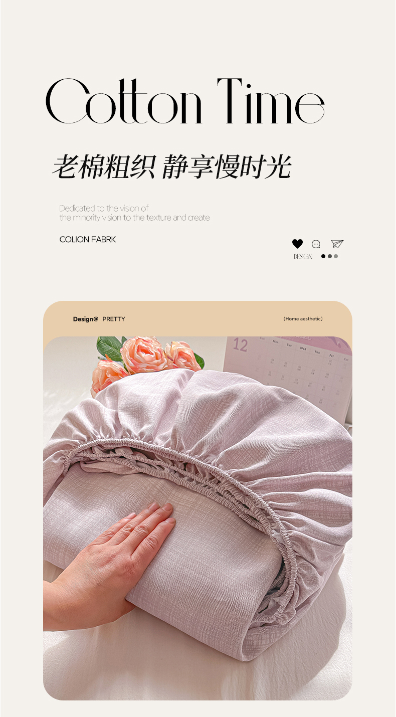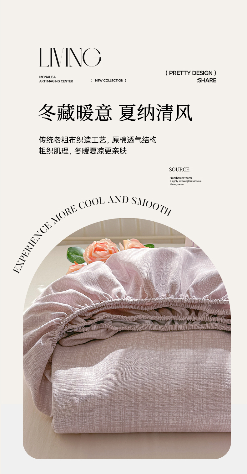 • 91家纺网 家纺一手货源 找家纺 韩巢家纺 2026新款老粗布床笠春夏季凉席席子热销款防滑床笠单件 静谧【老粗布】