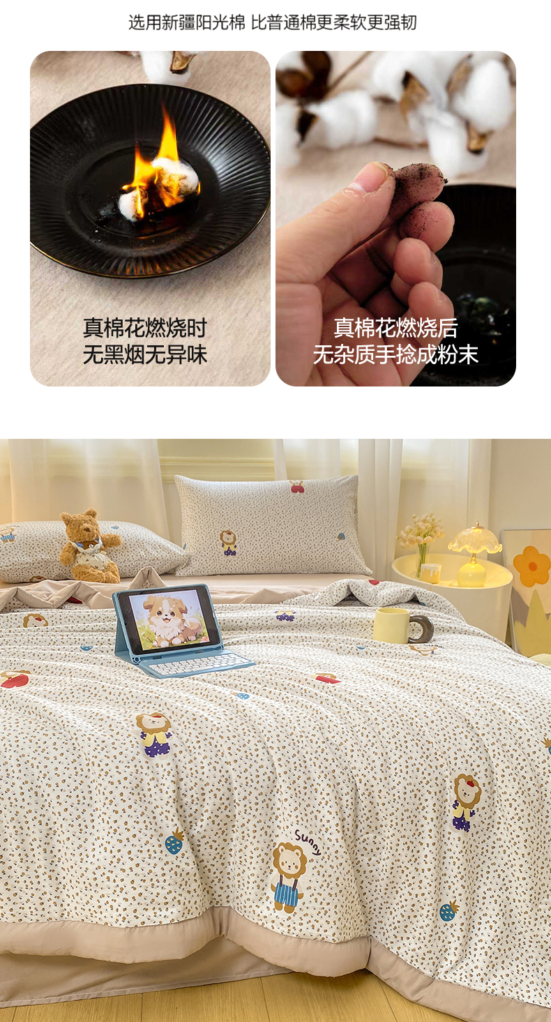 商品名称:憨豆家纺 2026新款云朵棉被水洗棉印花新疆棉花夏被夏凉被空调被子直播被芯(常年有货) 小狮子