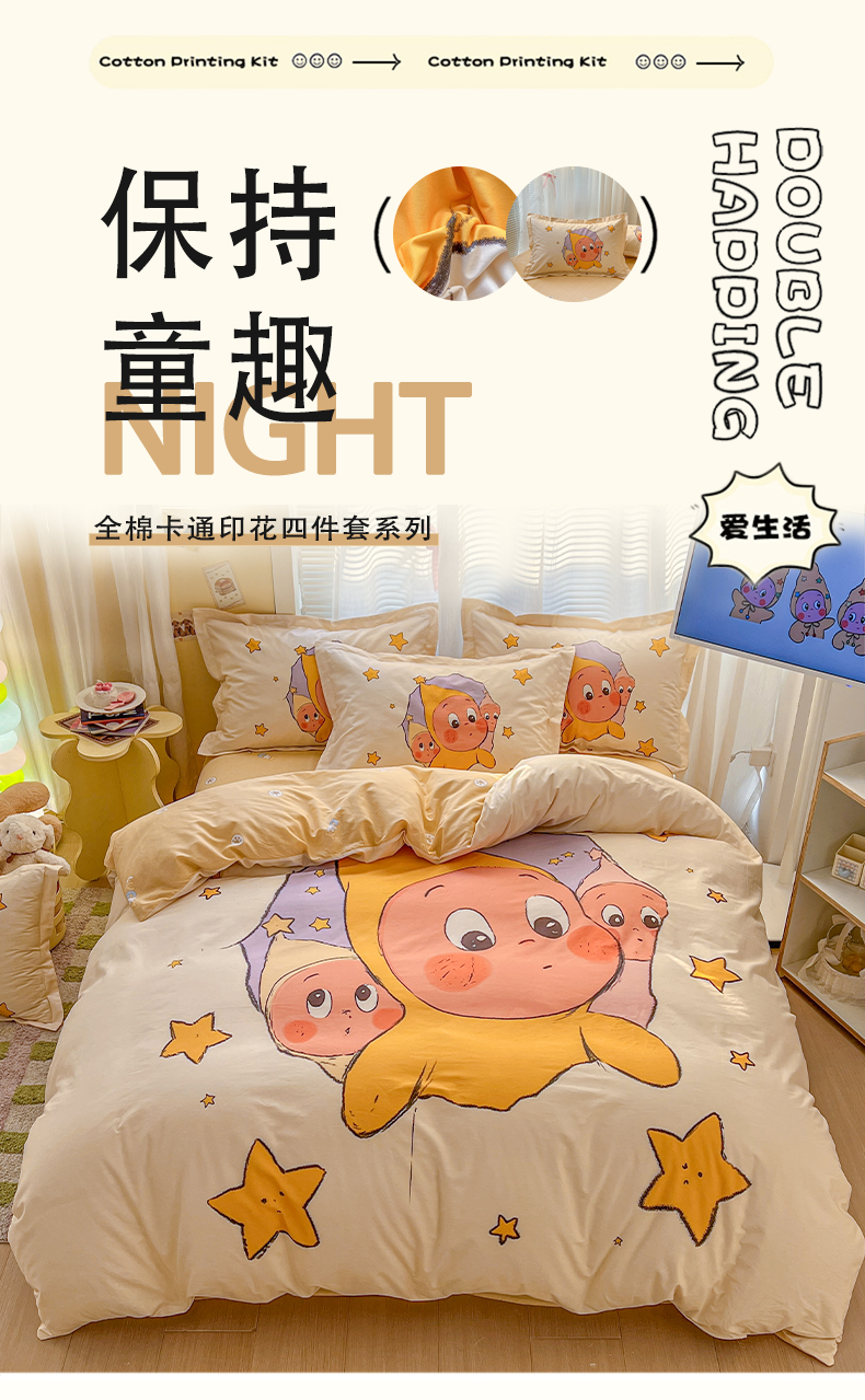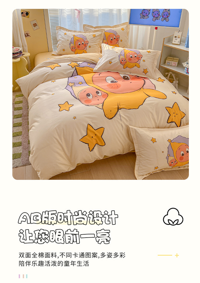 当前位置: 91家纺网 > 商品网购 > 床品套件 > 四件套 > 全棉普通四件套 > 浩诚 2026新款星星人全棉纯棉卡通四件套(汇总) 星光灿烂