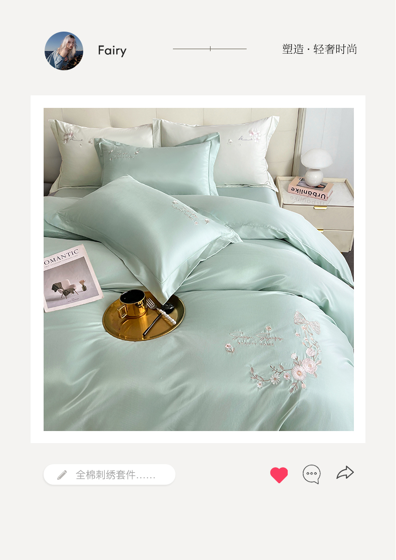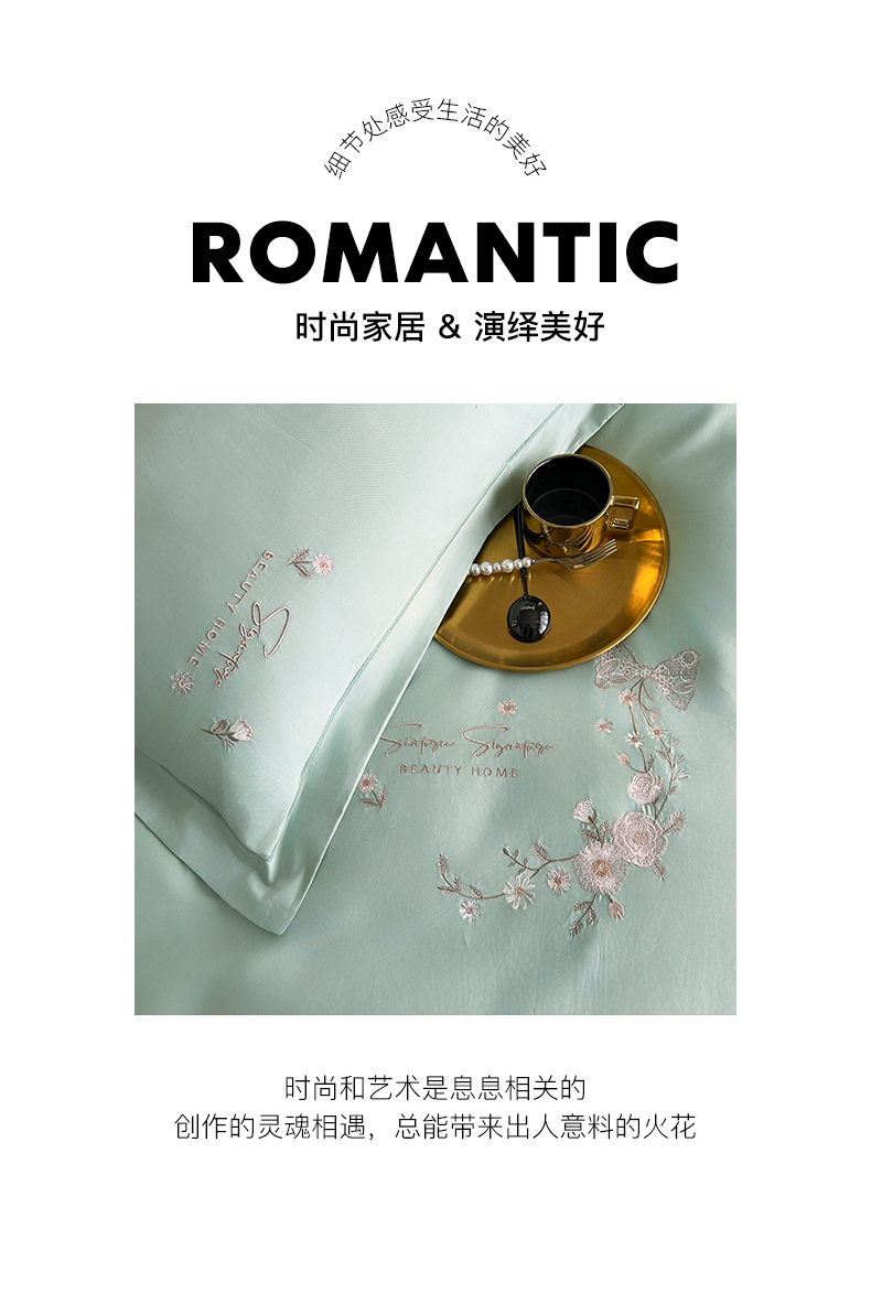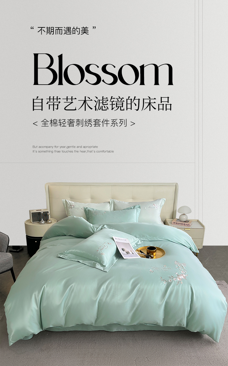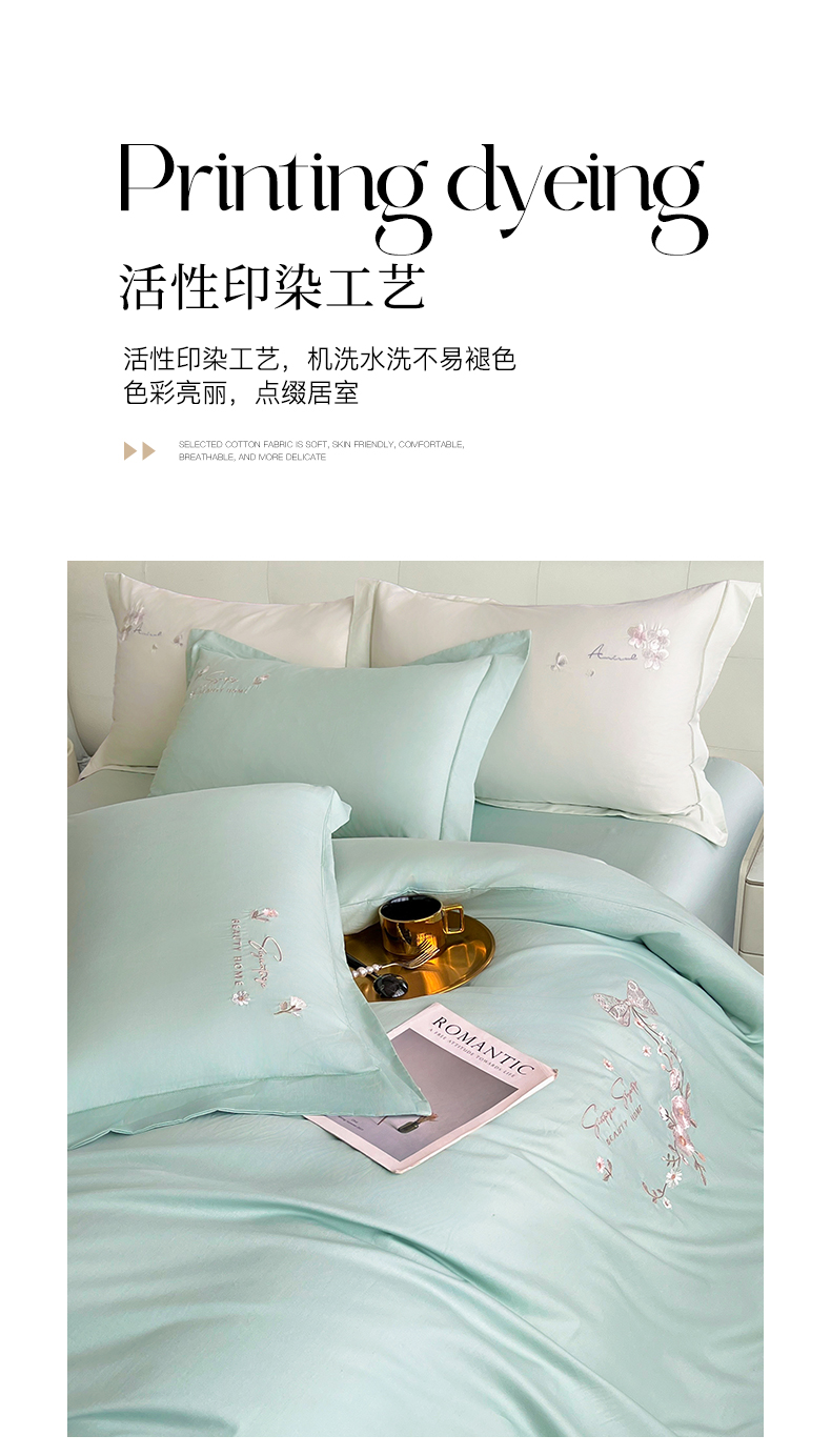 帛美家纺 2026新款全棉纯棉轻奢绣花四件套 莱雅-浅石兰