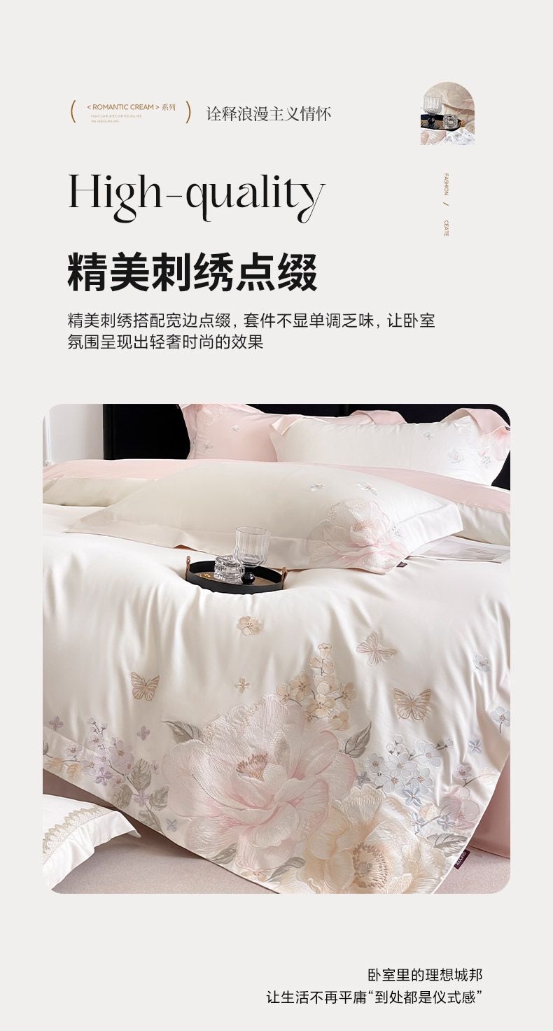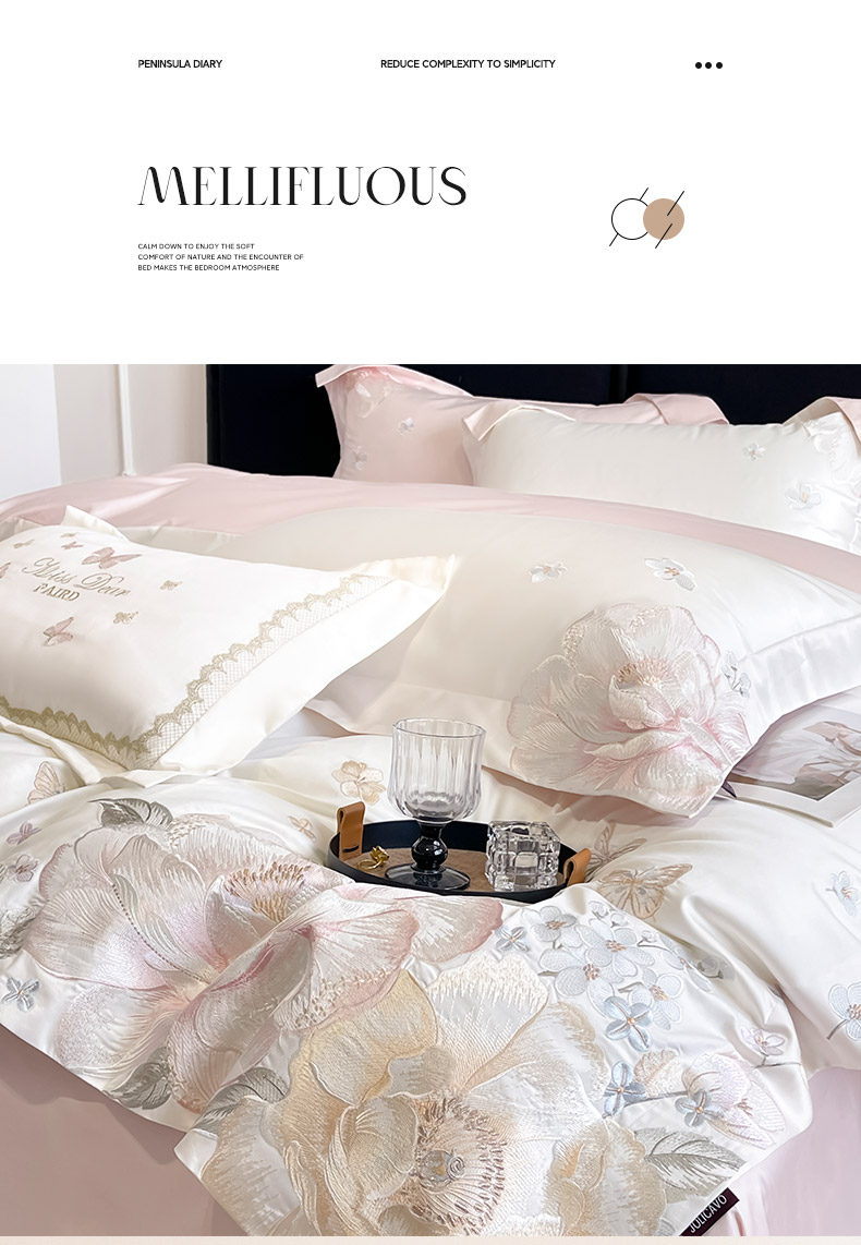 当前位置: 91家纺网 > 商品网购 > 床品套件 > 四件套 > 长绒棉四件套 > (总)2026新品A类100支贡缎长绒棉纯棉四件套全棉重工刺绣全工艺被套床单床笠高端轻奢风床上用品-朵卿