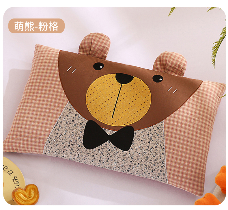 (总)蔻眠 萌熊-全棉刺绣卡通荞麦护颈枕头儿童学生荞麦枕芯,主图,萌熊-红格,萌熊-驼格,萌熊-粉格,萌熊-咖格