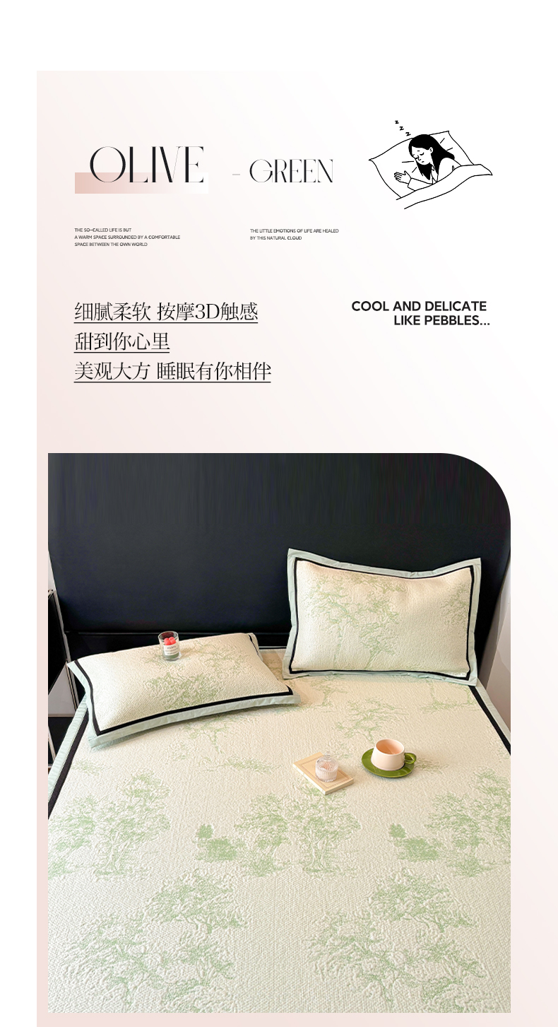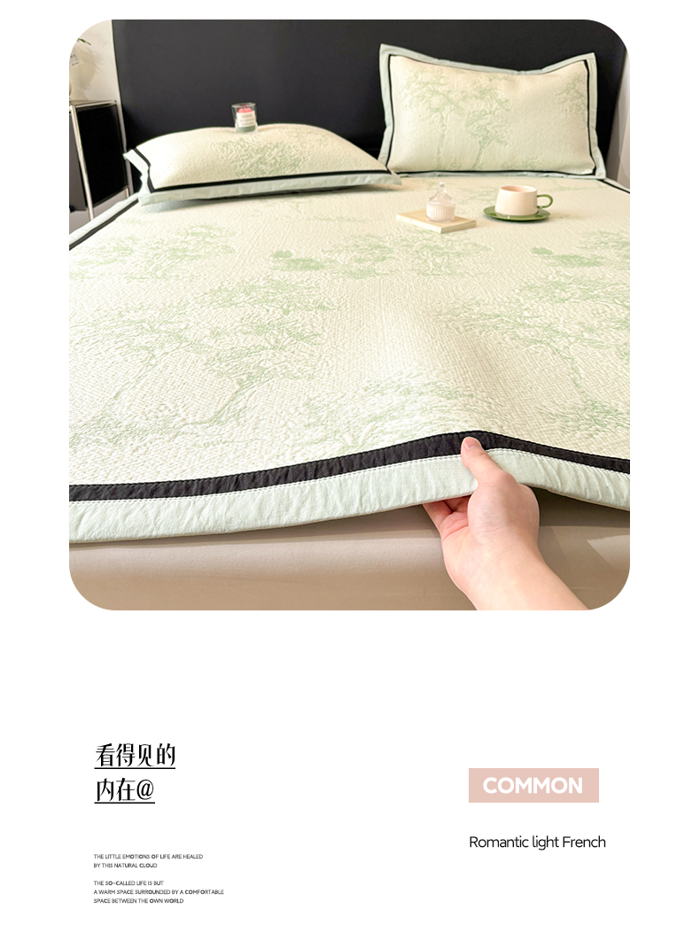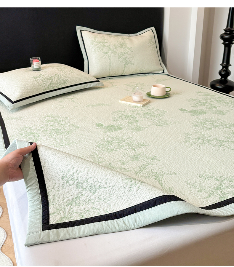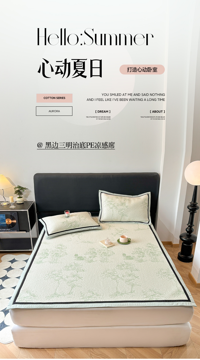 商品名称:雅居纺家纺 2026新款A类加厚三明治底黑边PE凉感席 梦影-绿