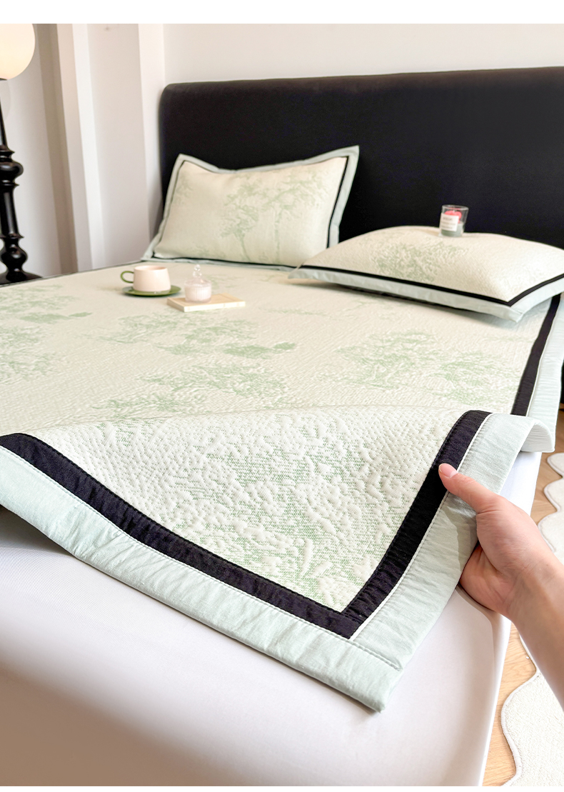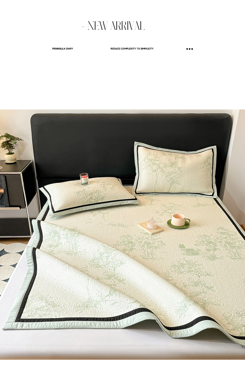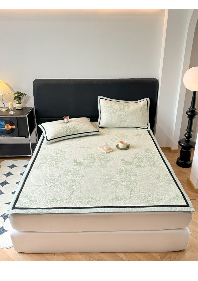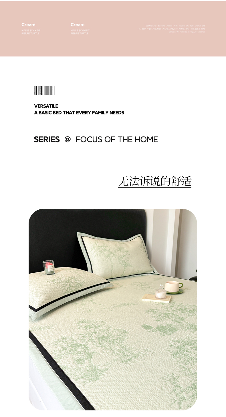 商品名称:雅居纺家纺 2026新款A类加厚三明治底黑边PE凉感席 梦影-绿