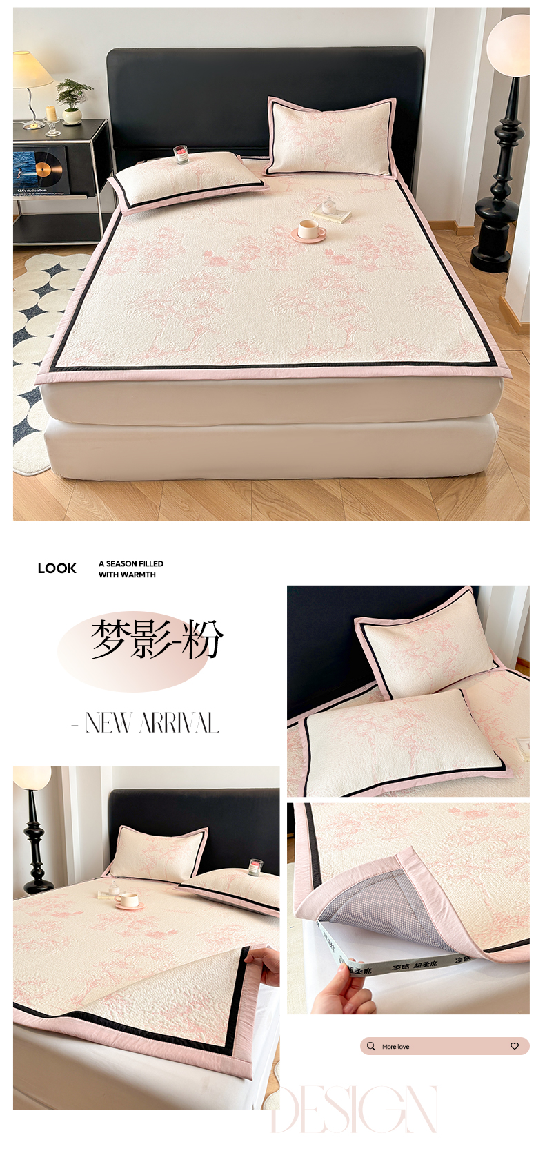 (总)雅居纺家纺 2026新款夏日花语系列凉感床裙凉席,夏日花语-粉,夏日花语-灰,夏日花语-蓝