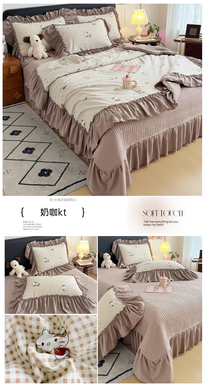 商品名称:铠畅 2026新款法式宽边水洗棉泡芙纱床盖款夏被四件套 奶咖kt