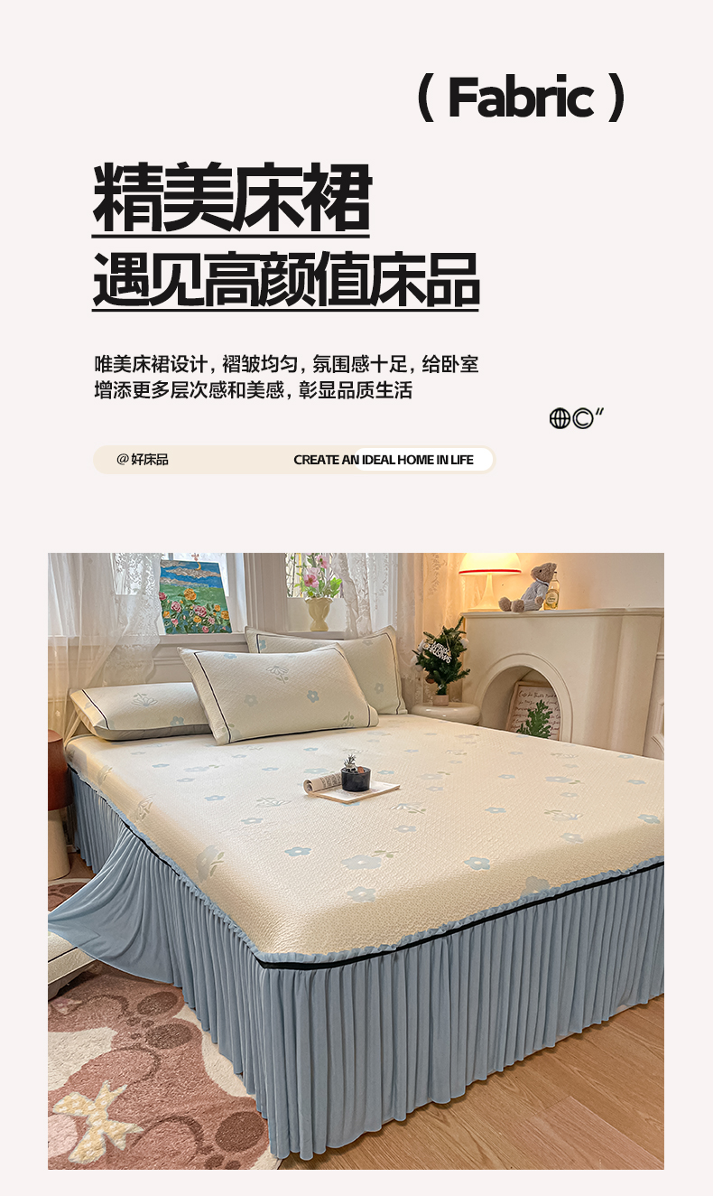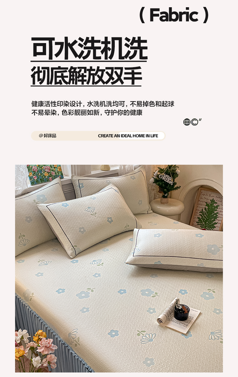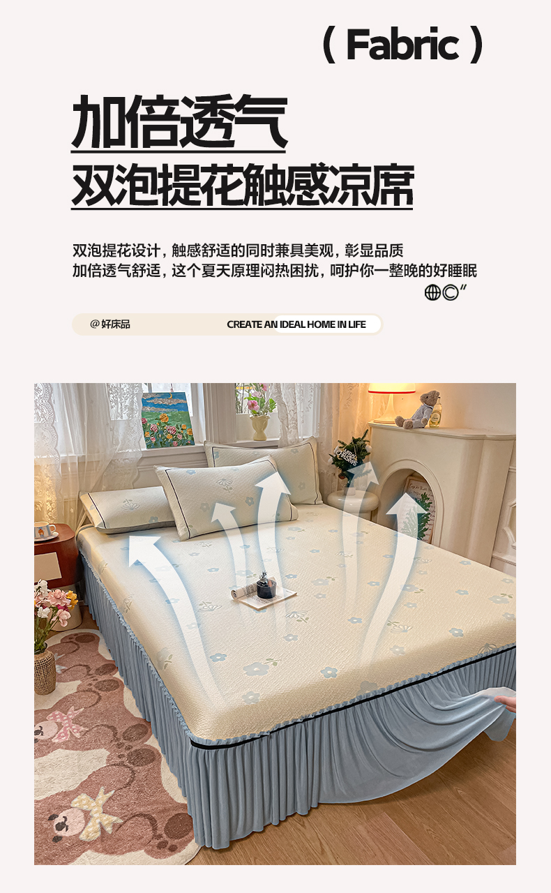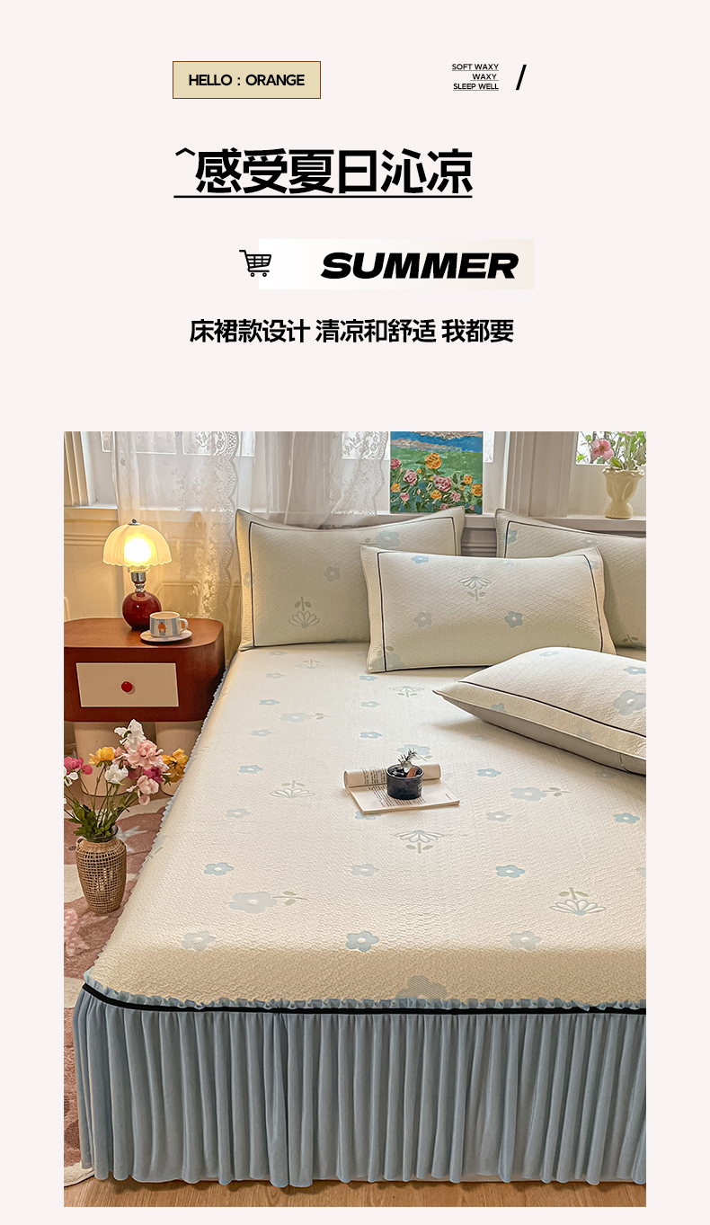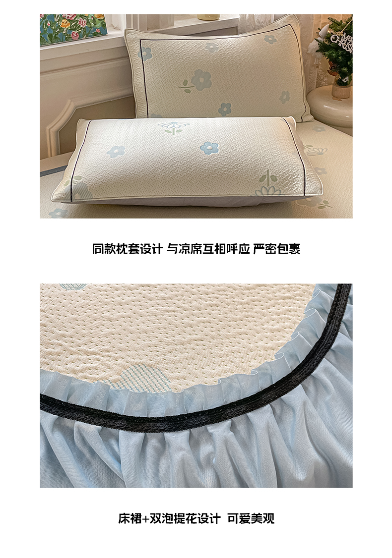 (总)雅居纺家纺 2026新款夏日花语系列凉感床裙凉席,夏日花语-粉,夏日花语-灰,夏日花语-蓝