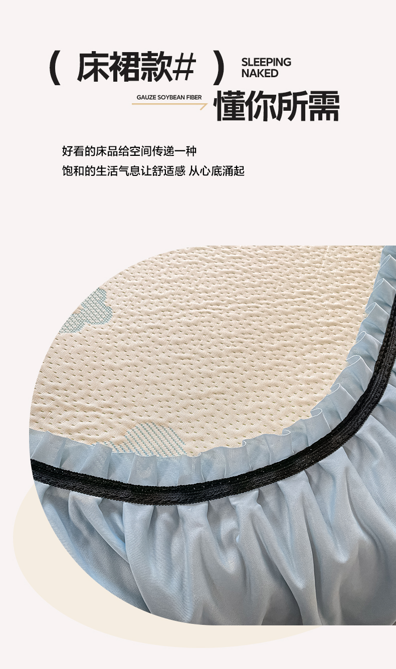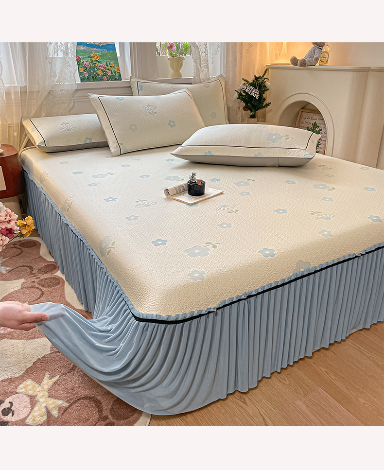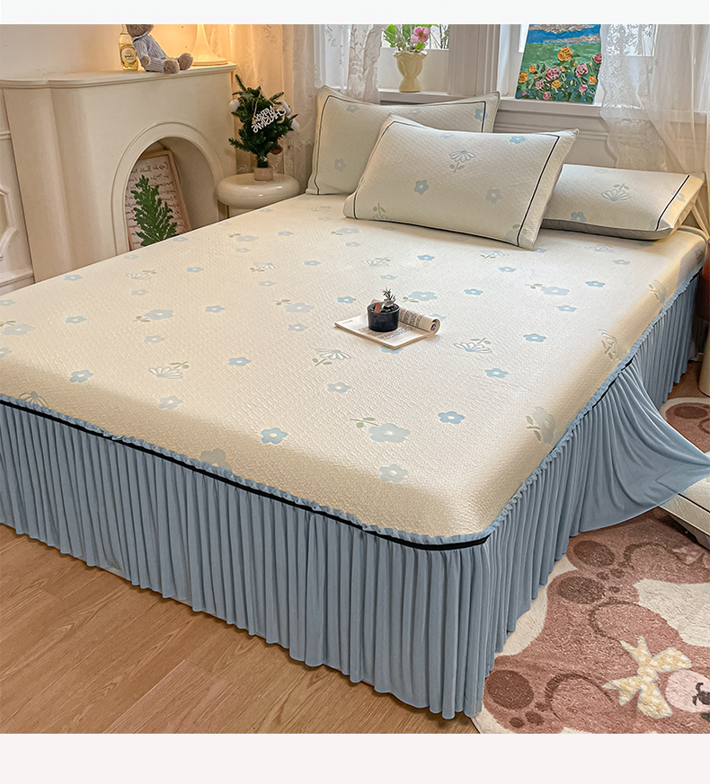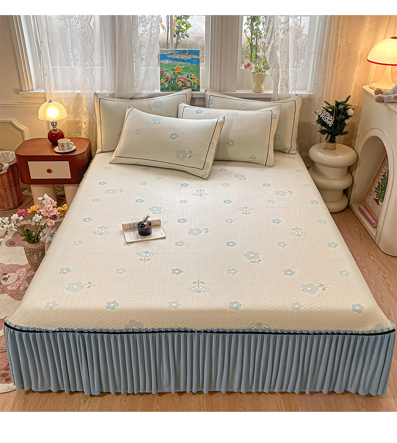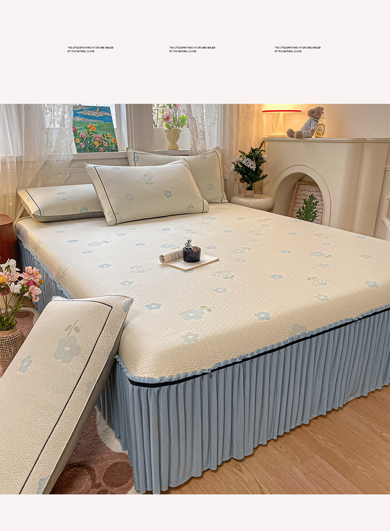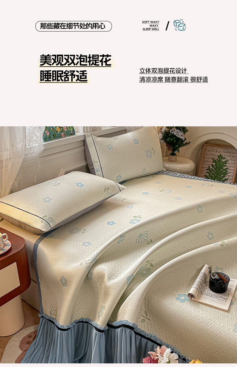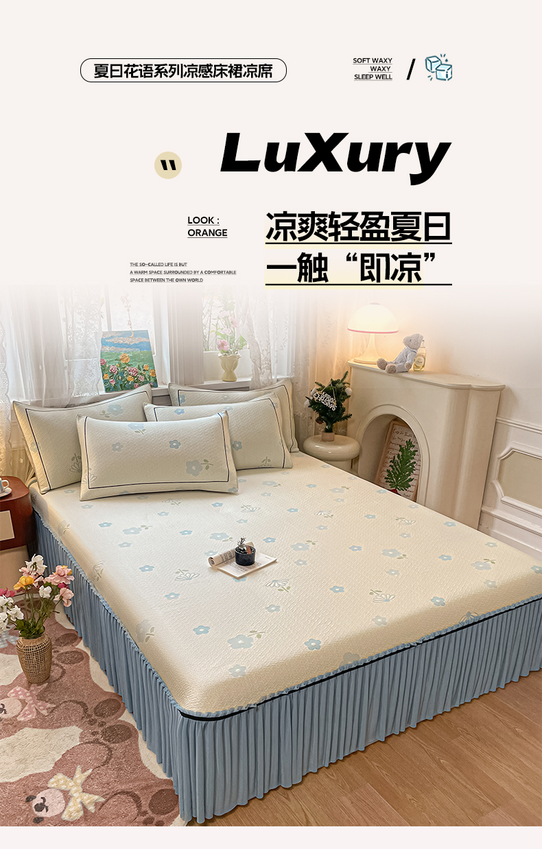 雅居纺家纺 2026新款夏日花语系列凉感床裙凉席 夏日花语-蓝