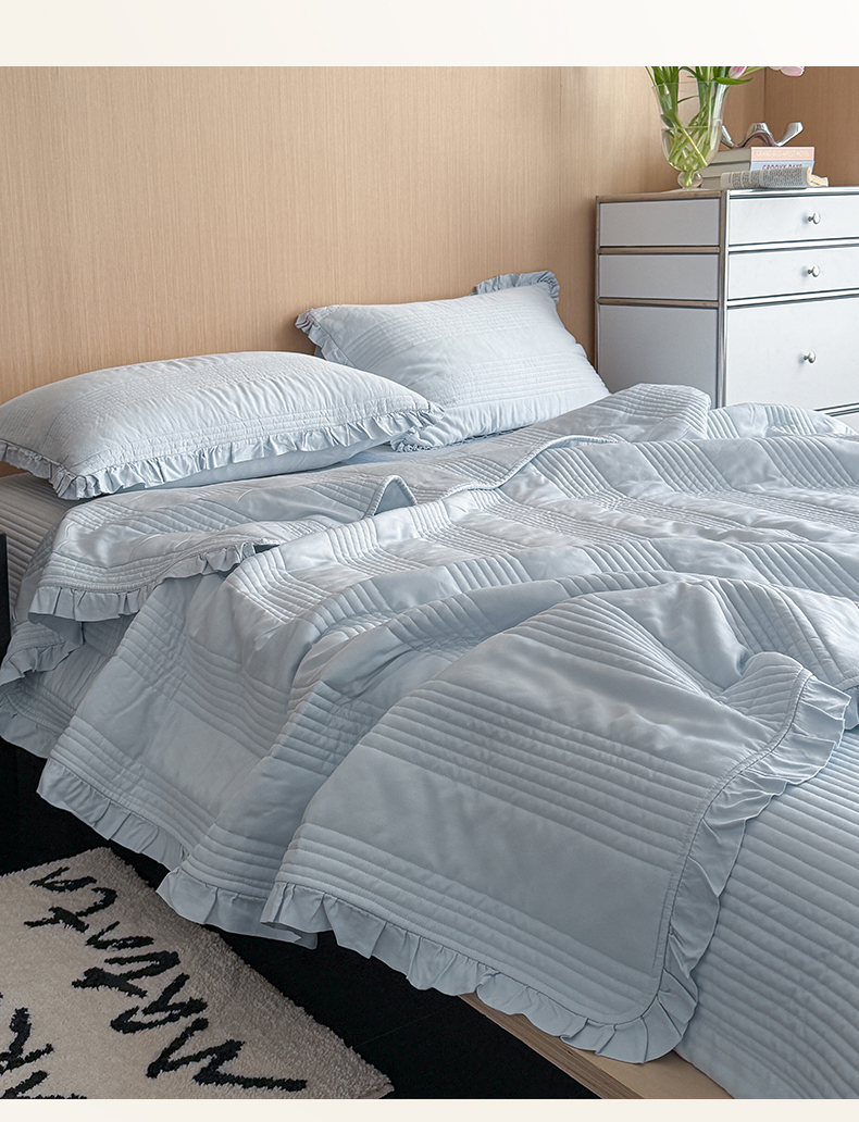 漫调家纺 2026新款韩国莫代尔夏被床盖系列-花边款 海盐蓝